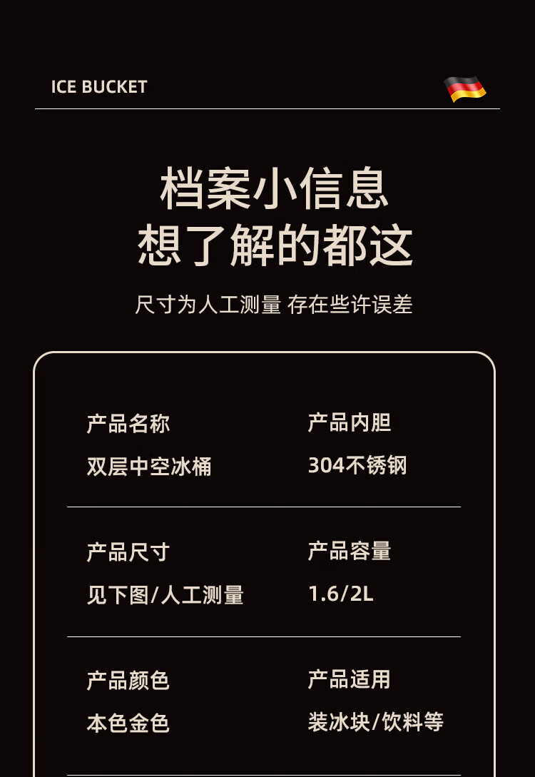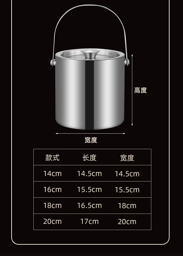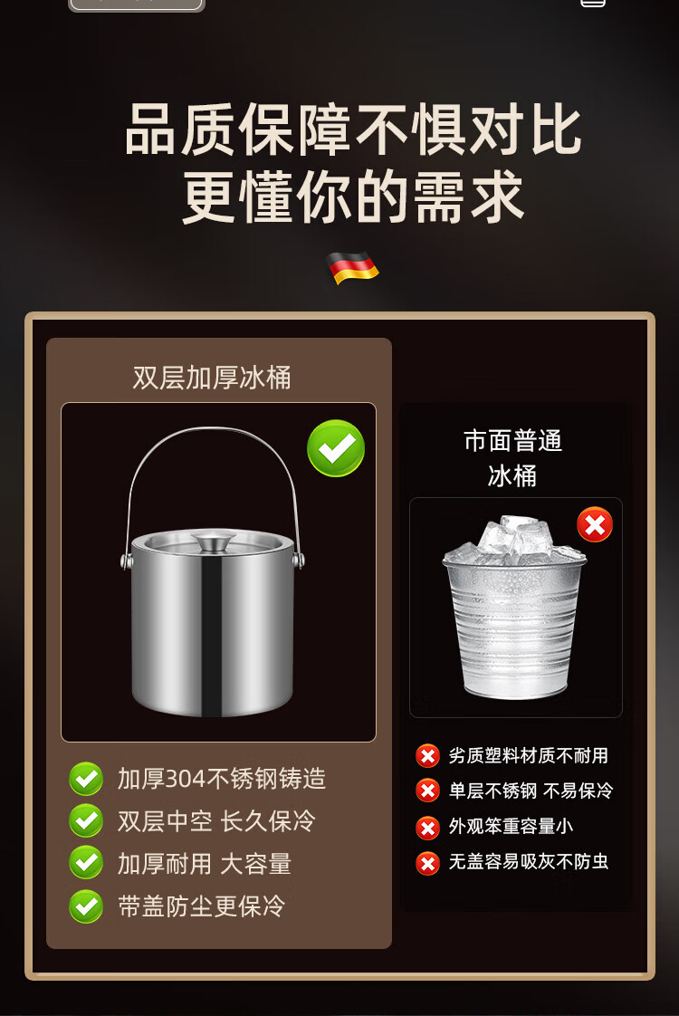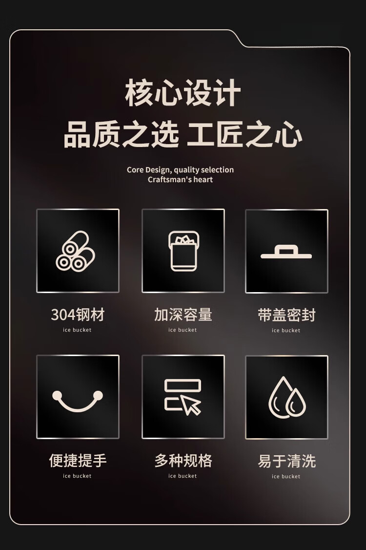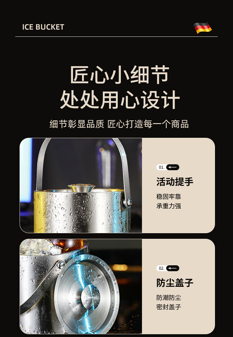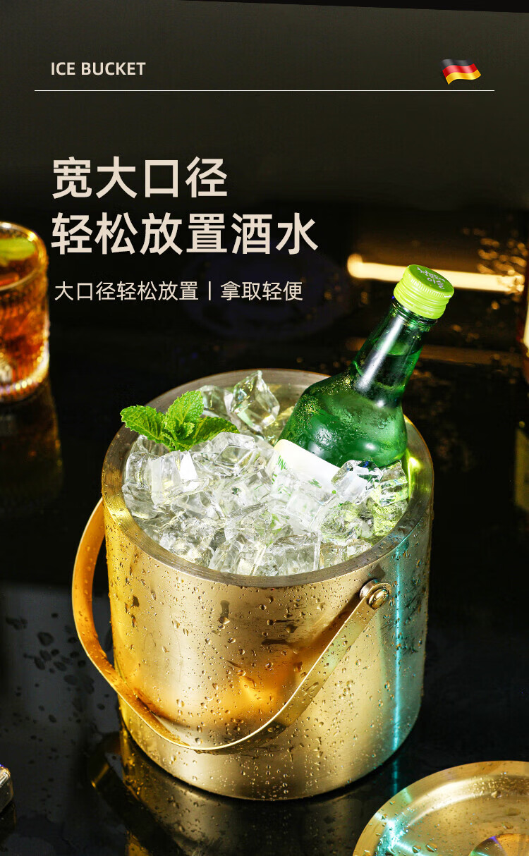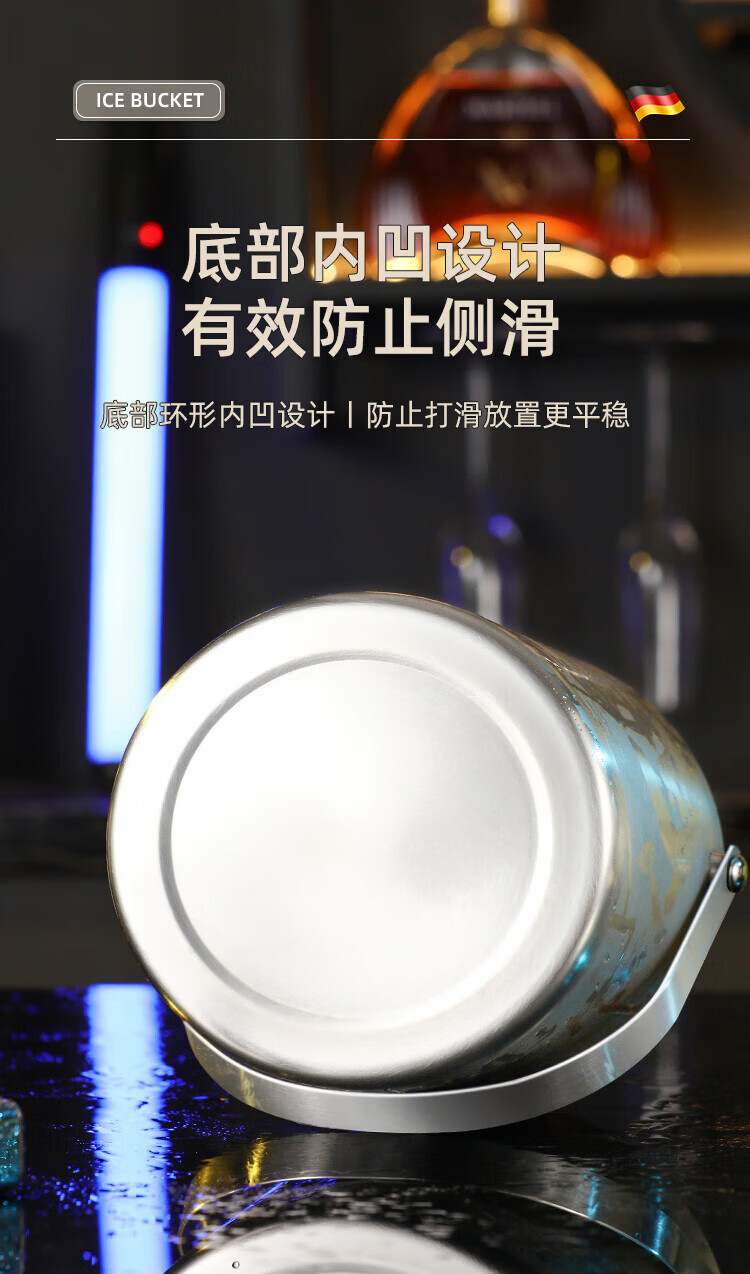 Shi Jin German quality ice bucket ice bar KTV304 stainless steel double layer with lid insulated ice bucket champagne ice cube Tuhao Gold 304 stainless steel double layer 1.6L