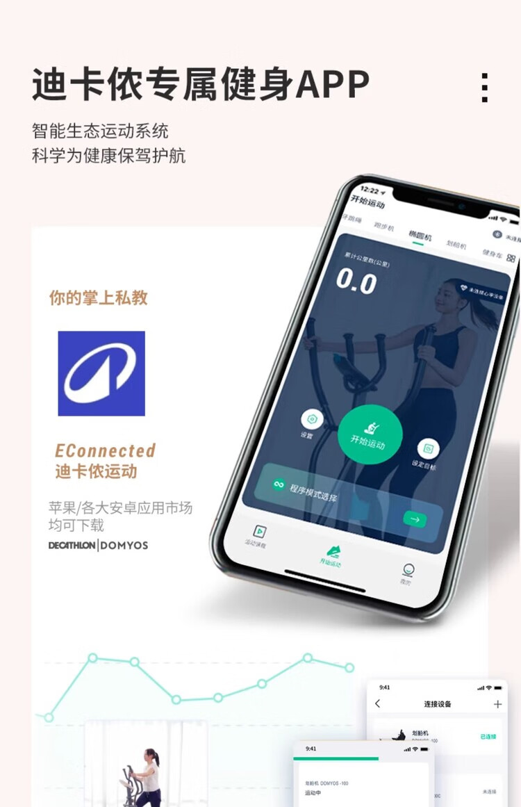 Decathlon (DECATHLON) exercise bike home smart ultra-quiet indoor bicycle fitness cycling sports weight loss equipment ENS3 initial smart fitness bike