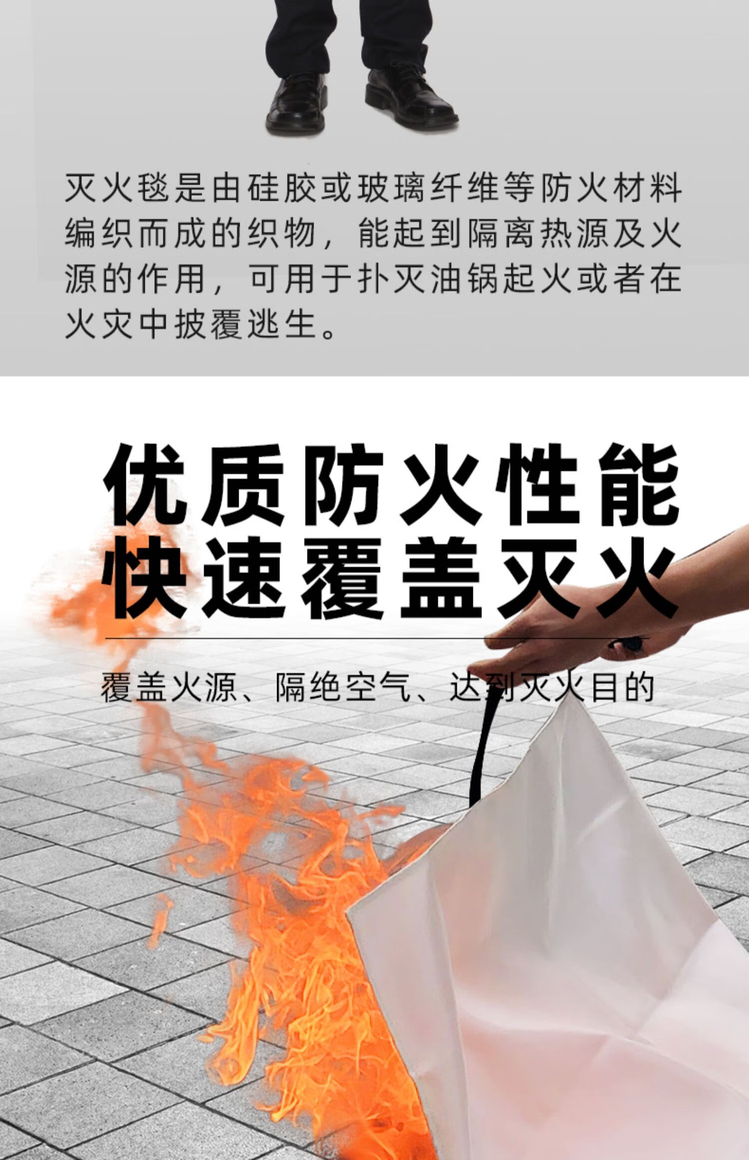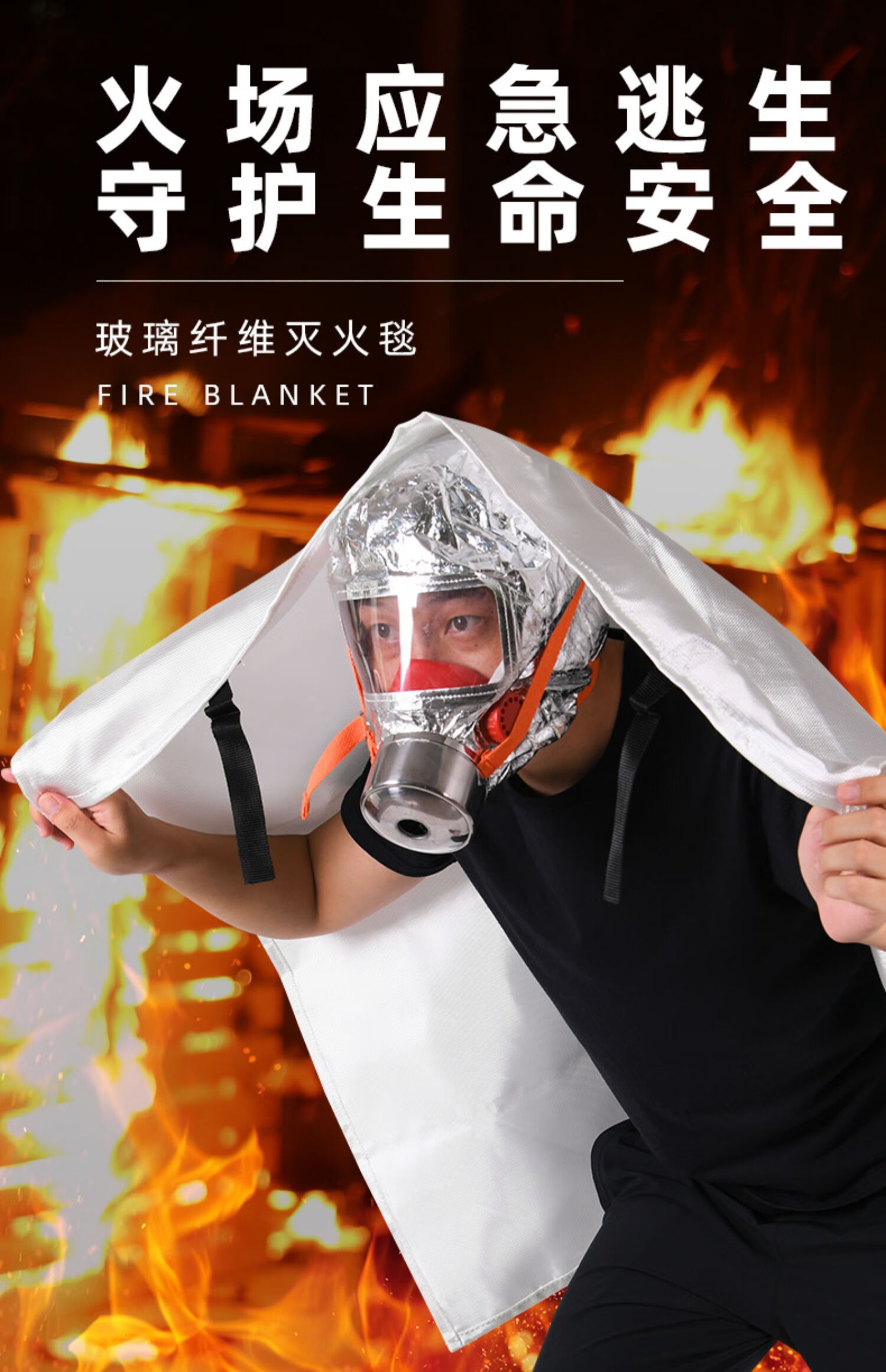 Special fire extinguishing blanket for hotel fire protection, home commercial kitchen fiberglass fire blanket, national standard fire protection equipment set, fiberglass fire blanket 1 meter * 1 meter, free gloves and hooks