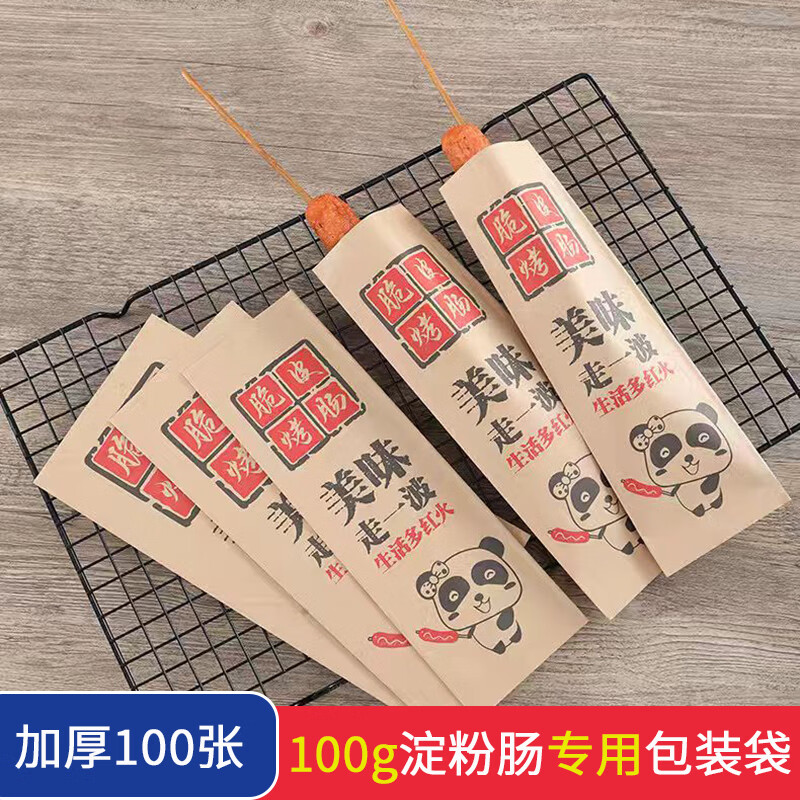 Kunsui Golden Crispy Grilled Sausage Paper Bag Fried Starch Sausage Disposable Bag Oil-proof Kraft Paper Packing Bag Laigen Grilled Sausage 8*25 (Cowhide) 100 pieces