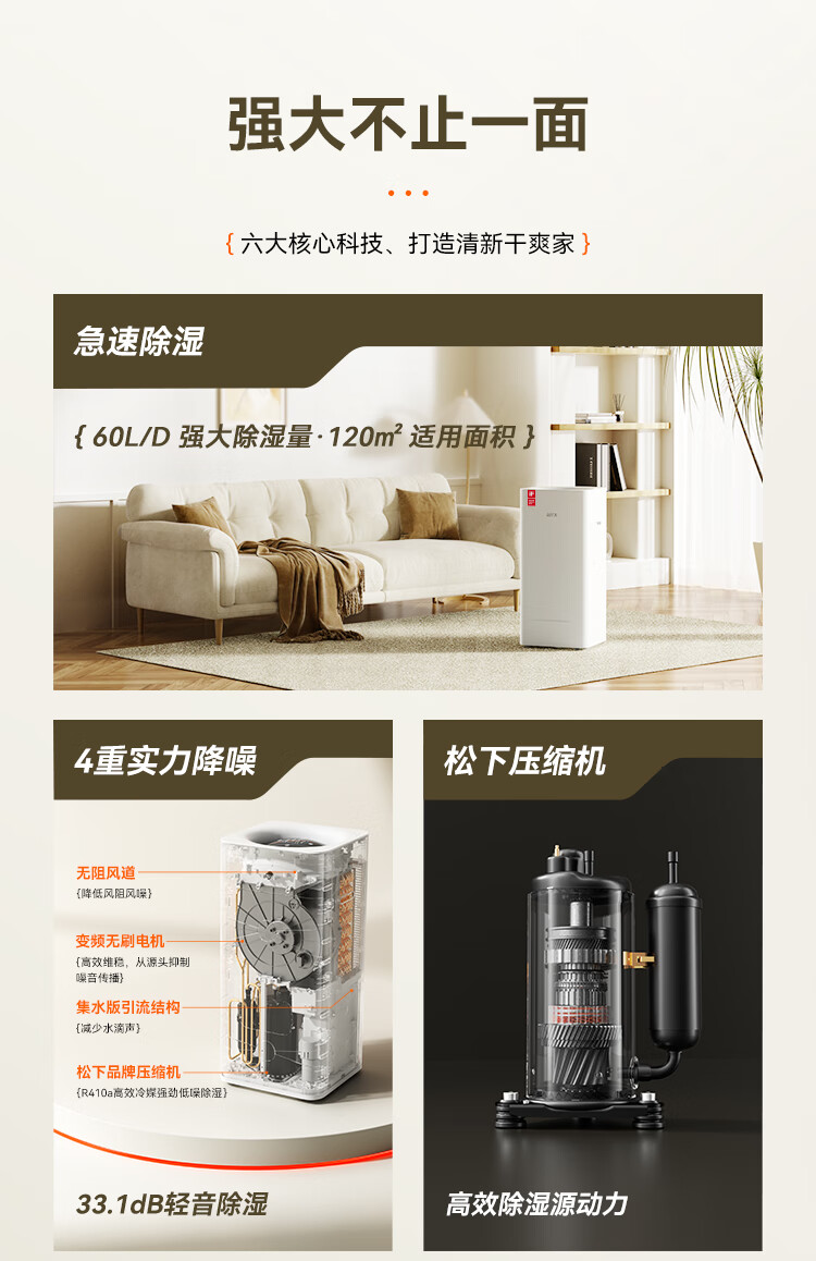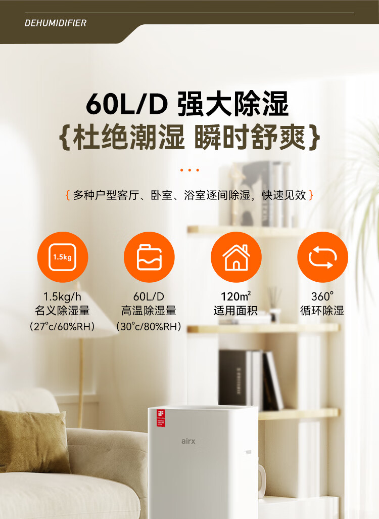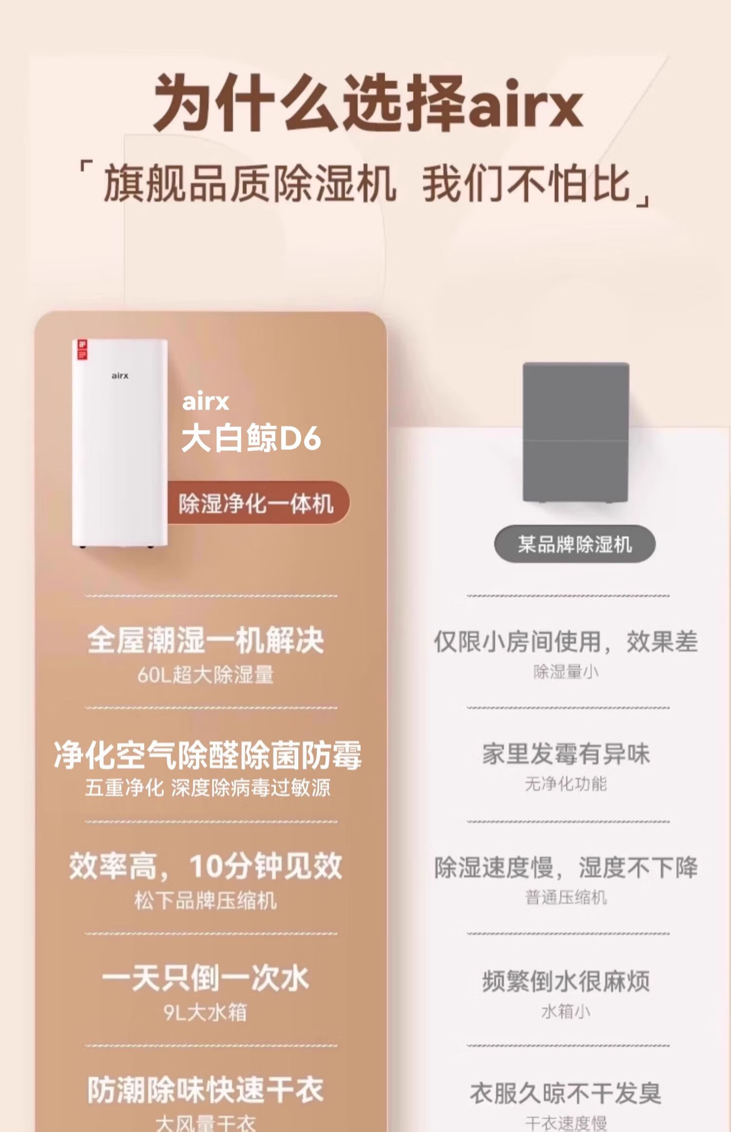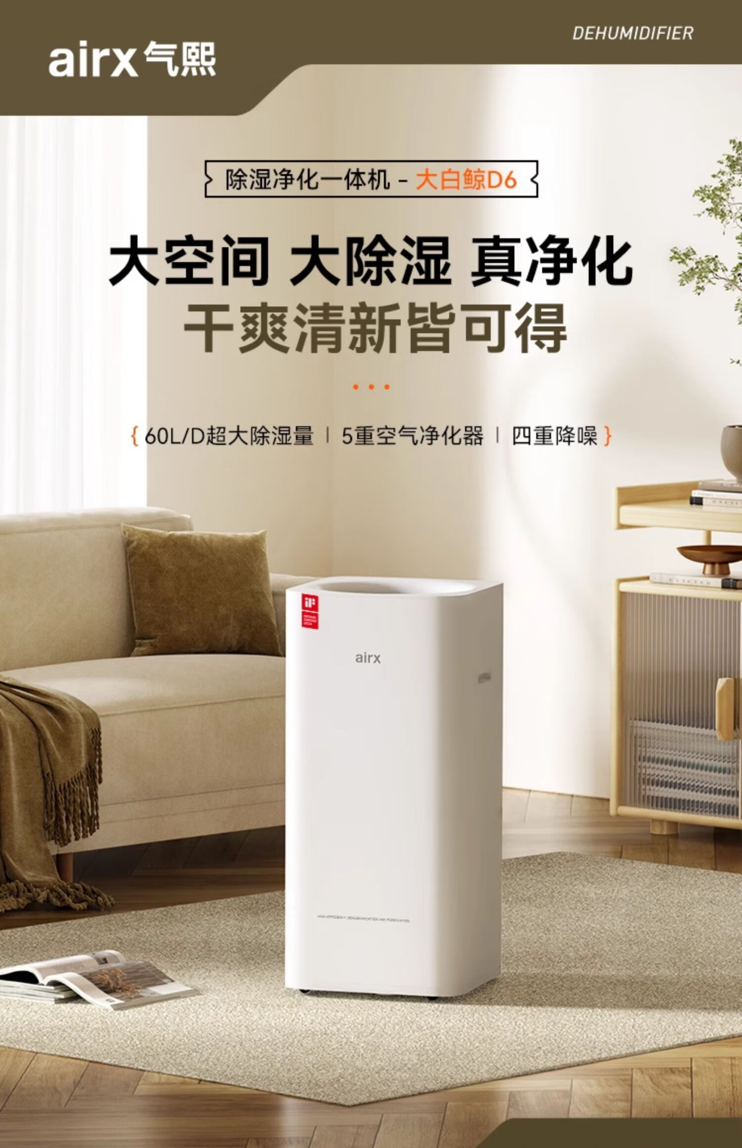 Qixi airx dehumidifier home light sound bedroom 60L dehumidifier villa basement dryer moisture absorber D6 50L/day White Whale D5-maternal and infant grade dehumidification and purification machine