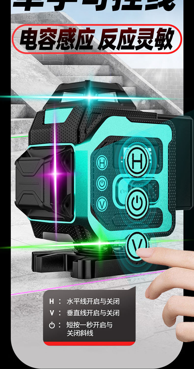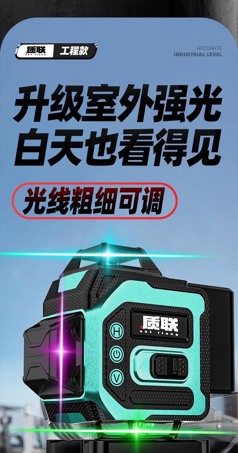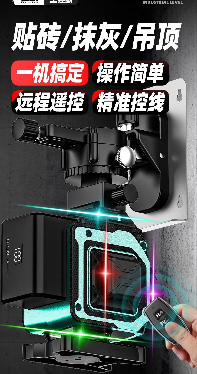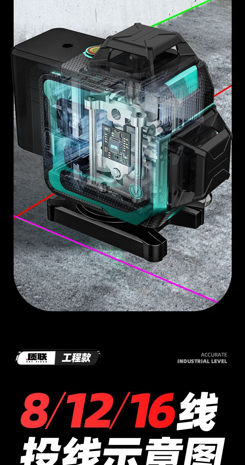 Infrared level meter high-precision strong light outdoor special automatic leveling laser level outdoor wall and ground integrated four-color machine 16 lines red, green, blue and purple top version