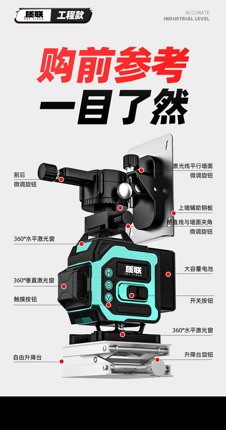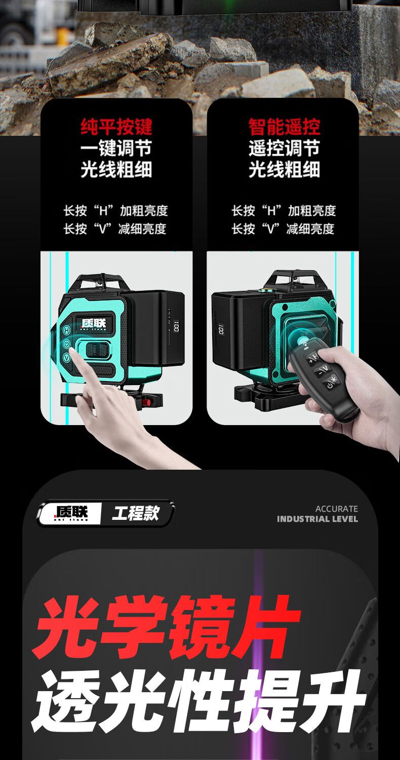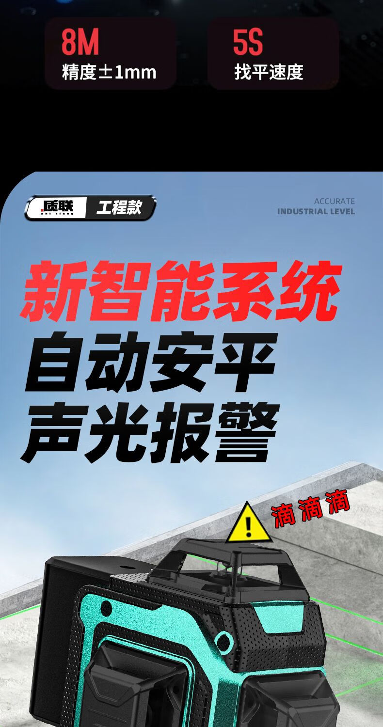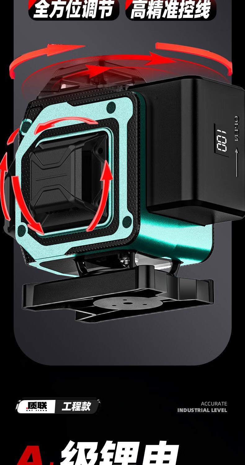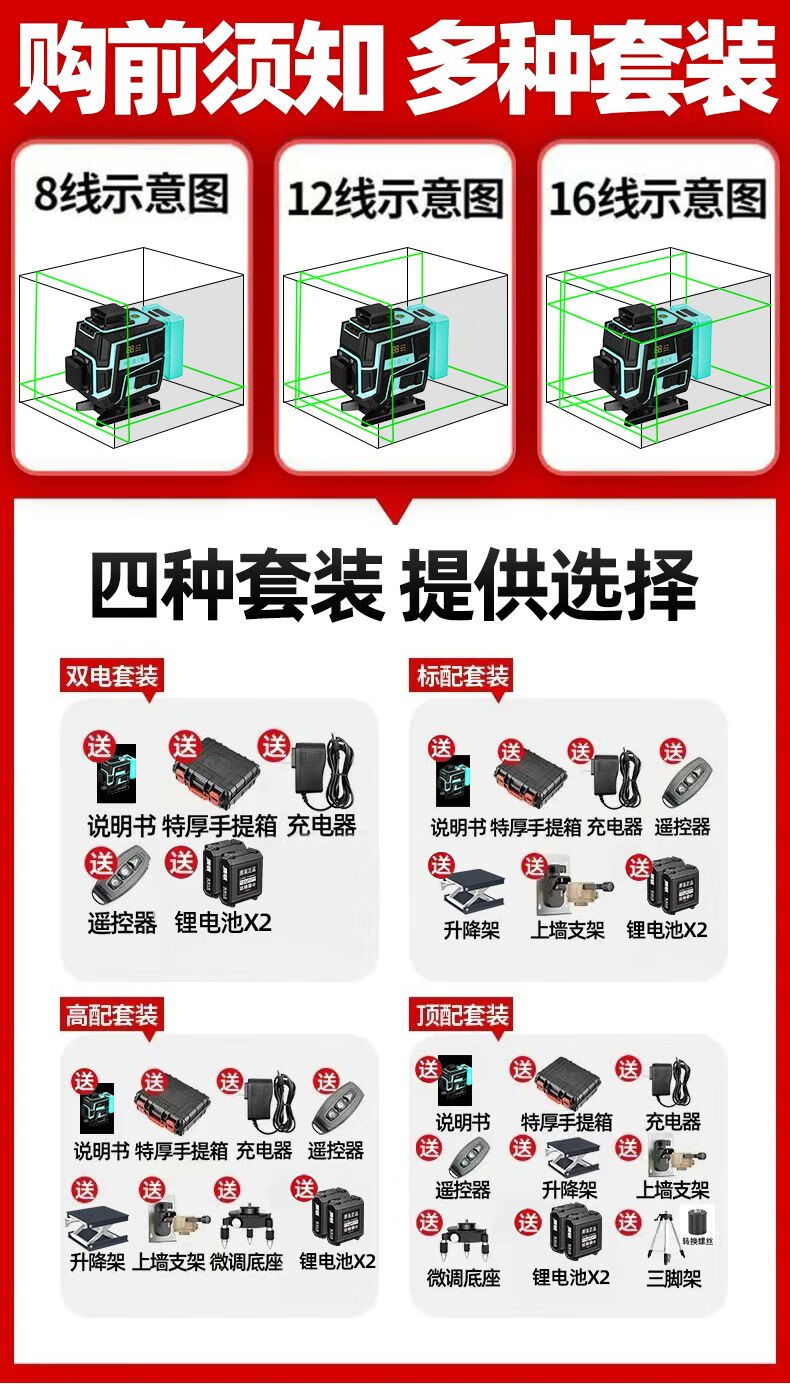 Infrared level meter high-precision strong light outdoor special automatic leveling laser level outdoor wall and ground integrated four-color machine 16 lines red, green, blue and purple top version