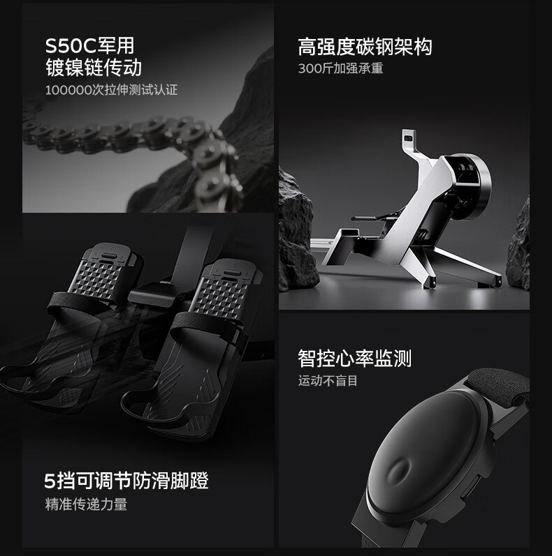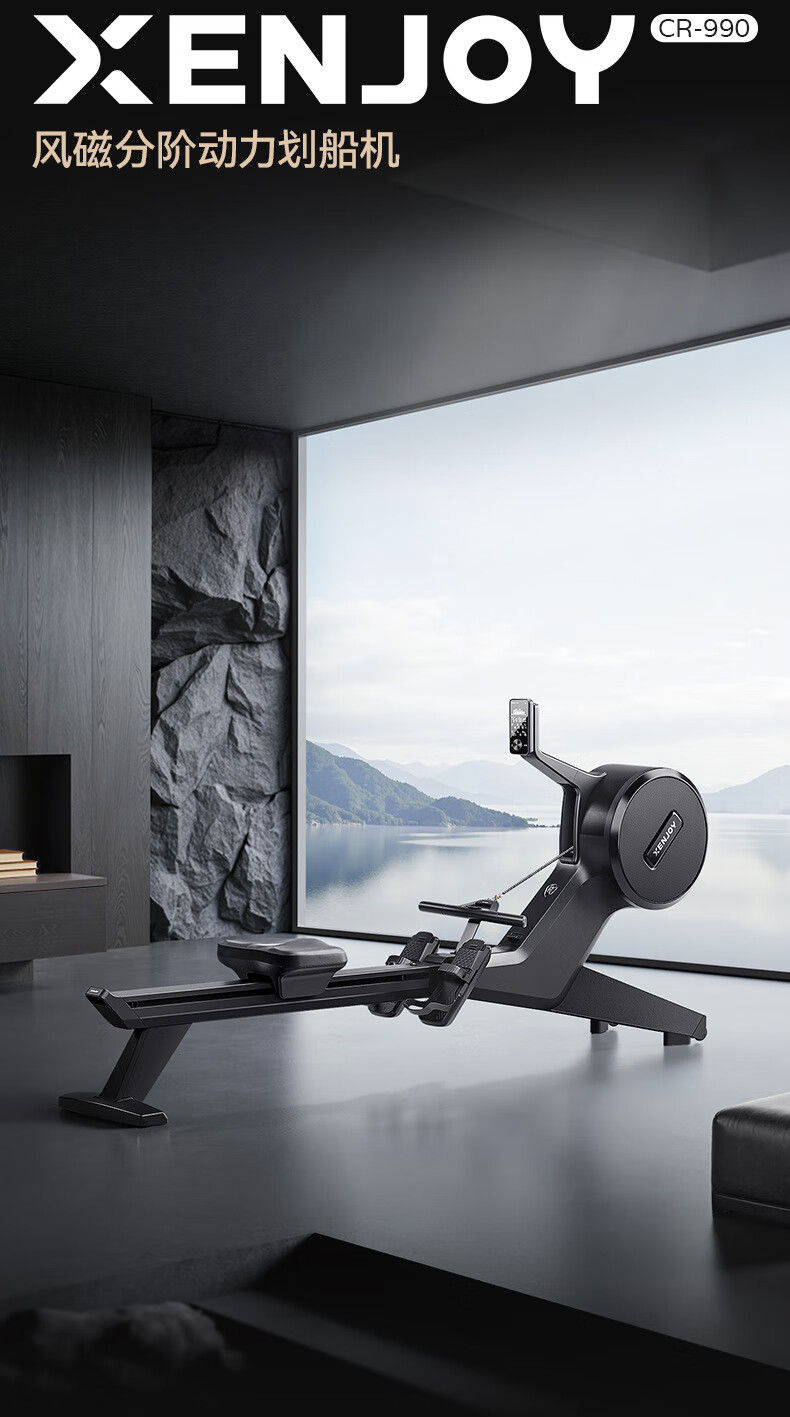 Jueying XJ-CR990 high-end commercial wind resistance magnetic resistance double resistance rowing machine smart home fitness equipment silent folding black XJ-CR990