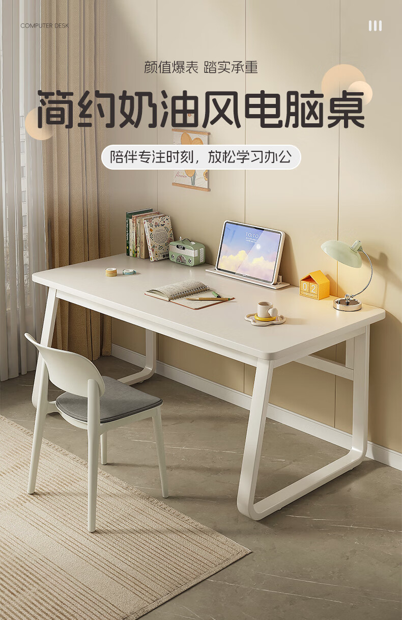 Carpenter's Mark Solid Wood Computer Desk Thickened Desktop Home Desk U-shaped Simple Desk Student Study Desk Rental Desk Loss Special Price 15 Thick Plate Brushed White Oak Color 120cm