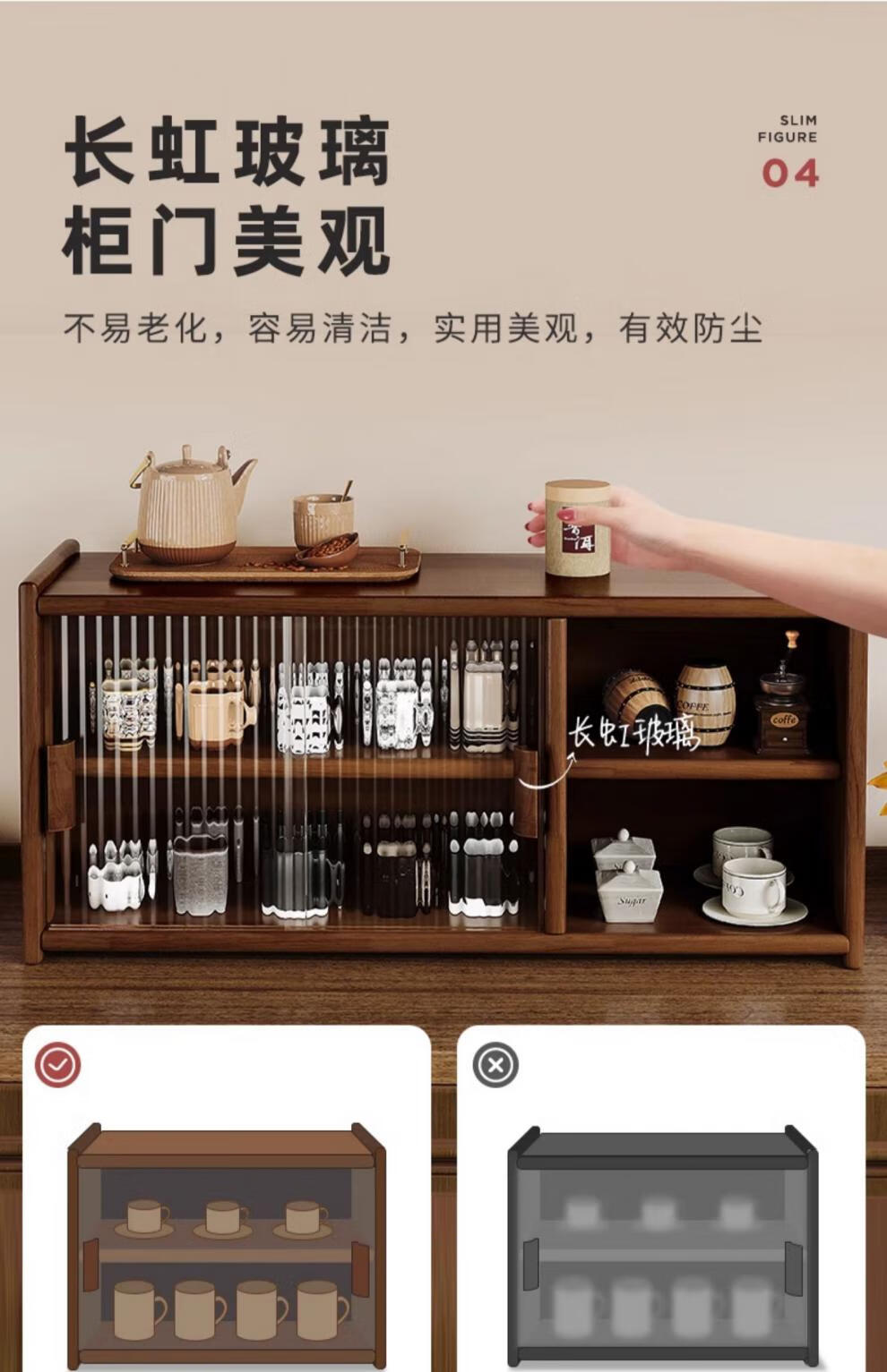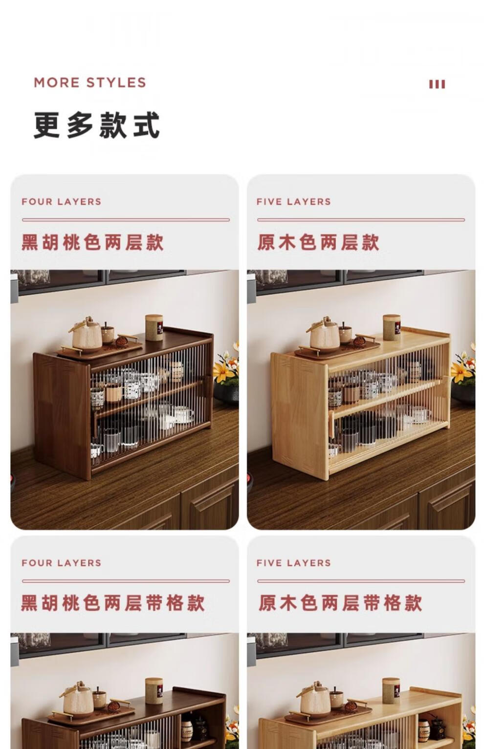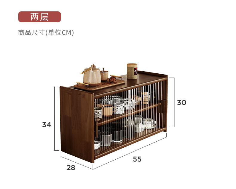 Fat Donglai same style Japanese sideboard solid wood desktop storage cabinet cupboard walnut color dining table storage rack A all solid wood pine + black walnut color varnish
