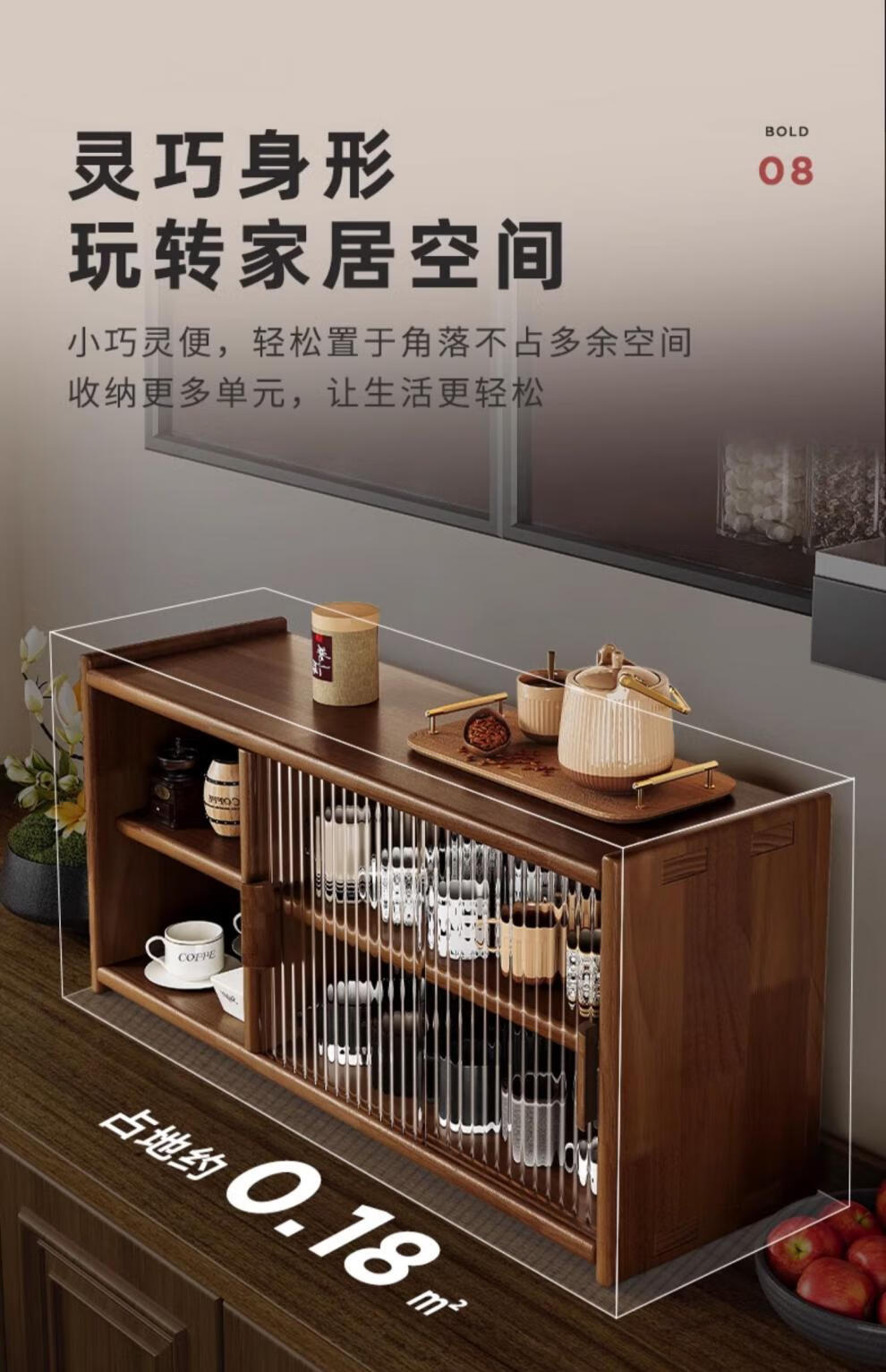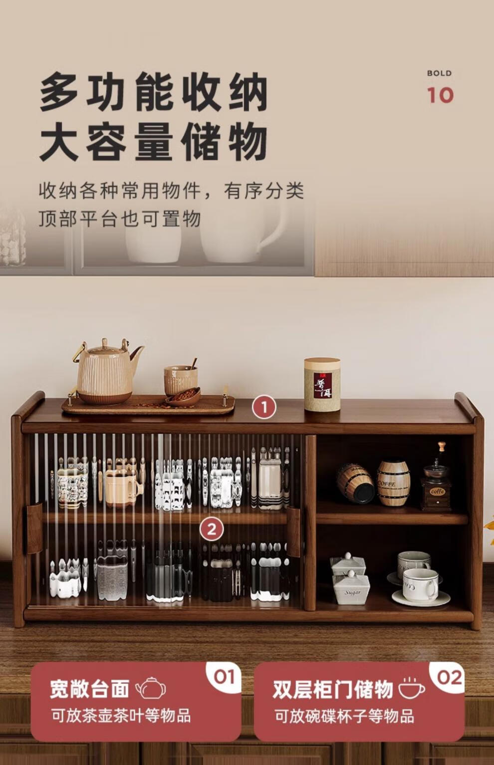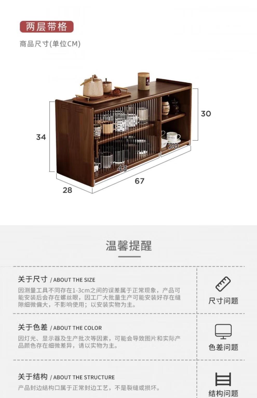 Fat Donglai same style Japanese sideboard solid wood desktop storage cabinet cupboard walnut color dining table storage rack A all solid wood pine + black walnut color varnish
