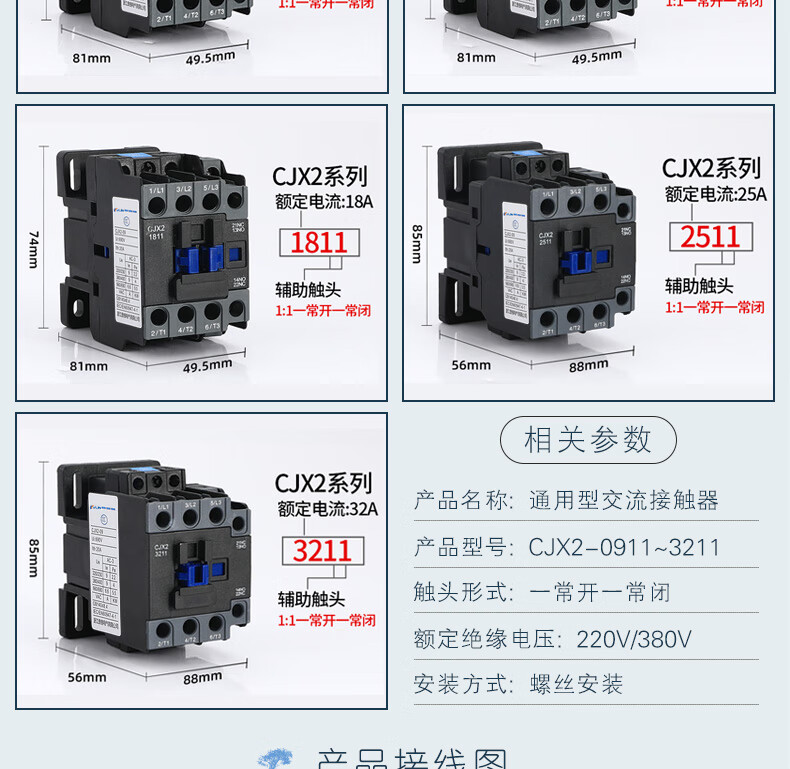 Yue Changsheng CJX2-1211 1811 2511 3211 three-phase 380V 220V silver contact copper coil AC contactor CJX2-0911 AC220V