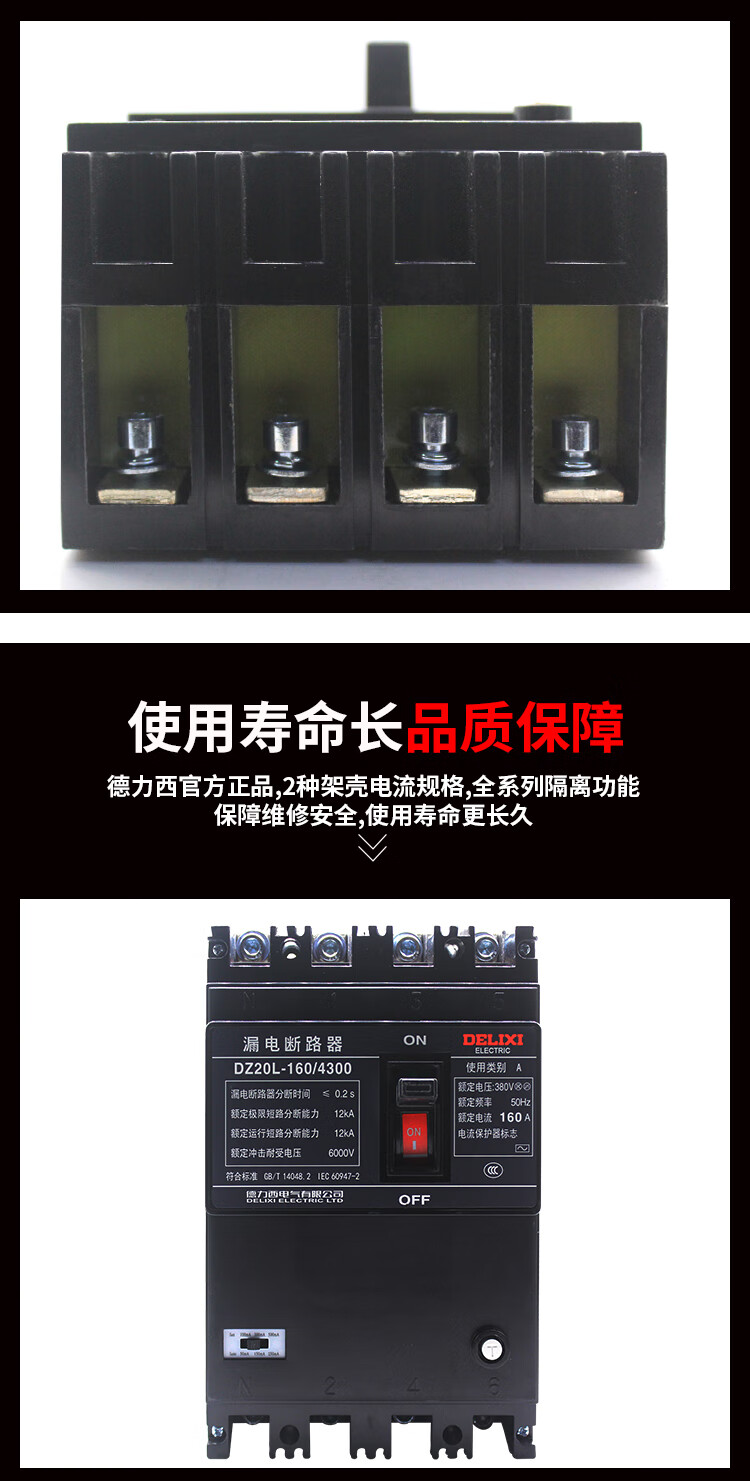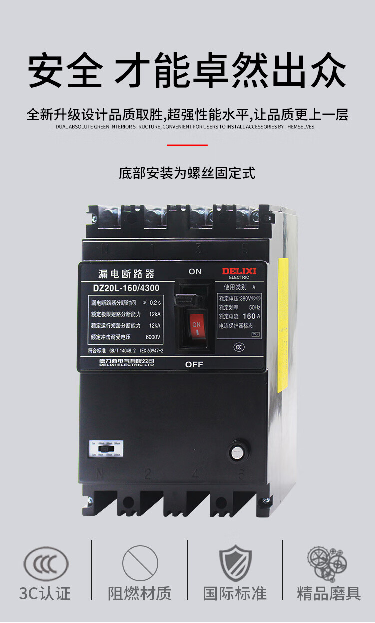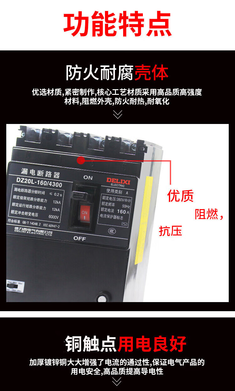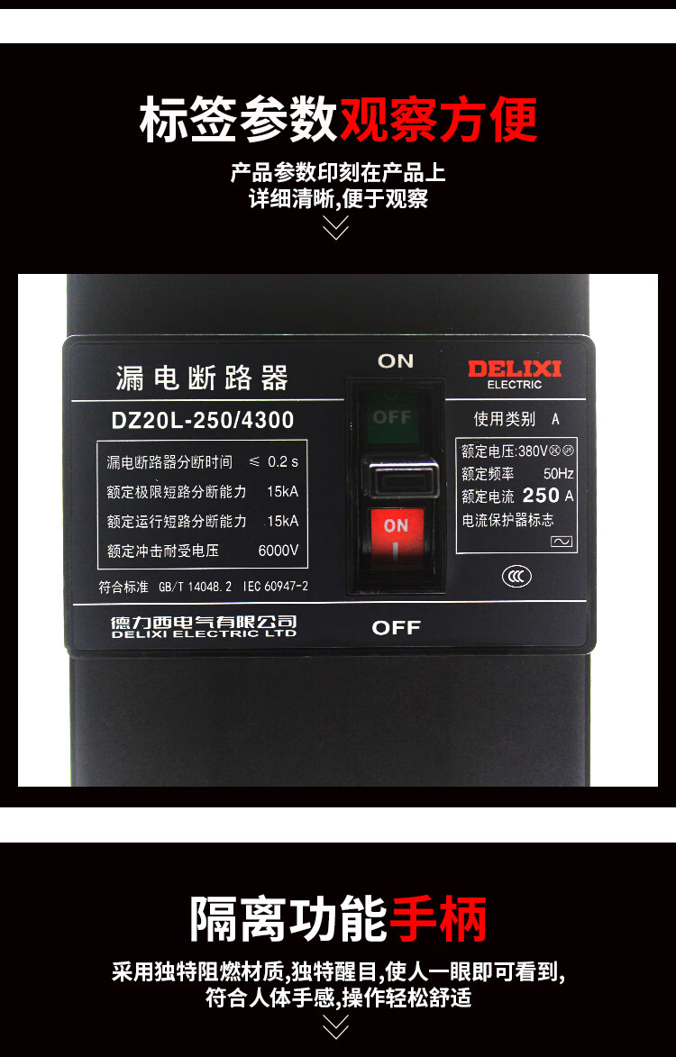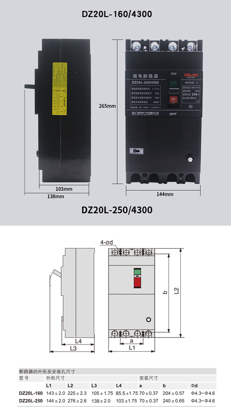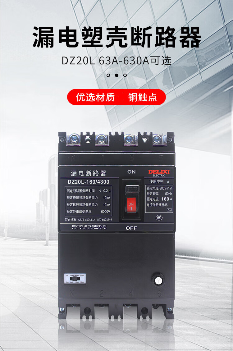 Plastic case leakage circuit breaker DZ20L-250A/4300 four-pole industrial leakage protector 4p 500A