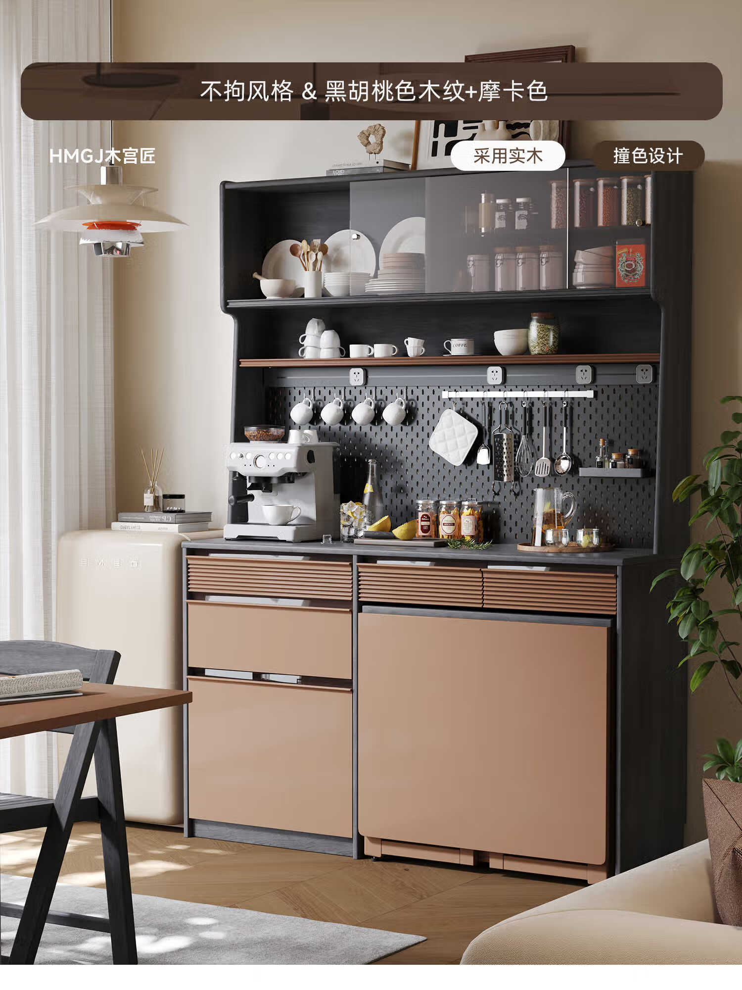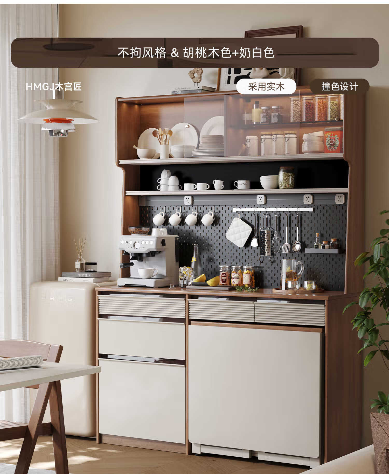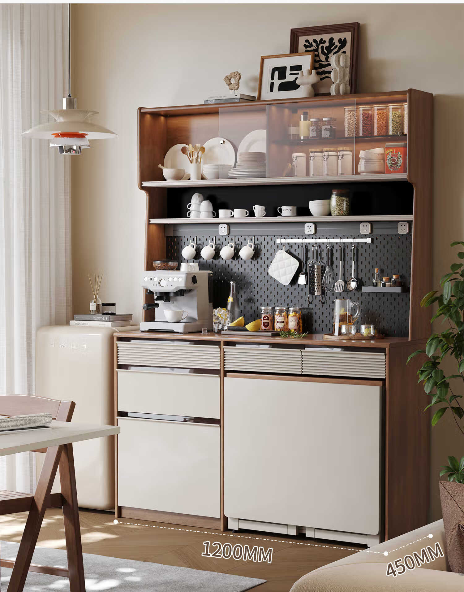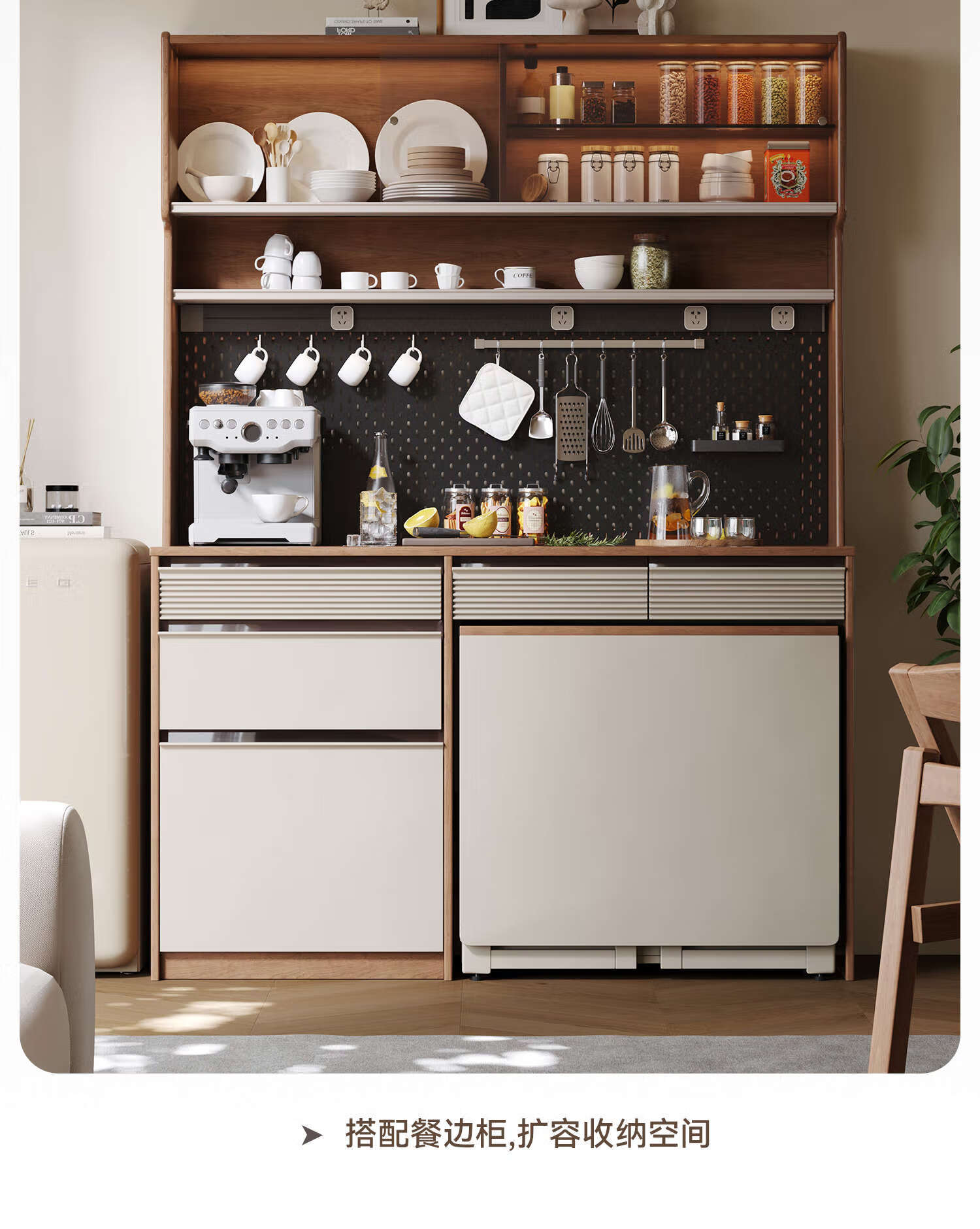 Oluoxun Chenxi solid wood sideboard and dining table integrated living room wall kitchen storage storage cabinet with dining table cabinet, all solid wood 1.2 meter sideboard (with power rail)