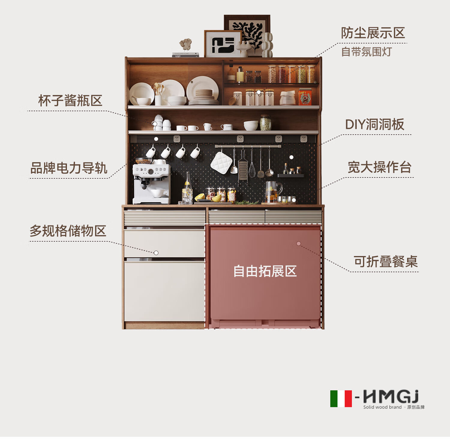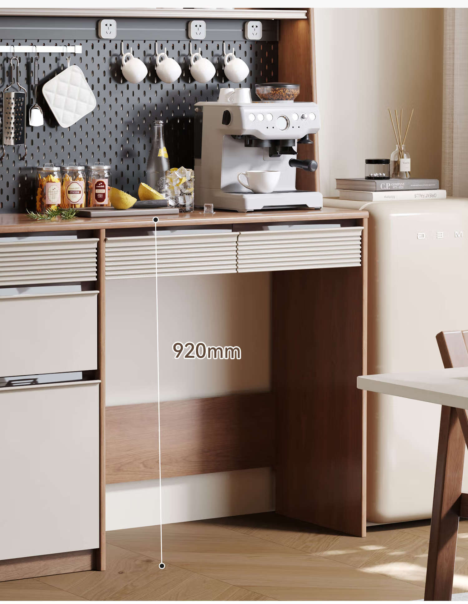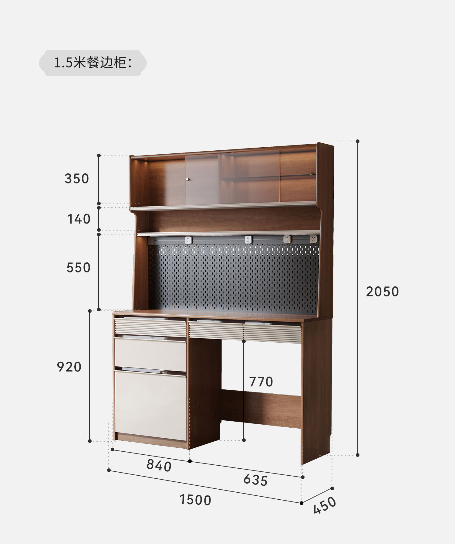 Oluoxun Chenxi solid wood sideboard and dining table integrated living room wall kitchen storage storage cabinet with dining table cabinet, all solid wood 1.2 meter sideboard (with power rail)
