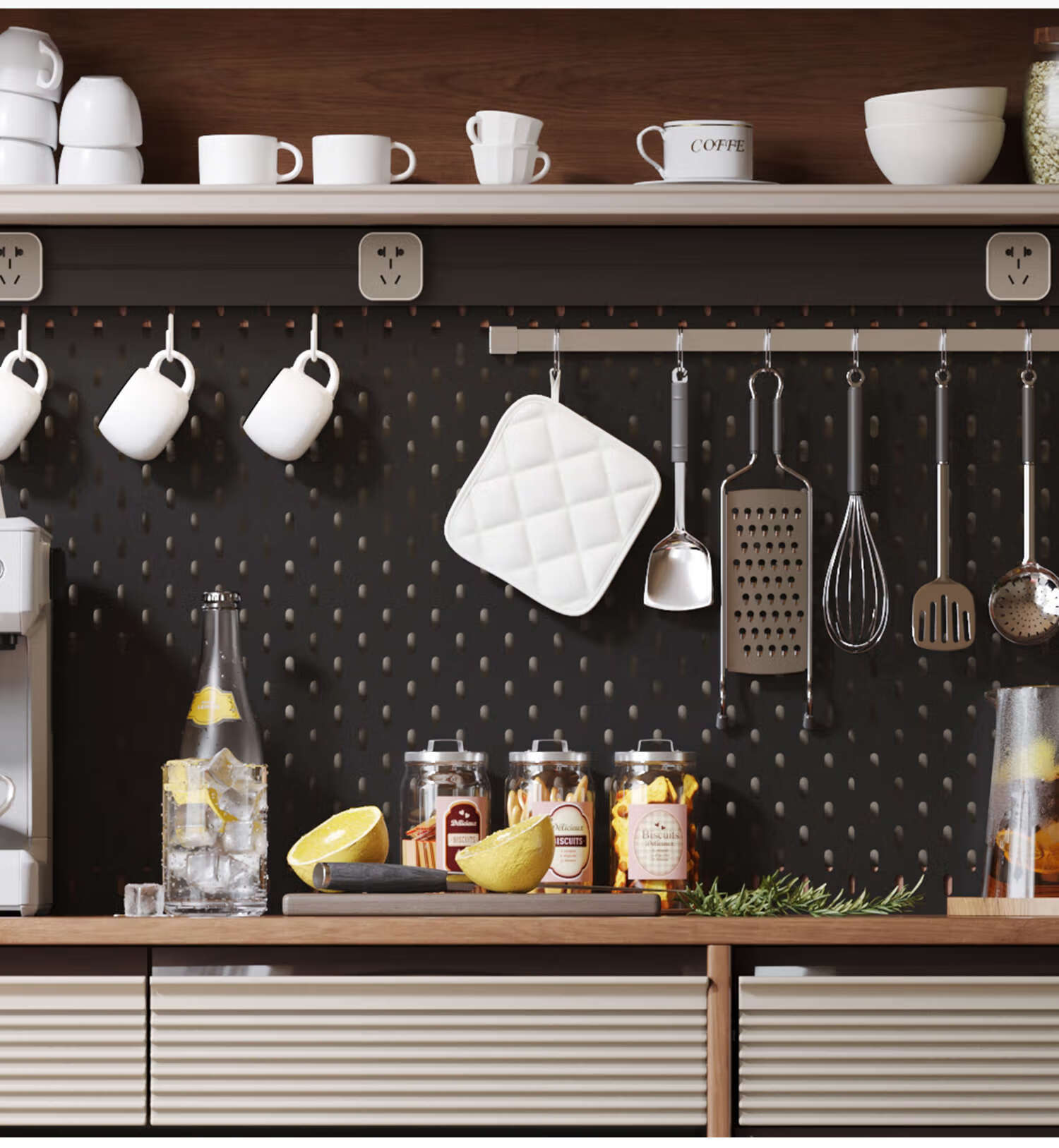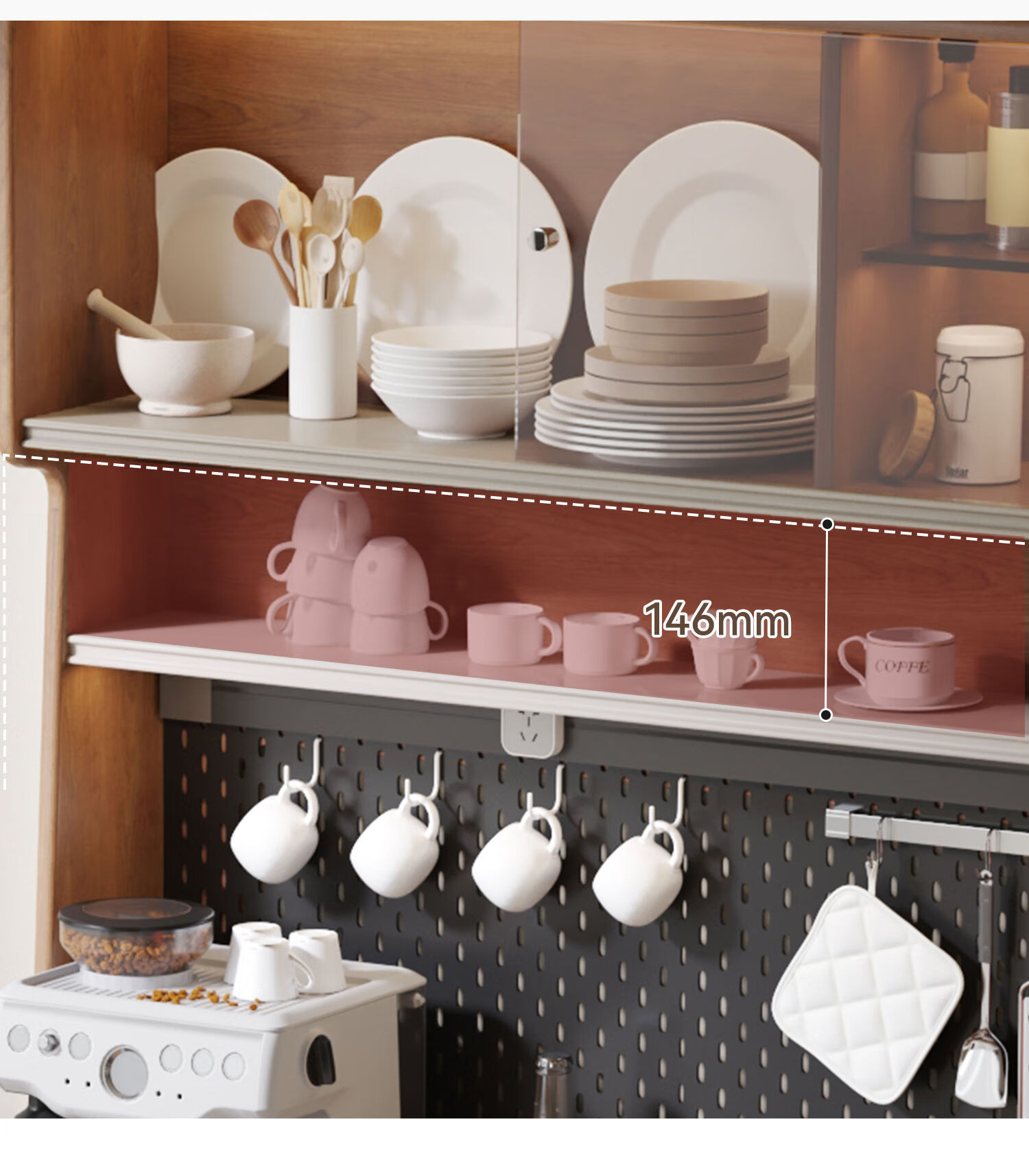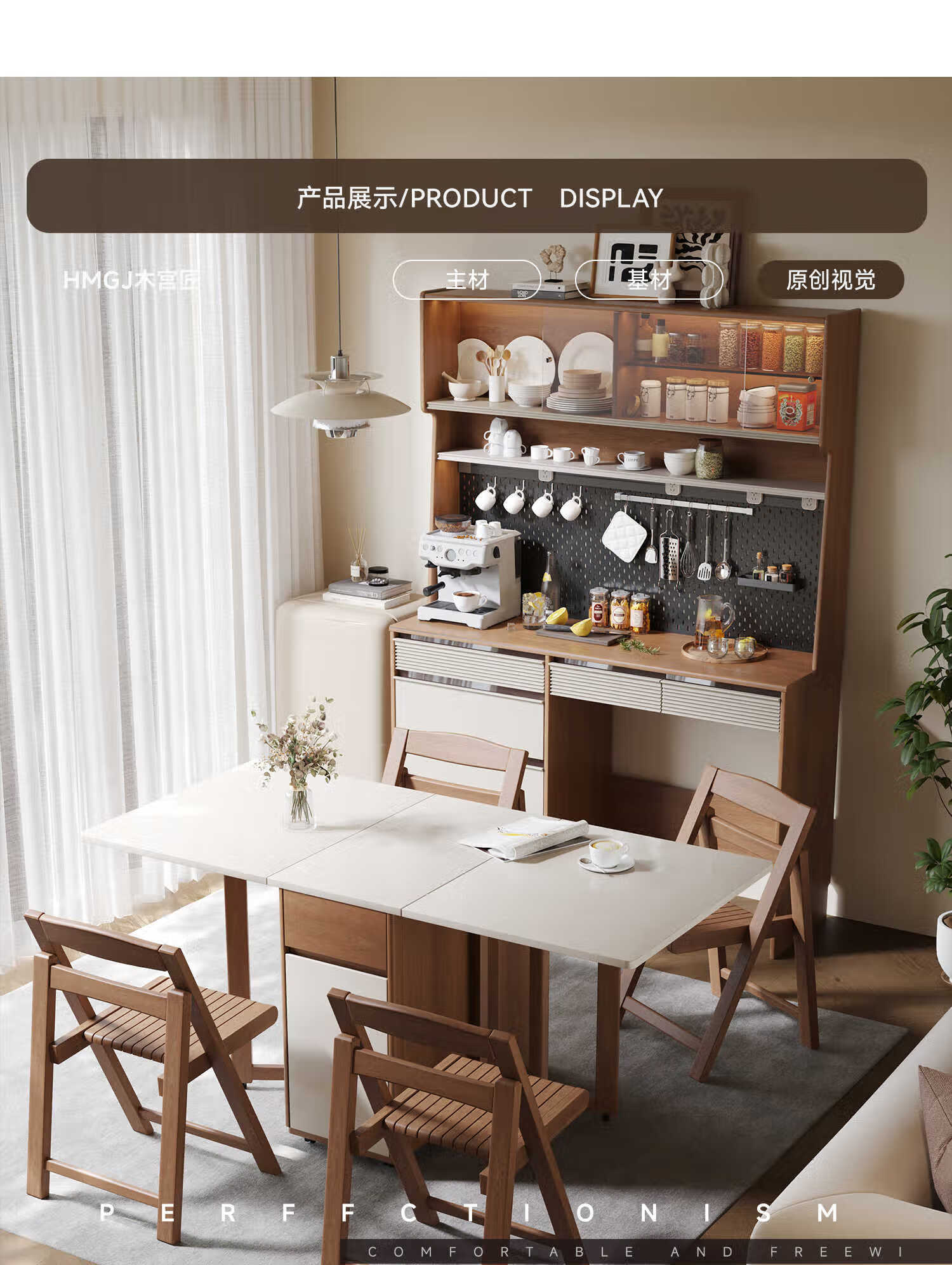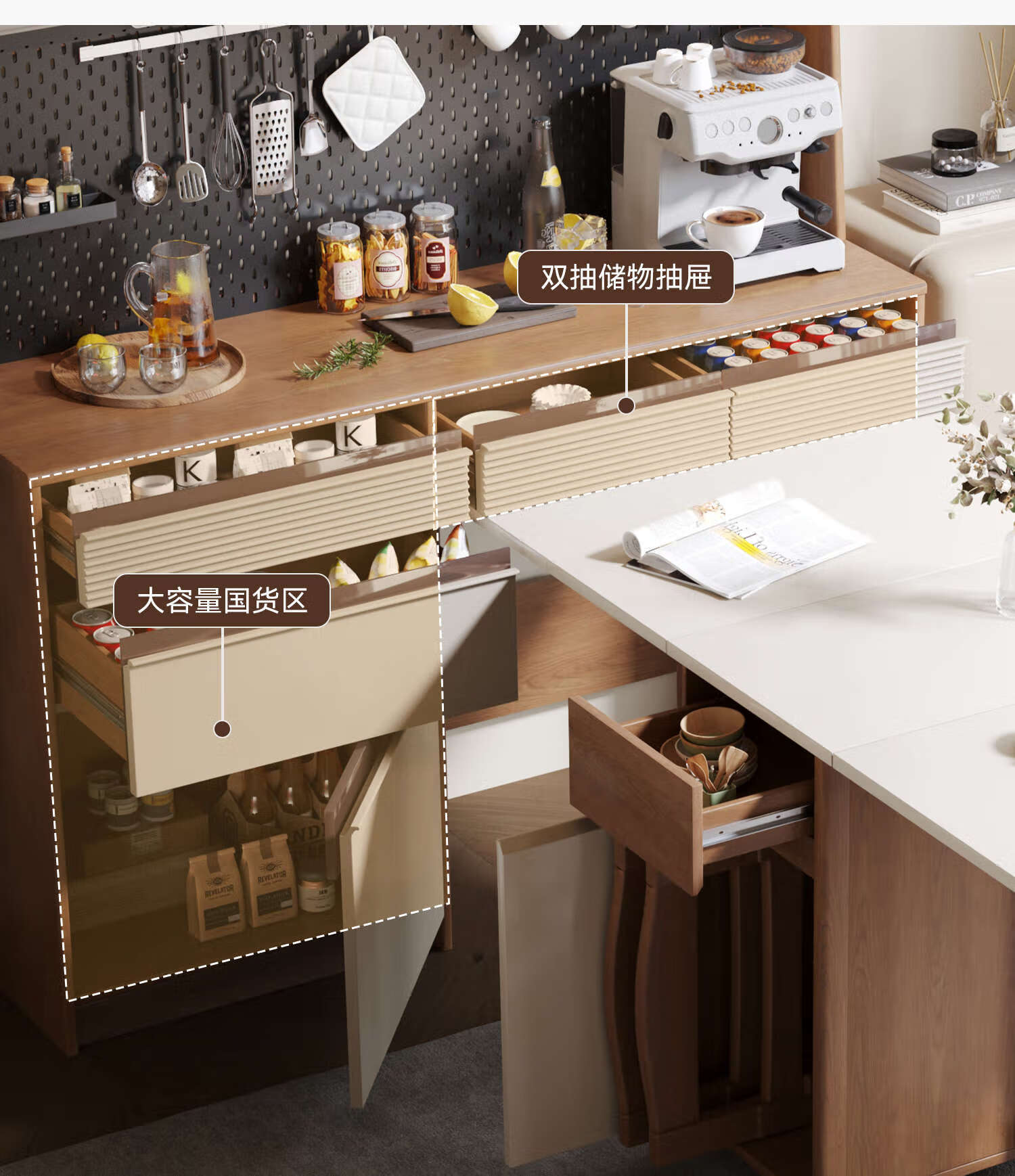 Oluoxun Chenxi solid wood sideboard and dining table integrated living room wall kitchen storage storage cabinet with dining table cabinet, all solid wood 1.2 meter sideboard (with power rail)
