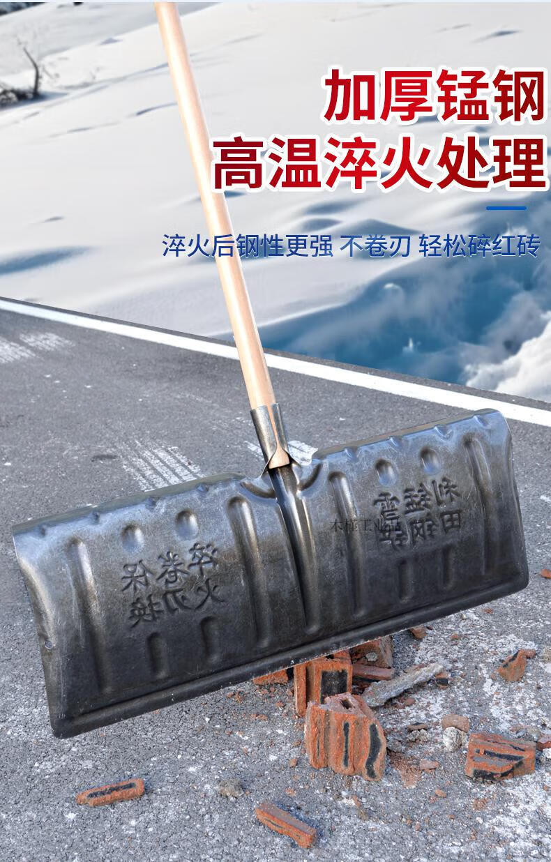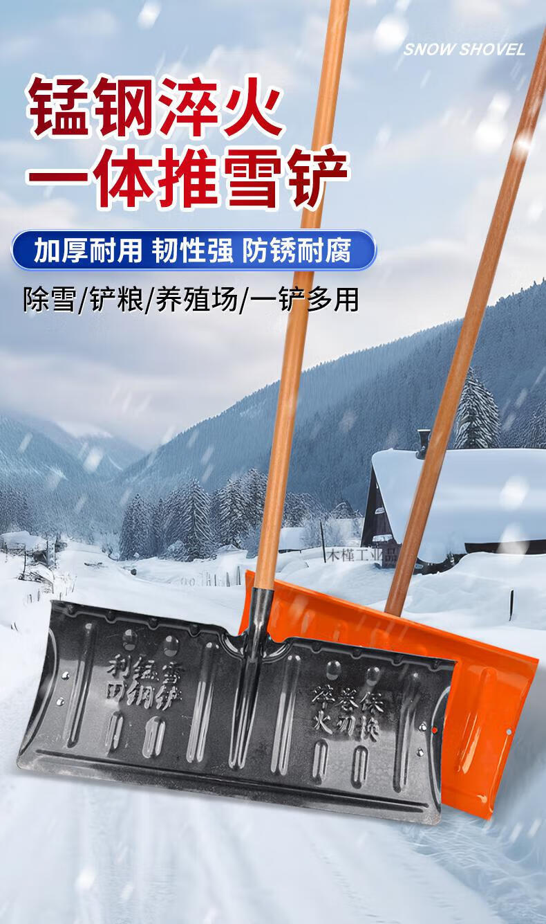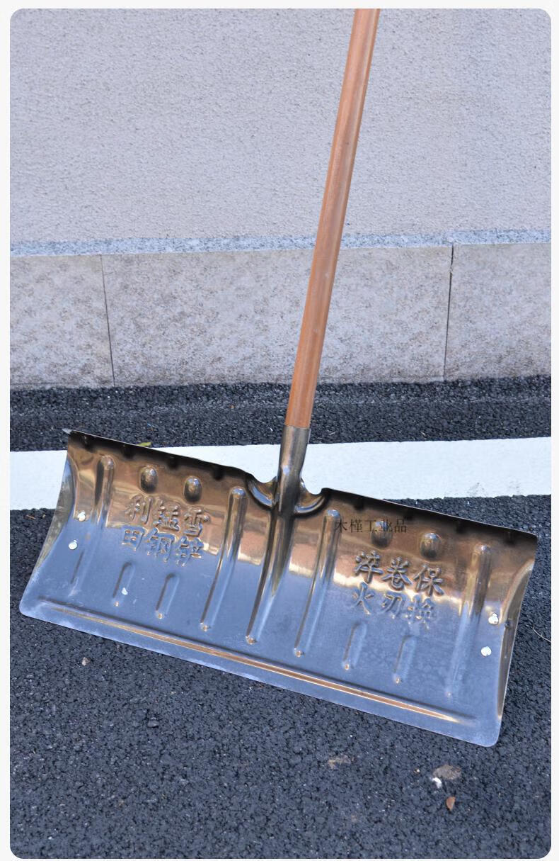 Large snow shovel outdoor snow shovel plate grain sled snow clearing shovel shovel sweeping snow corn Fendi large 57cm thick manganese steel quenched snow shovel + T-shaped hardwood handle