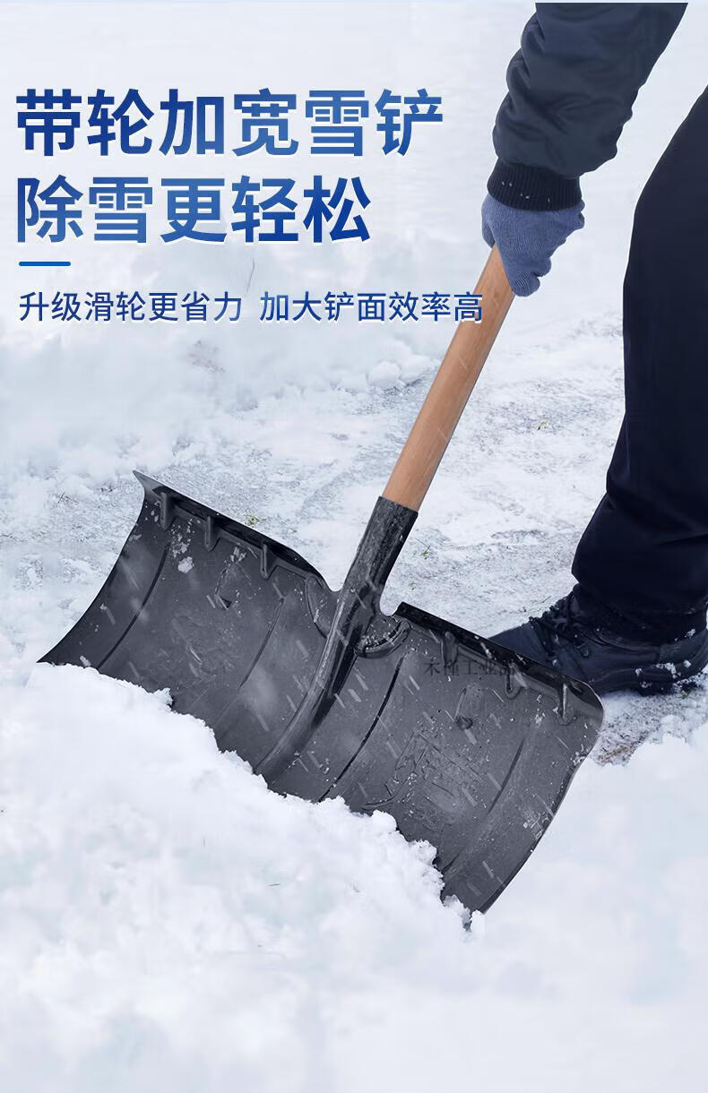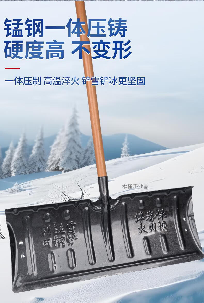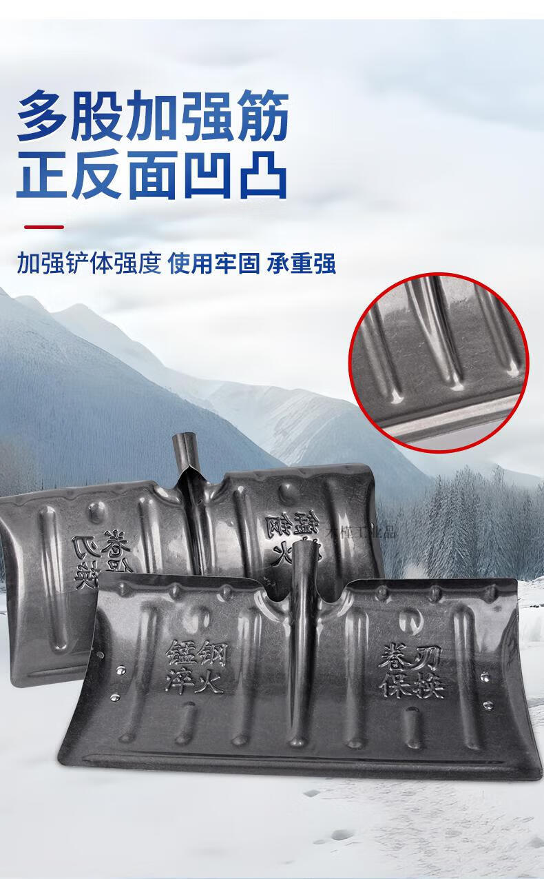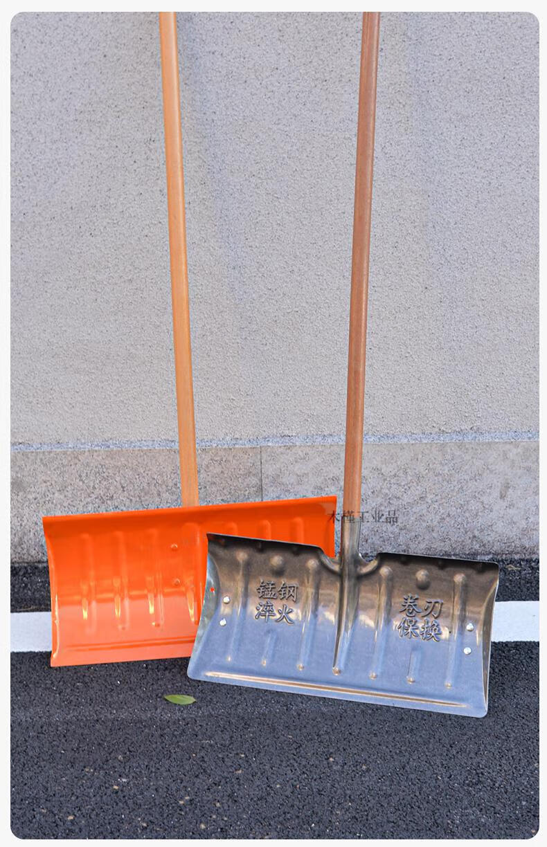 Large snow shovel outdoor snow shovel plate grain sled snow clearing shovel shovel sweeping snow corn Fendi large 57cm thick manganese steel quenched snow shovel + T-shaped hardwood handle