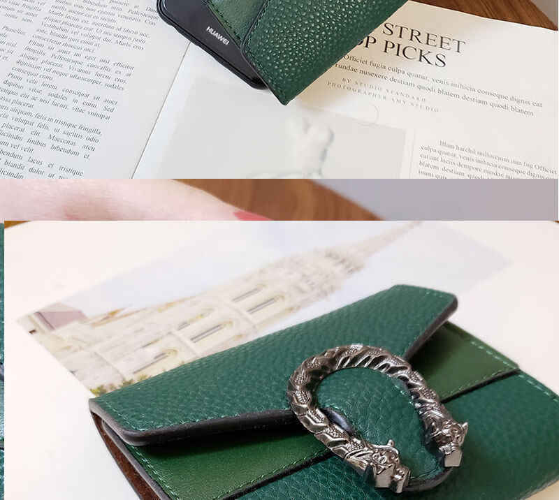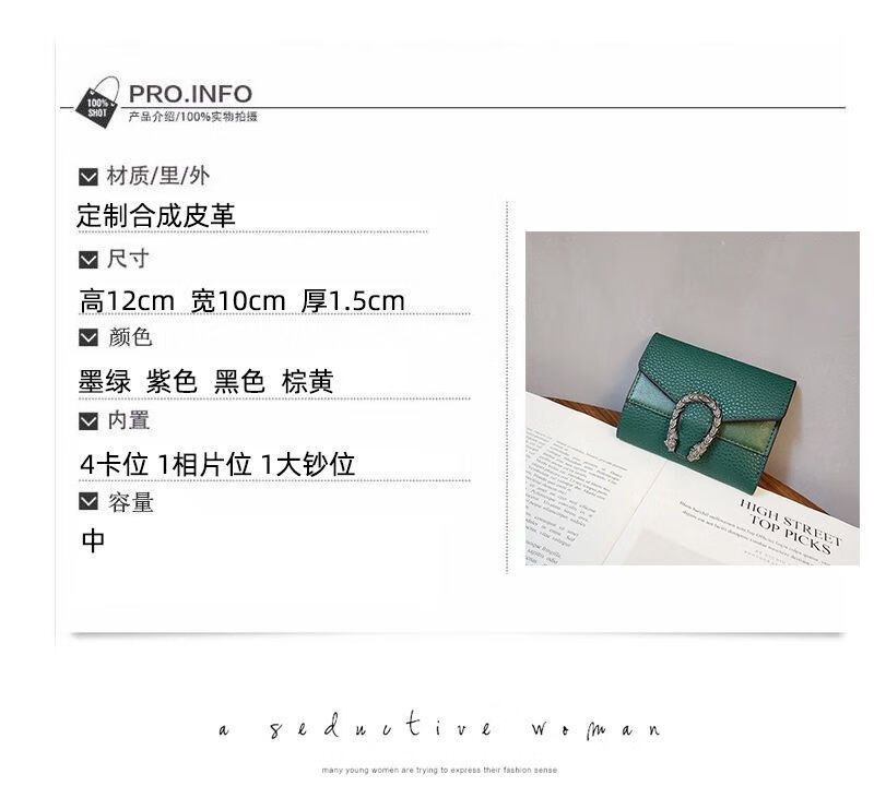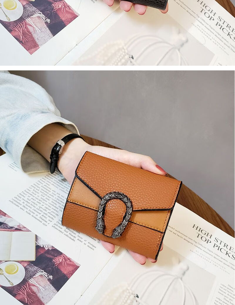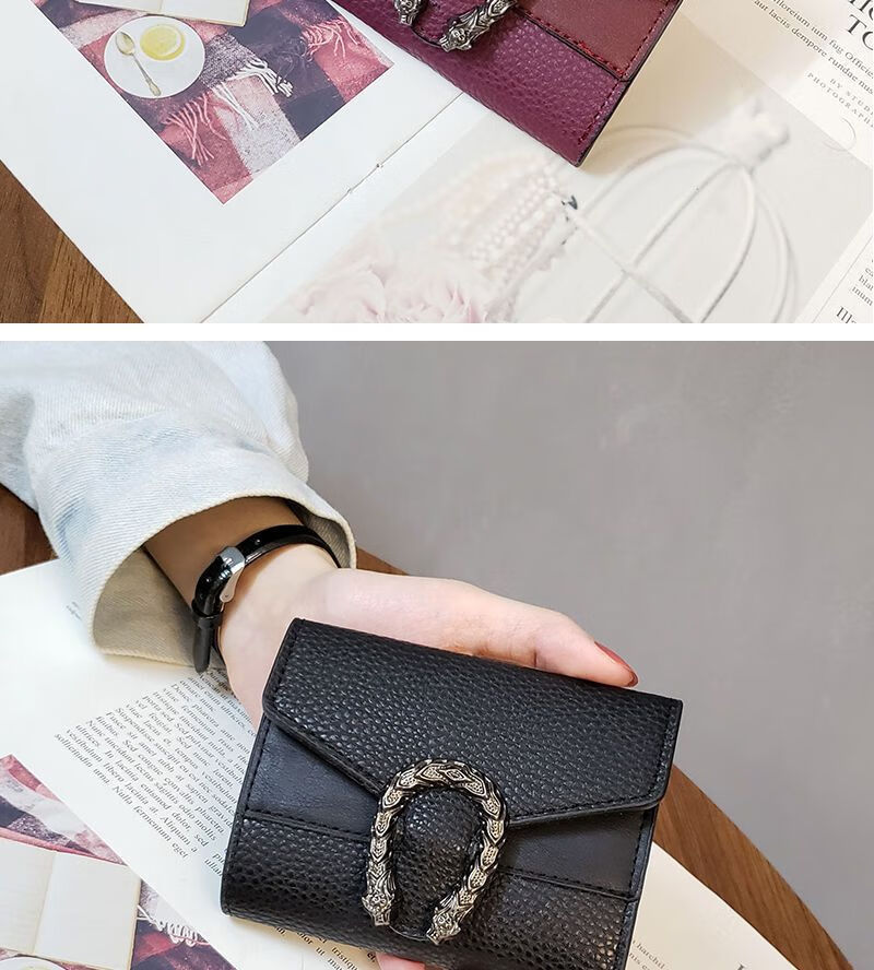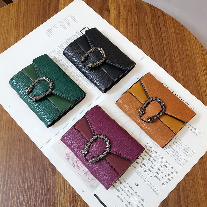 Casa-kupsCKins new European and American solid color Bacchus women's wallet women's short three-fold small wallet women's coin purse card bag leather green (solid color)