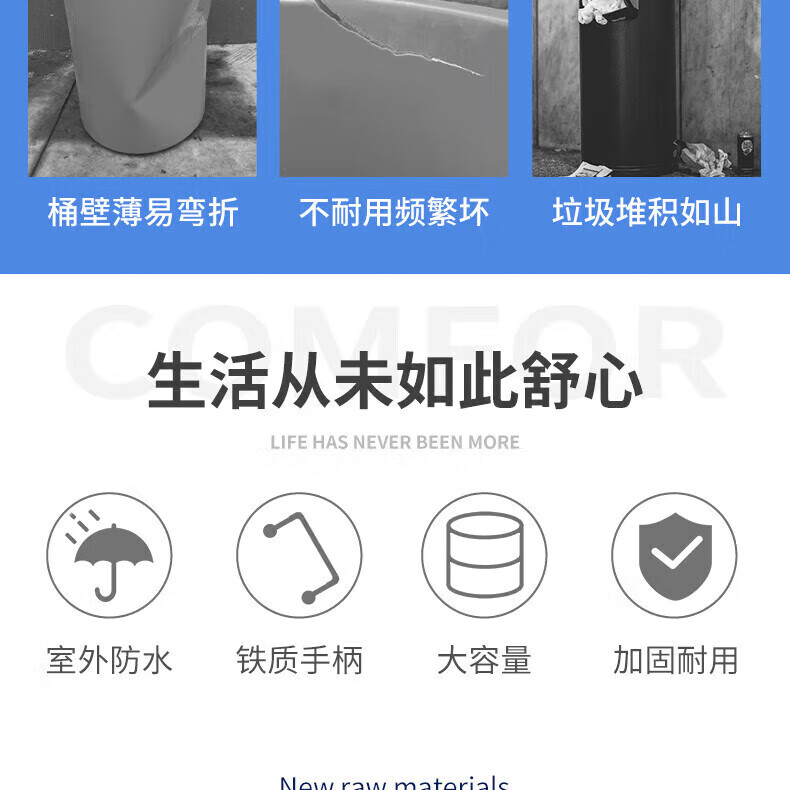 Yue Changsheng customized kitchen trash can large with lid commercial capacity thickened public outdoor sanitation plastic industrial round bargaining price 380L white without lid + water ladle