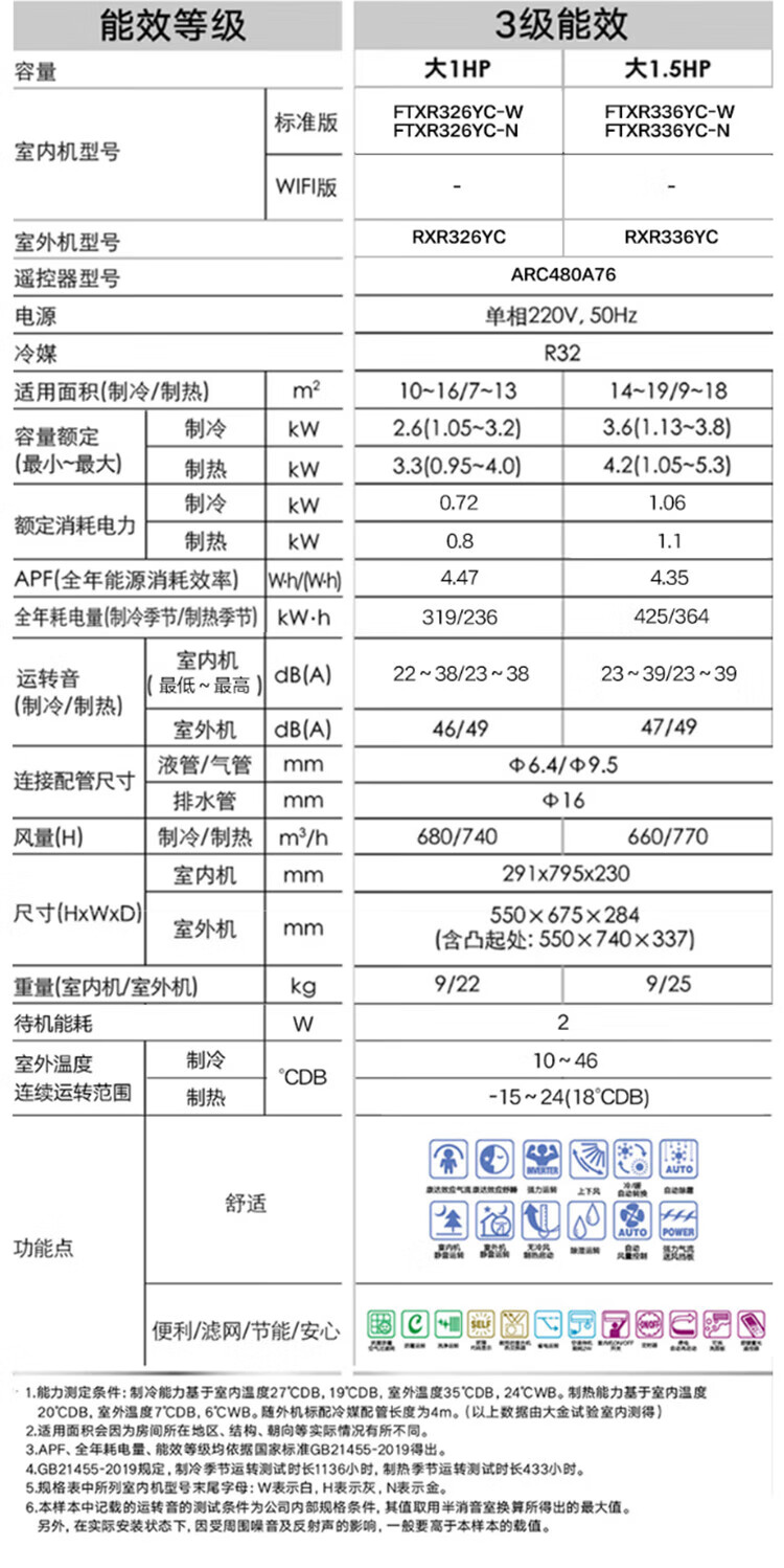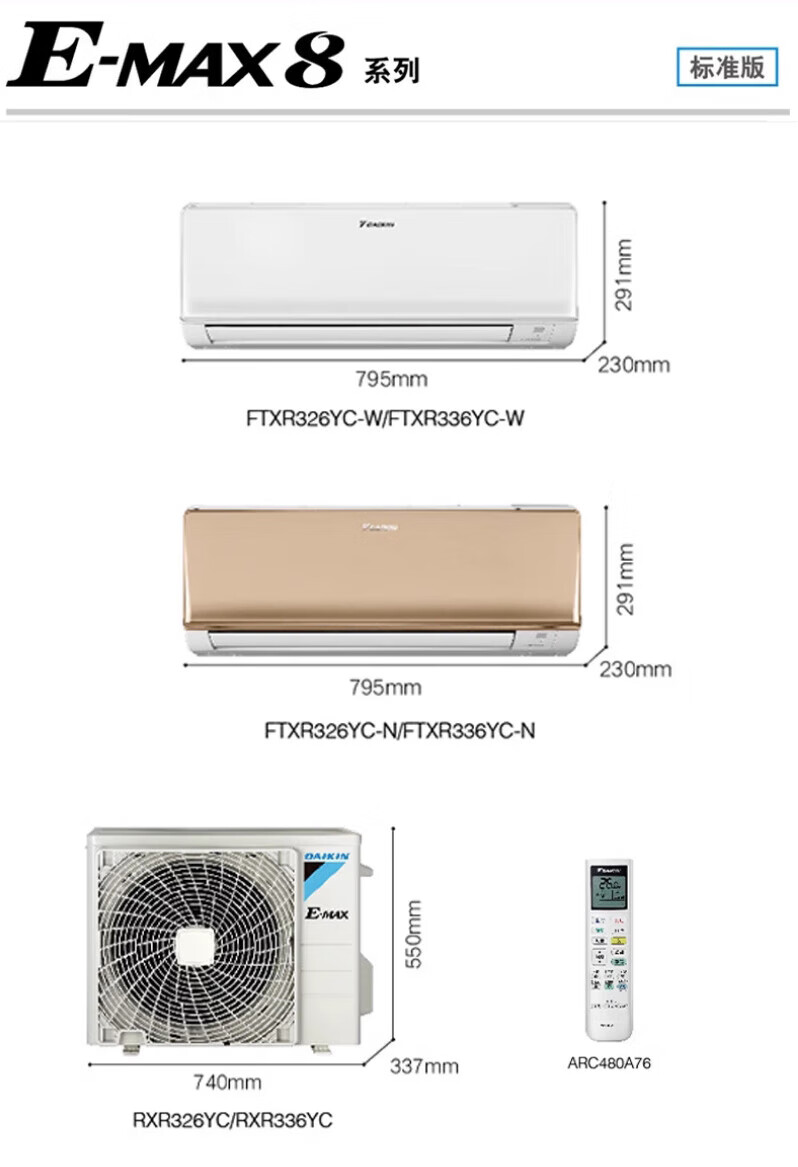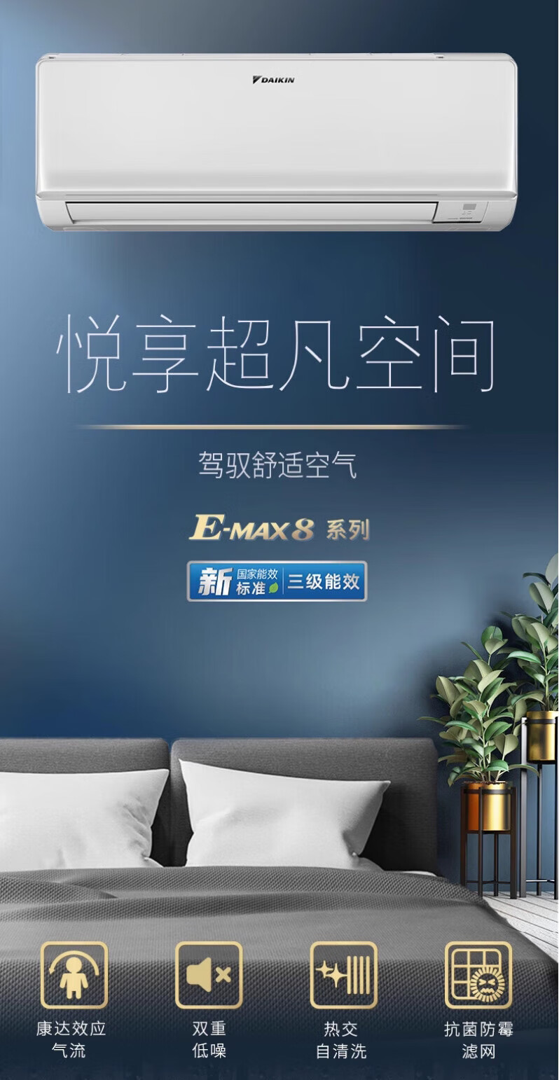Daikin Air Conditioning Large 1.5 HP Inverter Hanging Air Conditioner Kangda Airflow New National Standard Wall Mounted Self-Cleaning E-MAX-7/8 Trade-in Subsidy R Series Large 1.5 HP Three-level Energy Efficiency R336 White