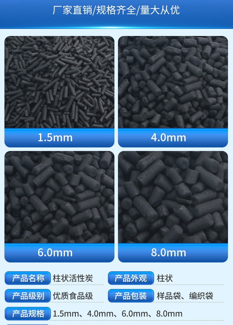 Exhaust gas treatment, sewage treatment, bulk adsorption box, special activated carbon for spray paint room, industrial columnar activated carbon particles, 10kg special columnar delivery bag for home decoration aldehyde removal