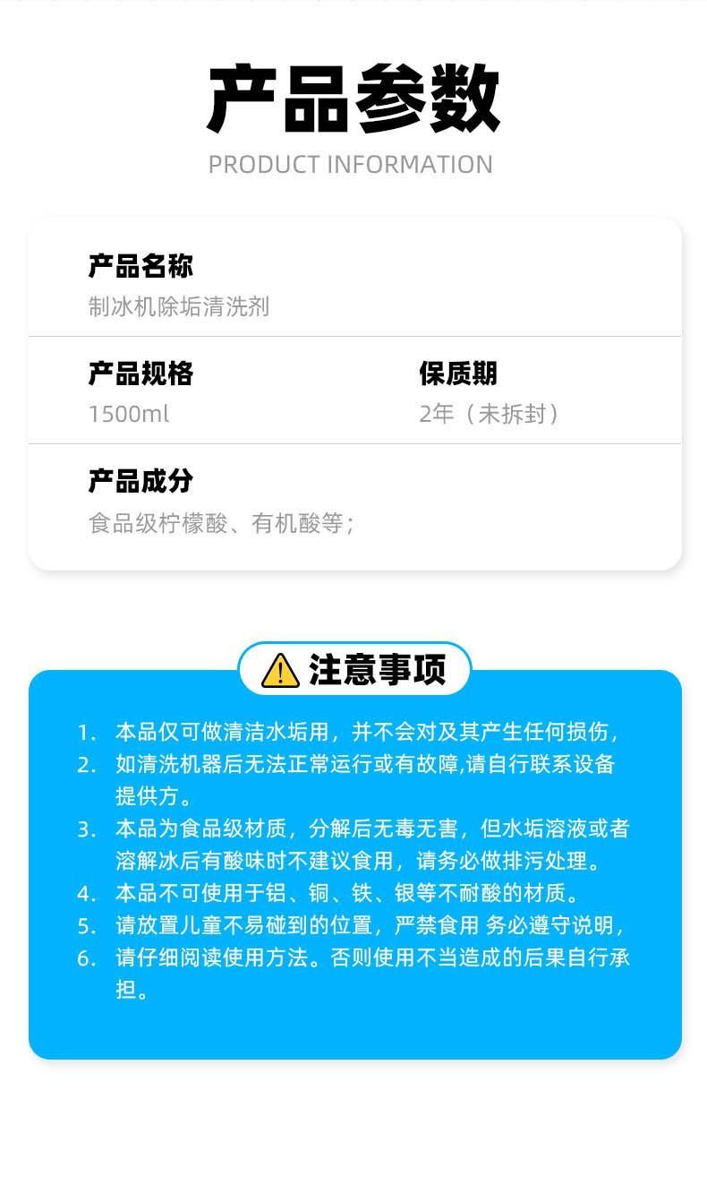 Ice machine special cleaning agent, ice tray scale removal, food grade citric acid descaling agent, large barrel automatic cleaner, cleaning, decontamination, scale removal, ice making machine cleaning agent 2500ml