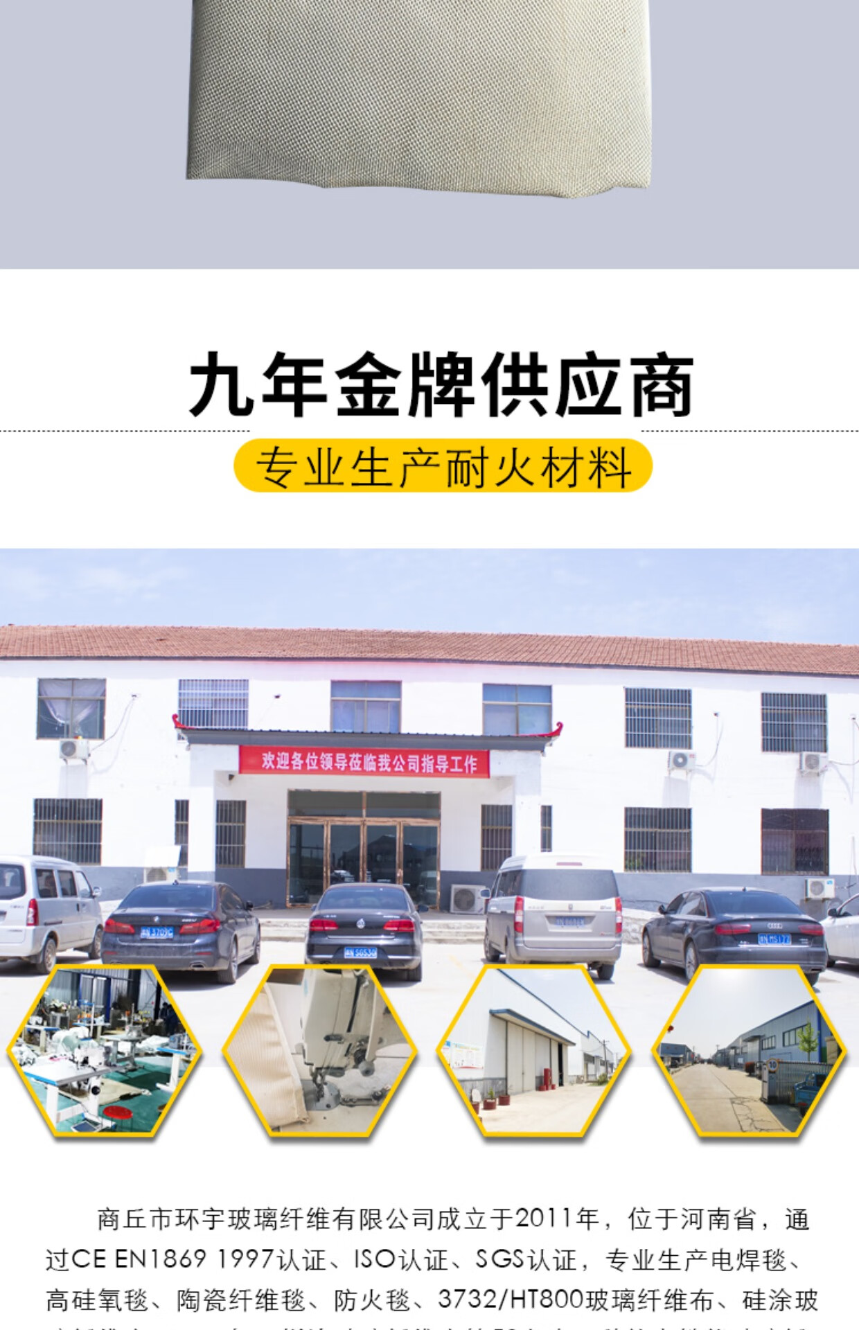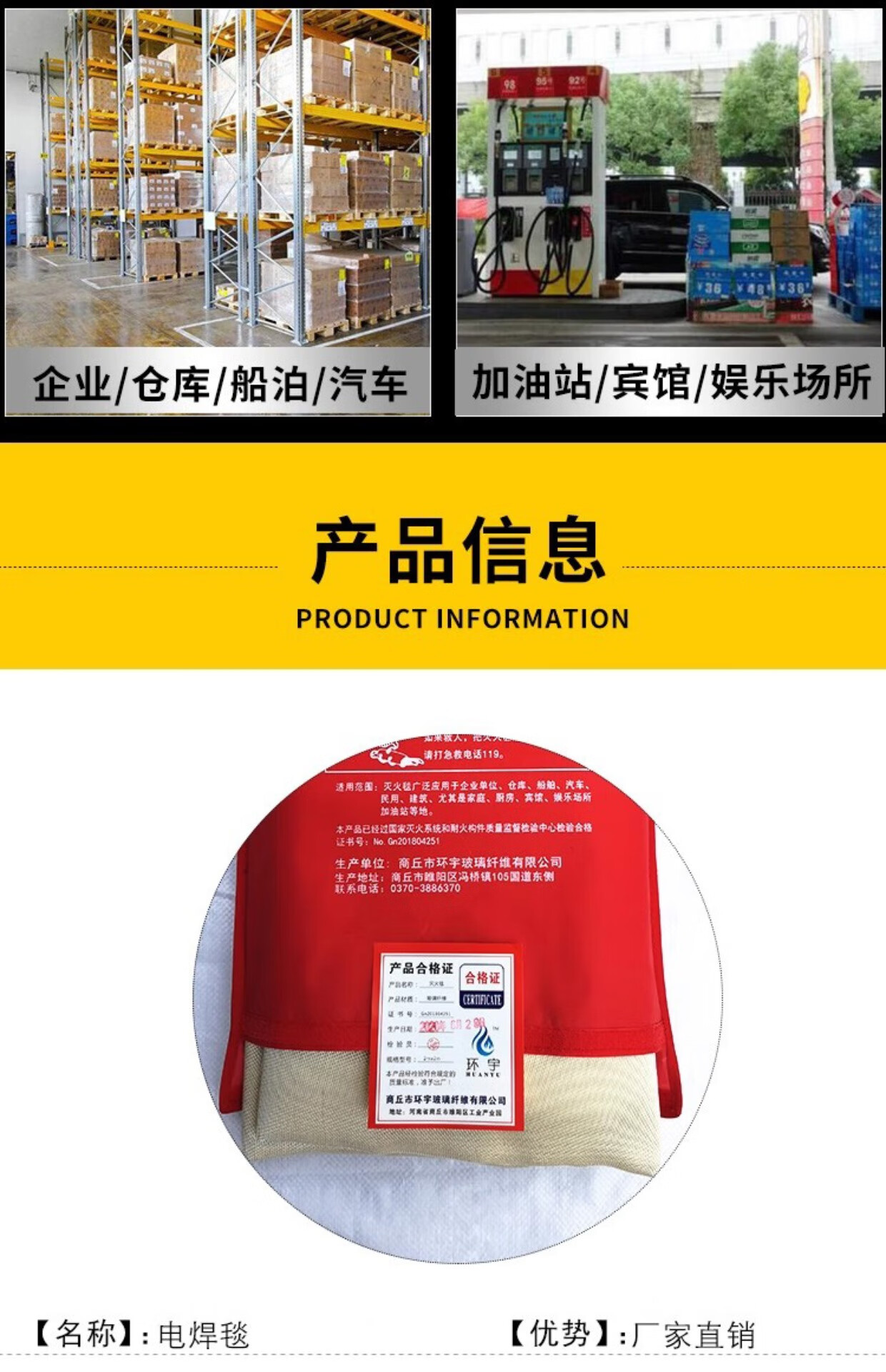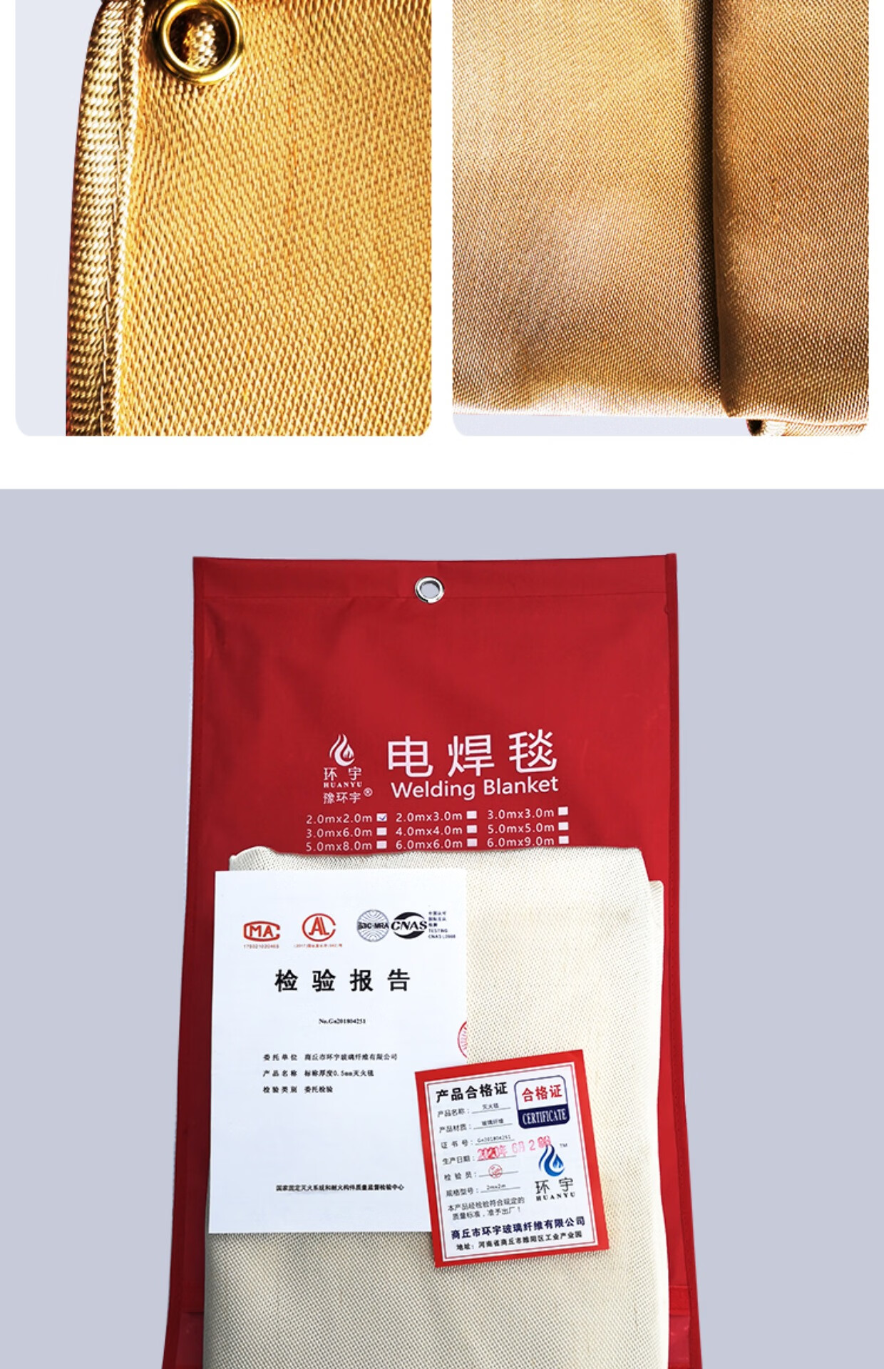 International fire certified glass fiber welding blanket safety household high temperature resistant universal fire extinguishing welding blanket gold thickened 1mm*6*6 meters