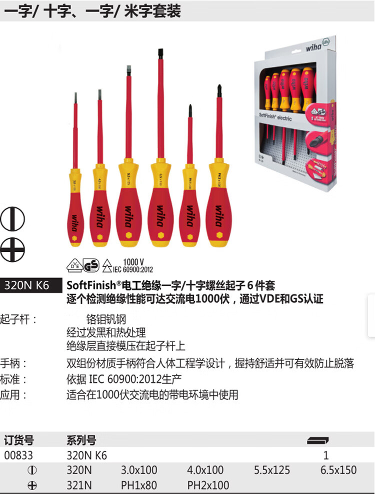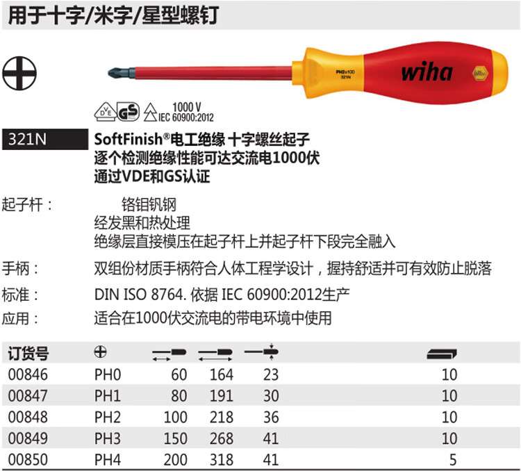 Weihan Weihan German craftsmanship imported AGR certified electrician insulated screwdriver one word cross rice word electrician tool 3mm cross PH0x60mm 00846