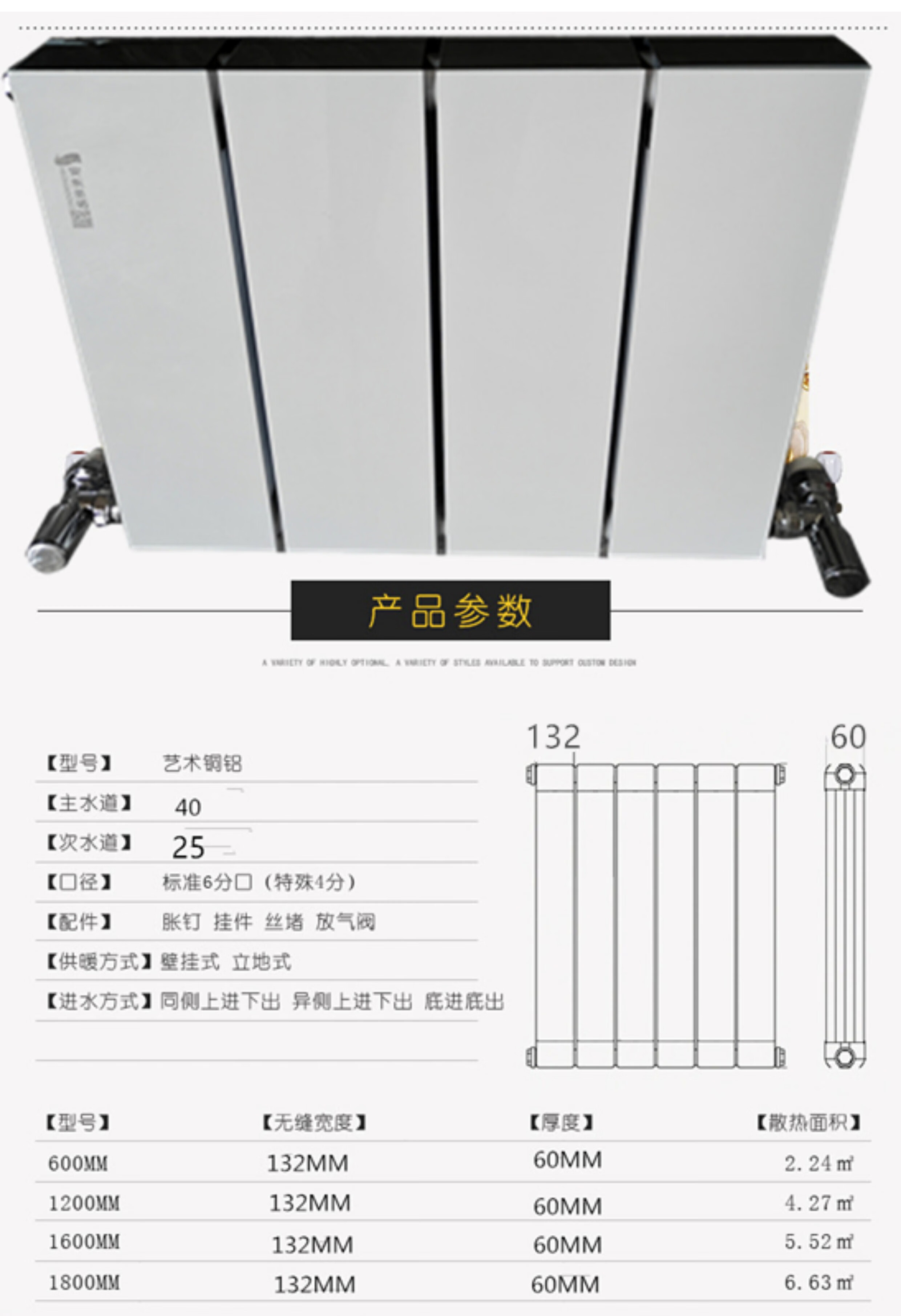 Hongtu radiator household copper-aluminum composite heating surface-mounted vertical ultra-thin new water heating radiator wall-mounted American style double copper tube column width 132 0mm*0 column 1.8m