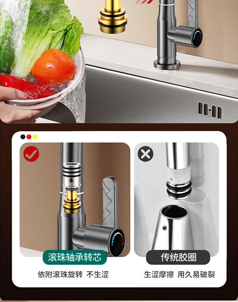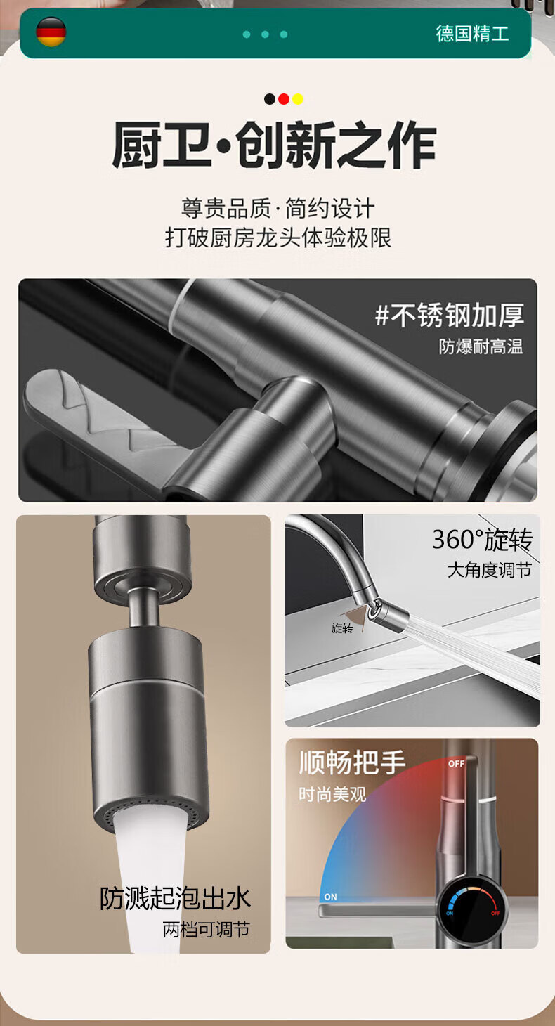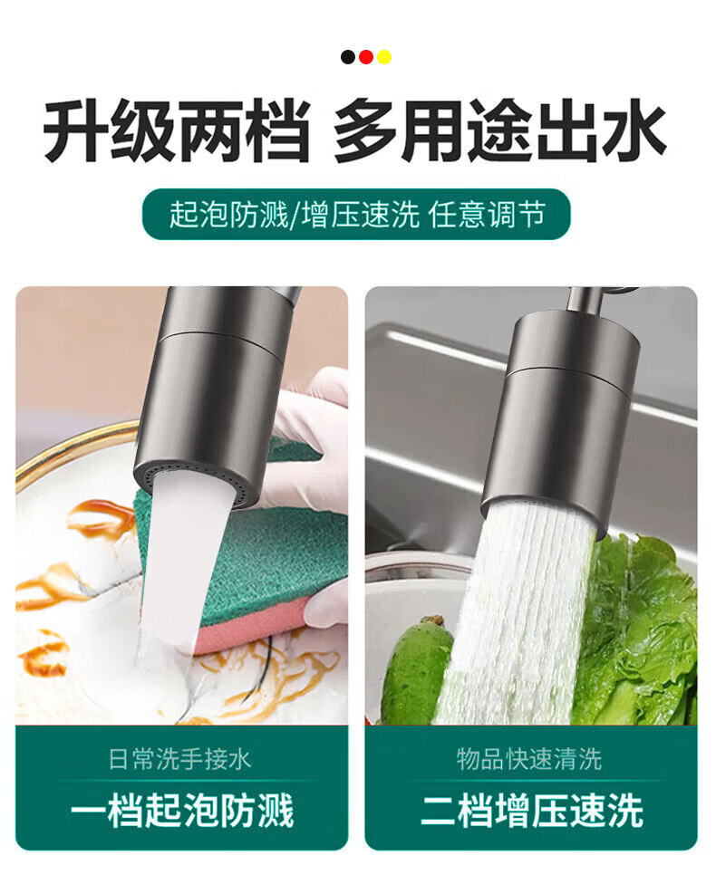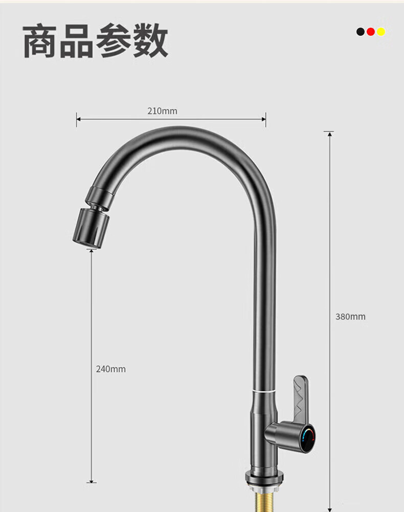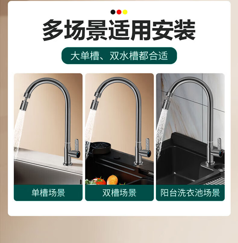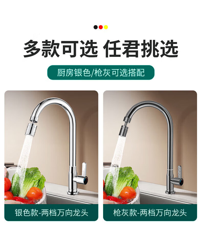 Jiumuwang stainless steel single-cold kitchen faucet household vegetable basin wash basin sink universal rotating pressurized anti-splash faucet electroplating two-speed water outlet single-cold universal faucet anti-corrosion and anti-rust 80cm water inlet pipe