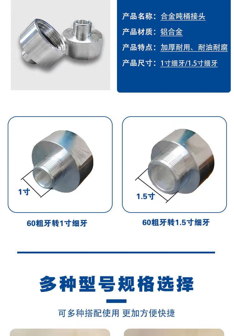 Oil-resistant and anti-corrosion IBC barrel ton barrel connector 1 inch coarse thread alloy conversion joint valve conversion switch accessories 60 coarse thread 1.5 inch thread 38mm