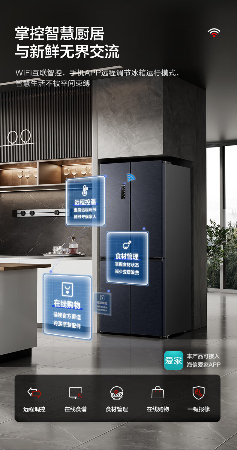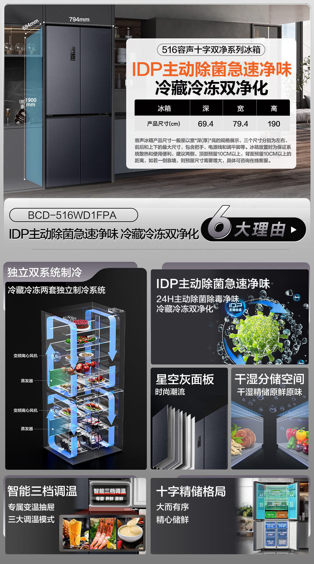 Ronshen double purification 516 liter cross four-door first-level frequency conversion active sterilization refrigerator household BCD-516WD1FPA quality tail goods dual system 501 liter BCD-501WD18FP