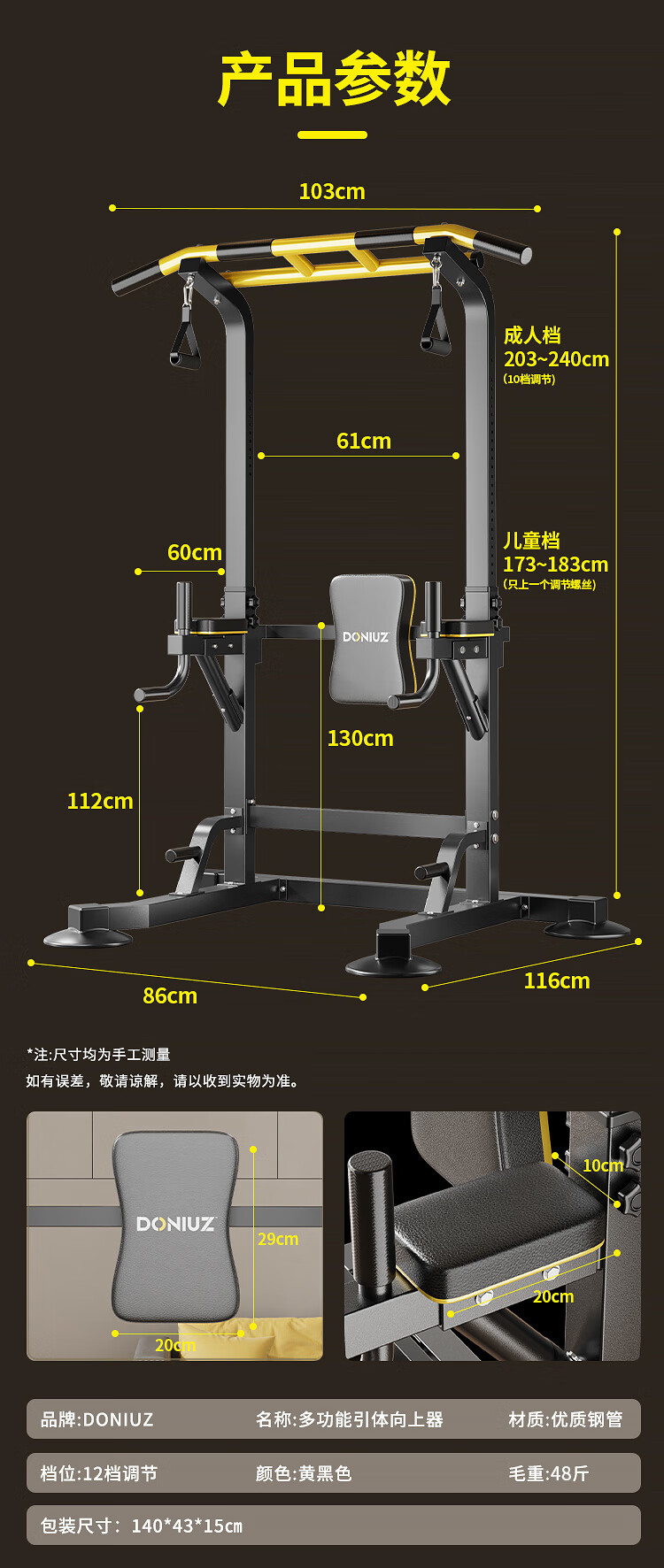 DONIUZ home indoor pull-ups for adults and children fitness training sports equipment floor-standing single parallel bars parallel bars arm flexion and extension flagship model + hanging ring + pull-up auxiliary belt