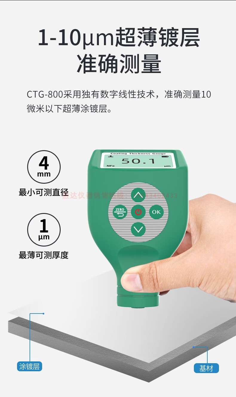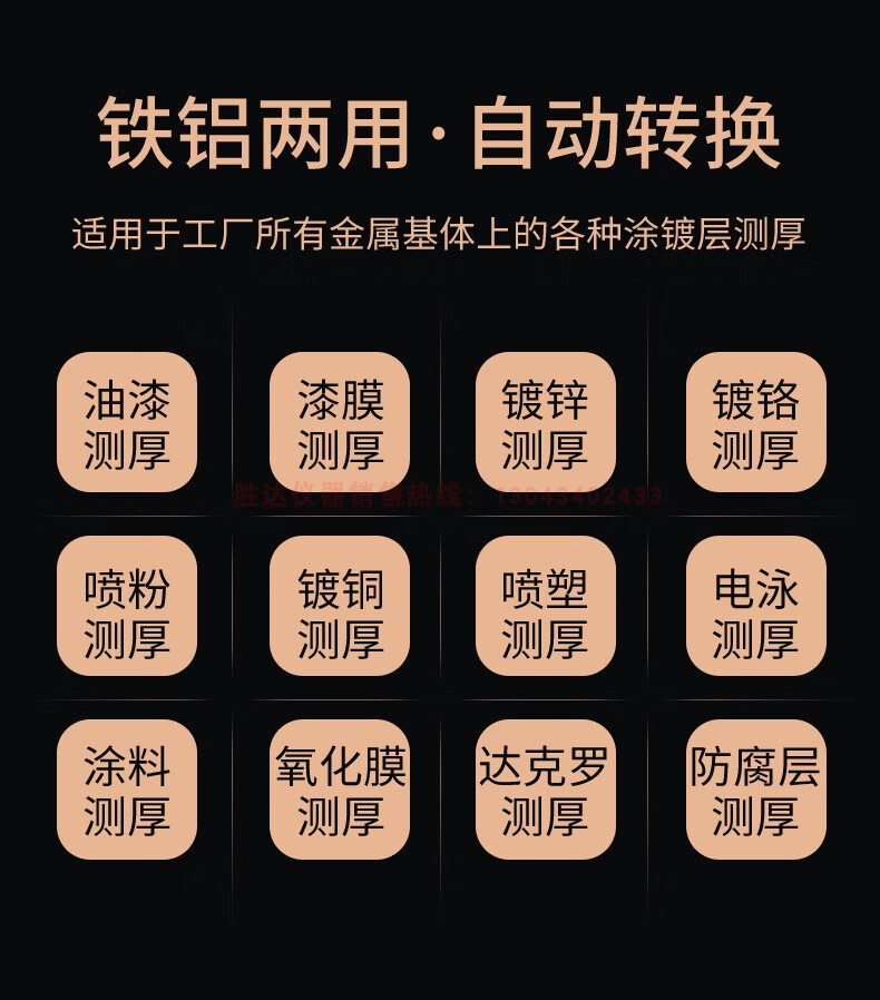 Quwudou customized coating thickness gauge high-precision galvanized chromium layer spray electrophoresis oxidation film paint surface detection industrial film measurement iron and aluminum dual-purpose standard version 0-1500um iron and aluminum