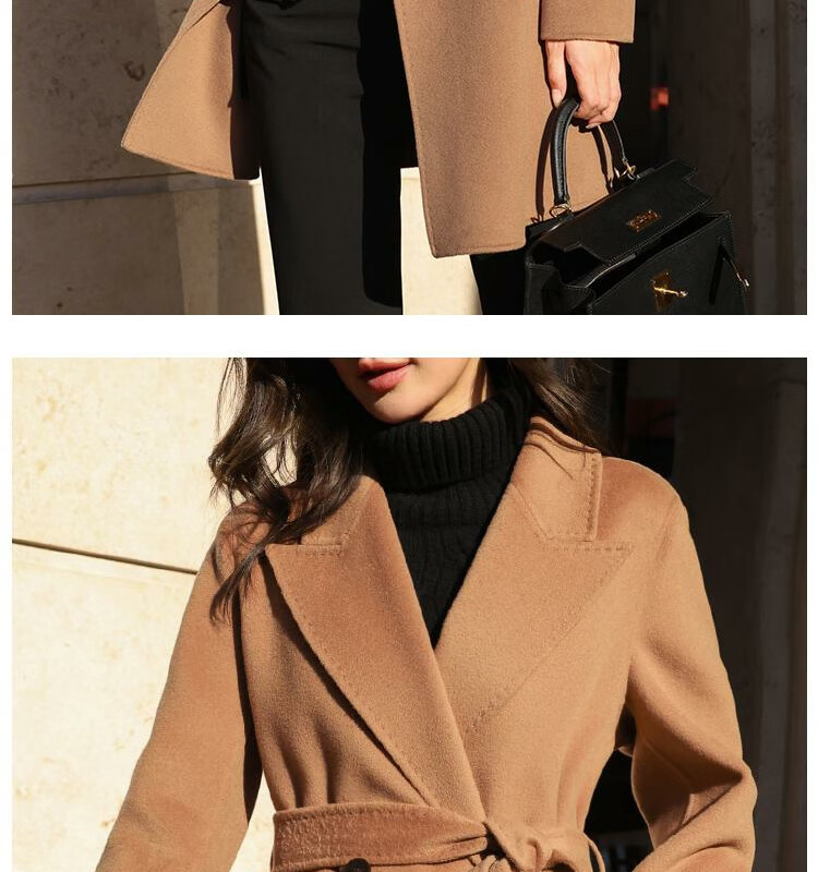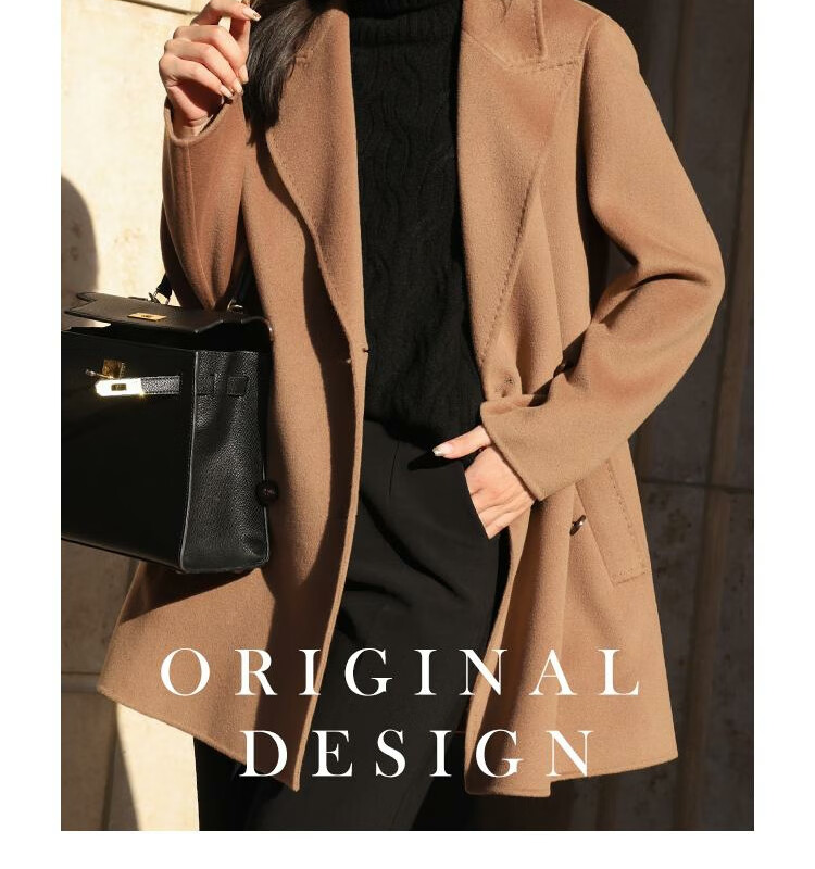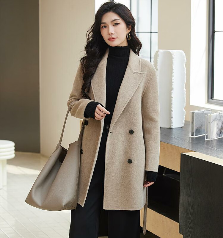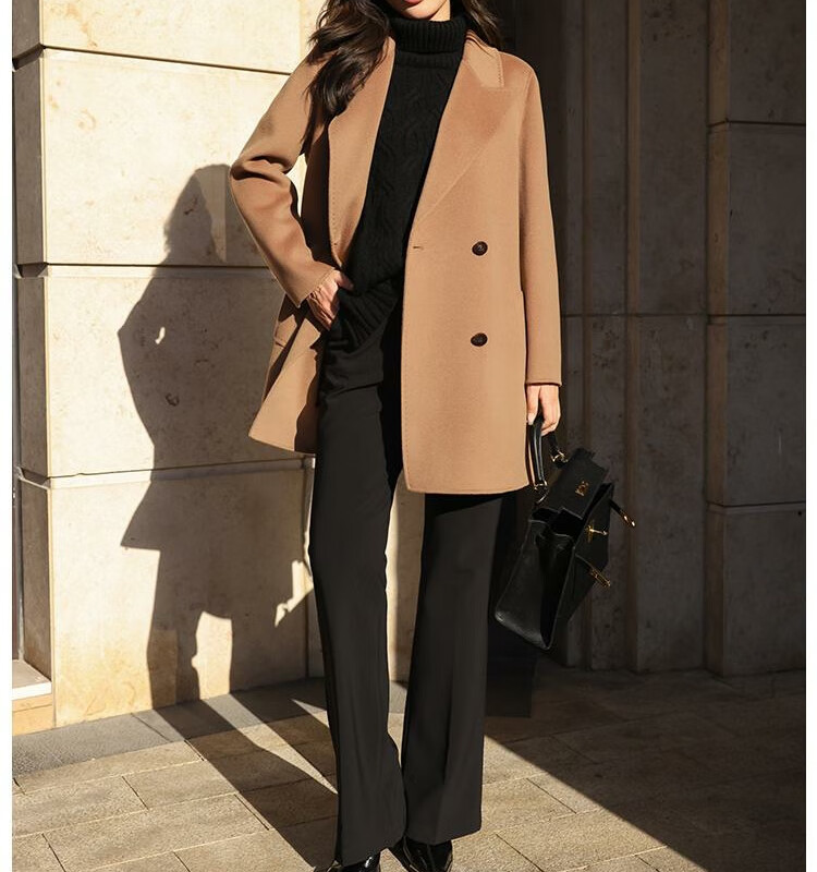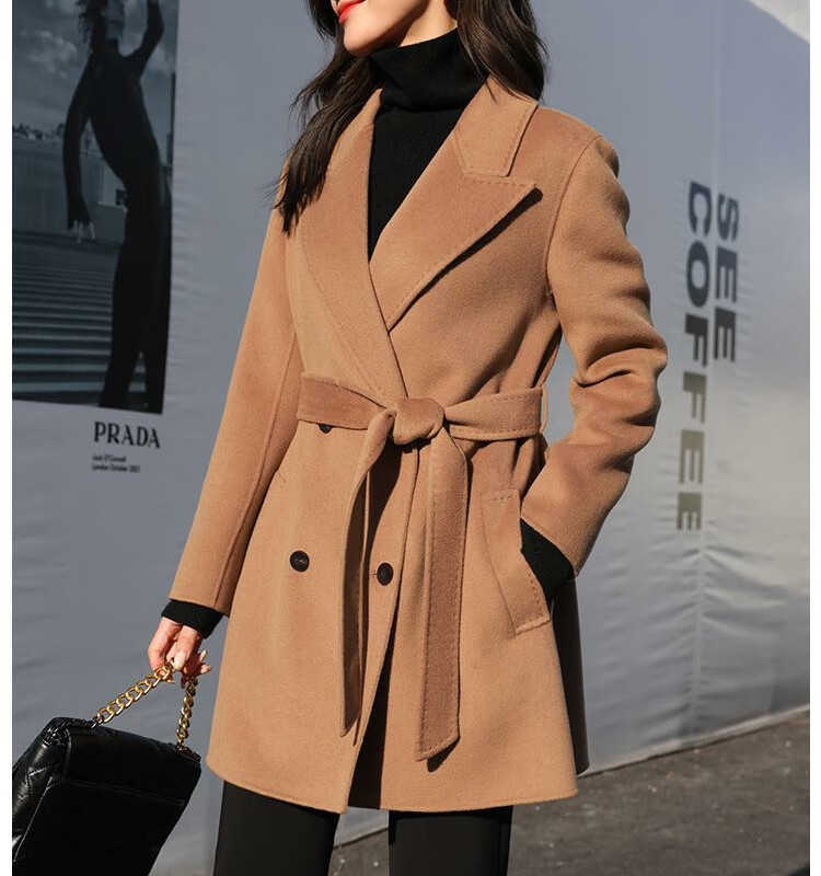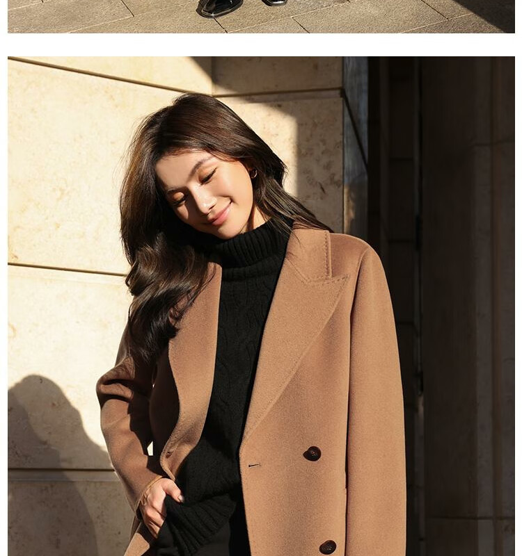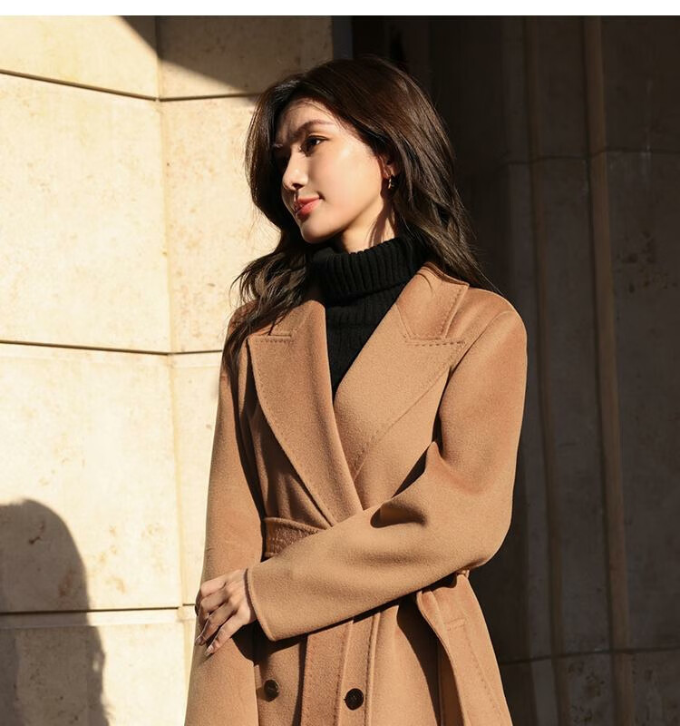 Yuerong 2025 new style gun lapel double-breasted double-sided cashmere coat for women, fashionable and versatile slim wool double-sided woolen coat, camel M (105-115 catties)