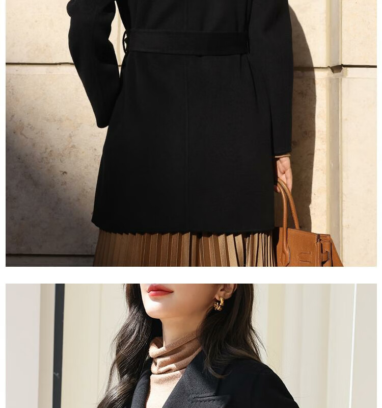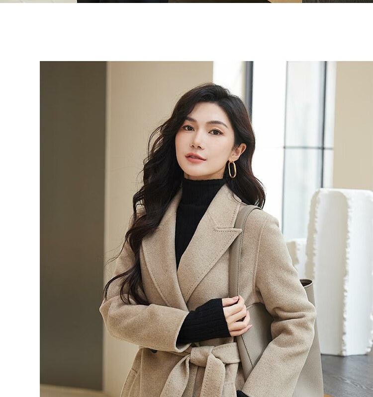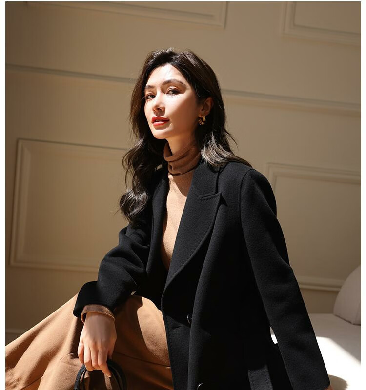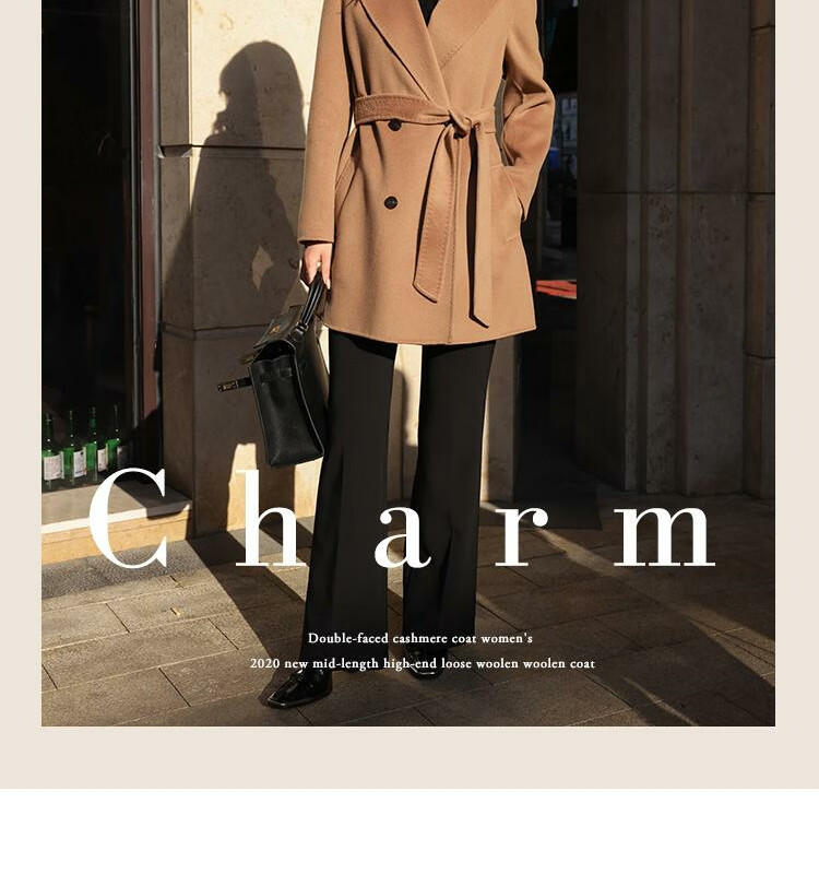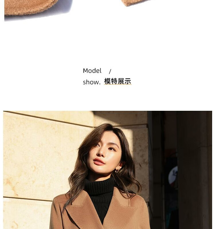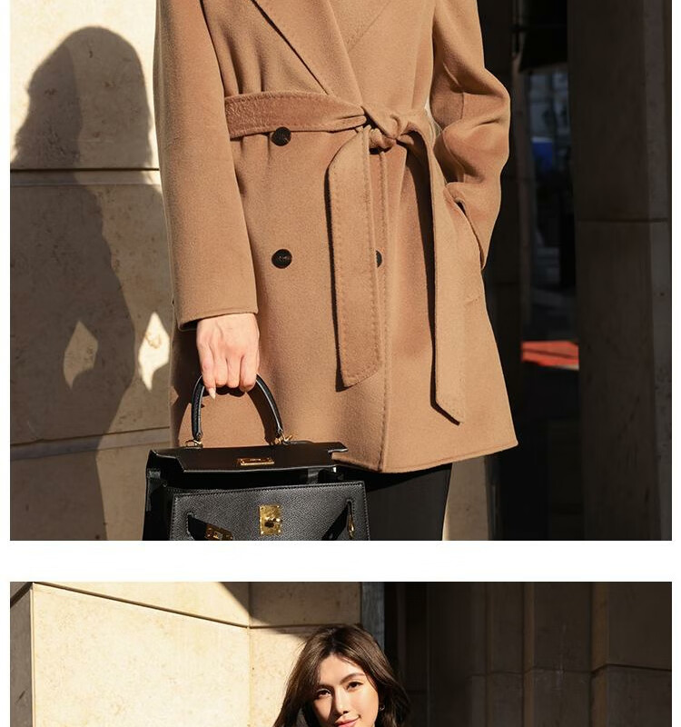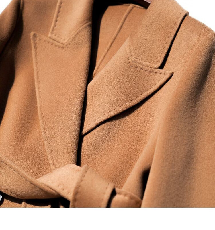 Yuerong 2025 new style gun lapel double-breasted double-sided cashmere coat for women, fashionable and versatile slim wool double-sided woolen coat, camel M (105-115 catties)