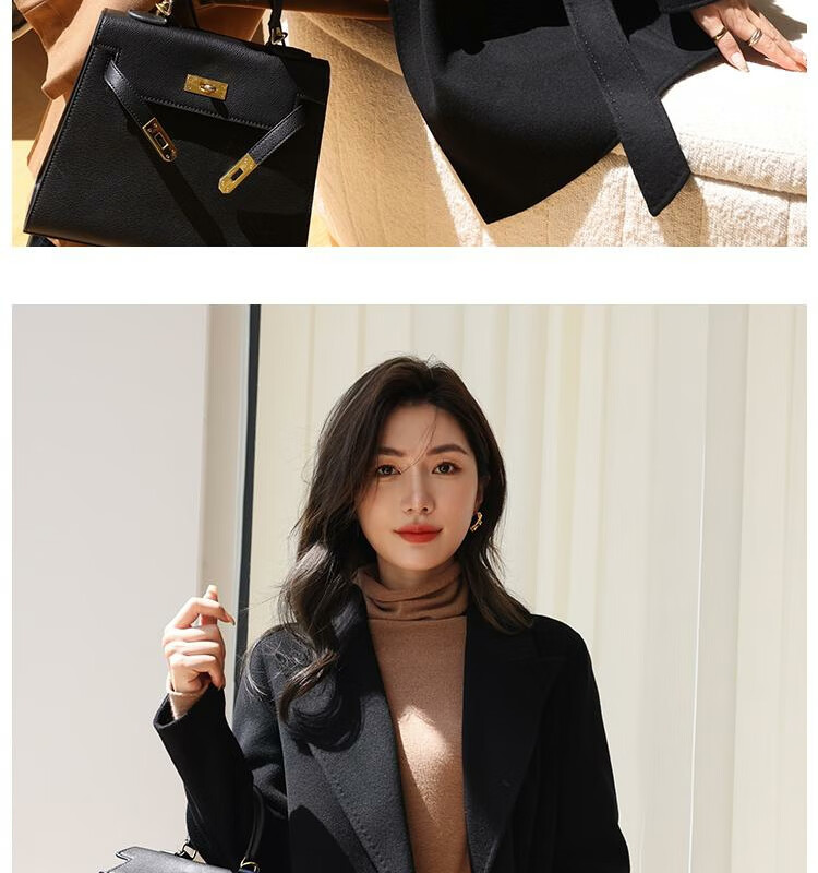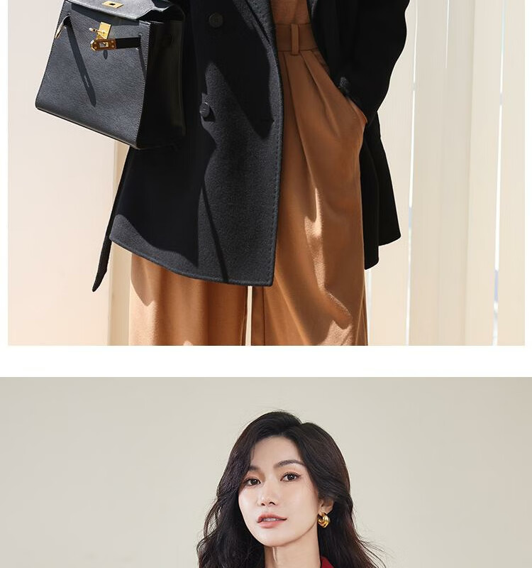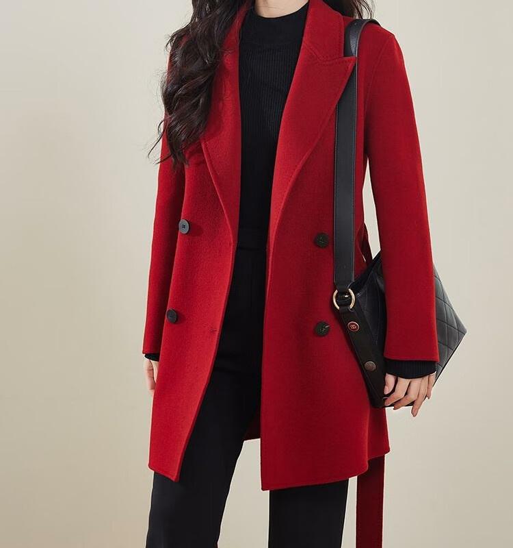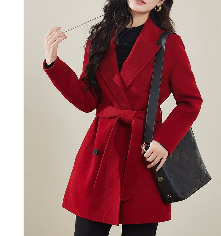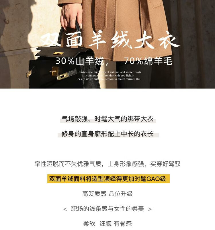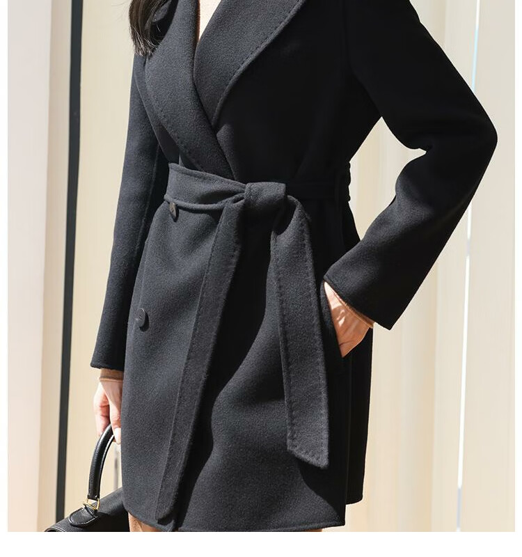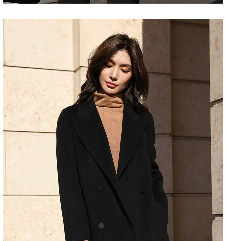 Yuerong 2025 new style gun lapel double-breasted double-sided cashmere coat for women, fashionable and versatile slim wool double-sided woolen coat, camel M (105-115 catties)
