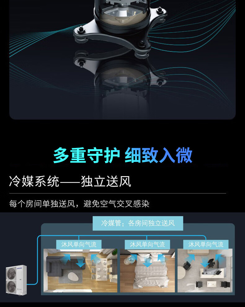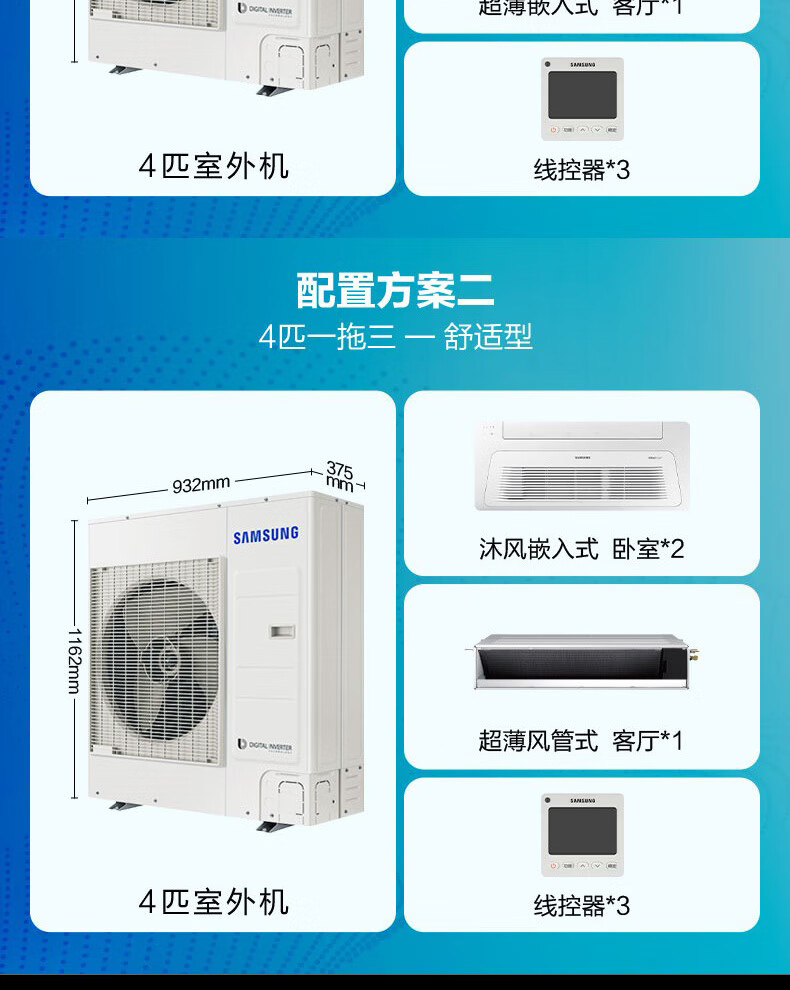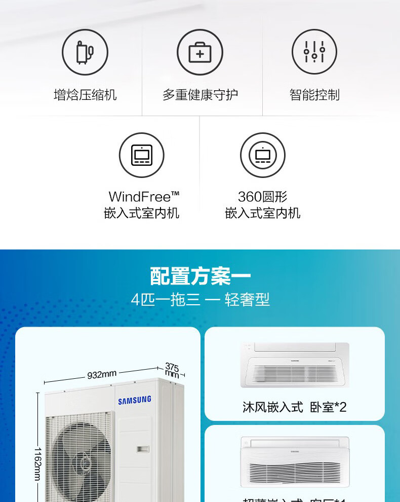 Samsung central air conditioner household one-to-three, one-to-four, 3 HP, 4 HP multi-split, ultra-thin duct machine, home decoration custom deposit (please note after customer model is confirmed), 4 HP, secondary energy efficiency, model adjusted as needed