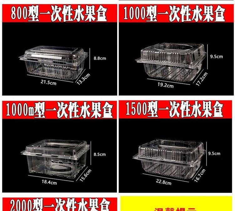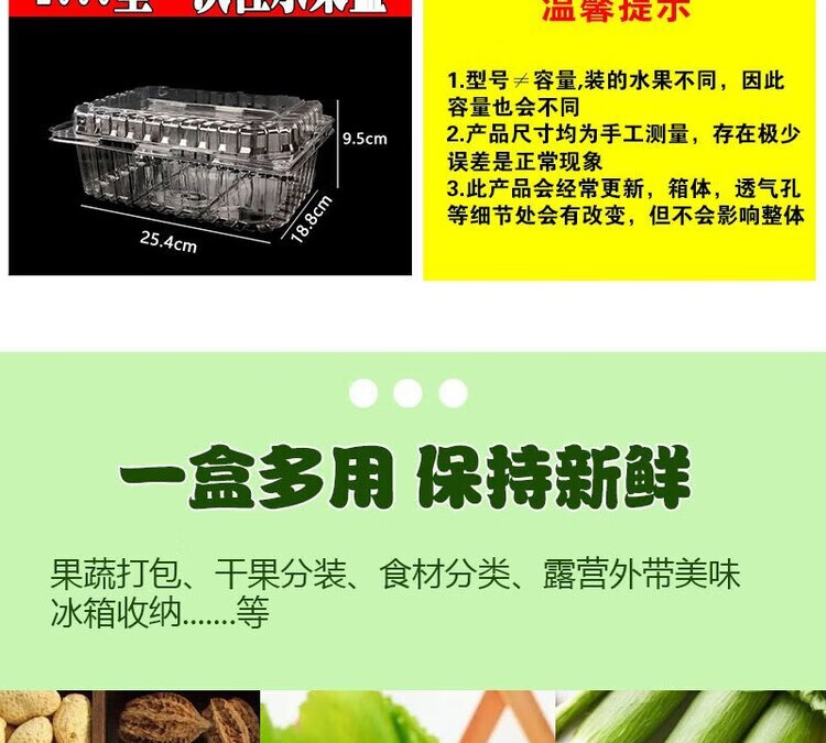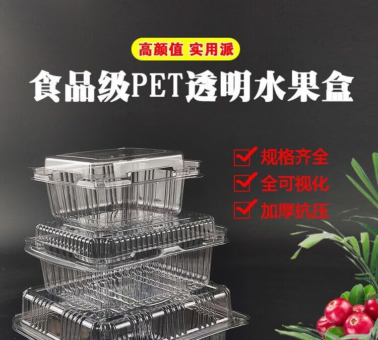Disposable fruit box rectangular packaging transparent fruit and vegetable preservation plastic strawberry packaging with lid two kilogram box 1000 boxes size see picture 100 sets box packaging