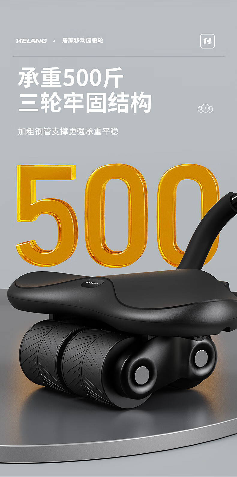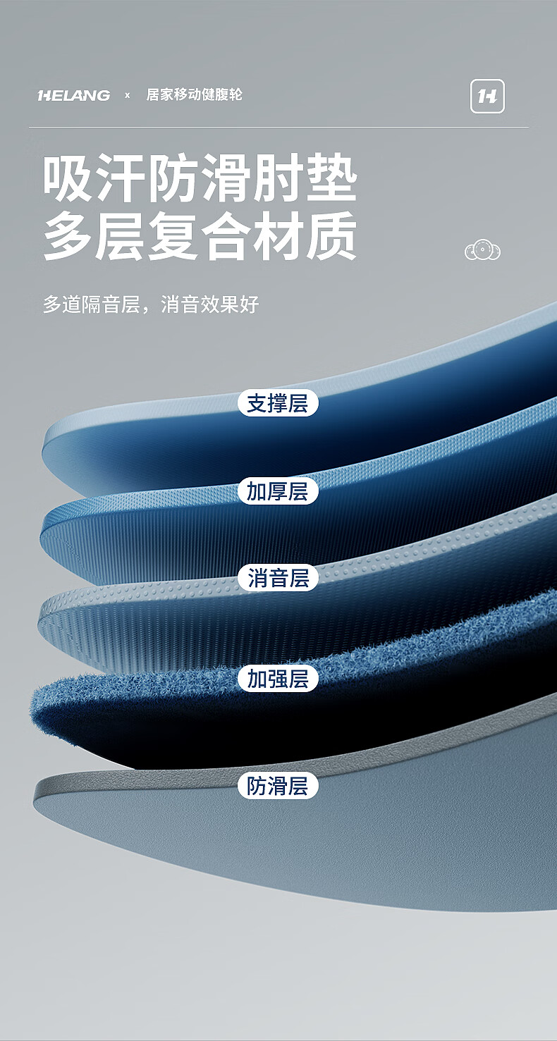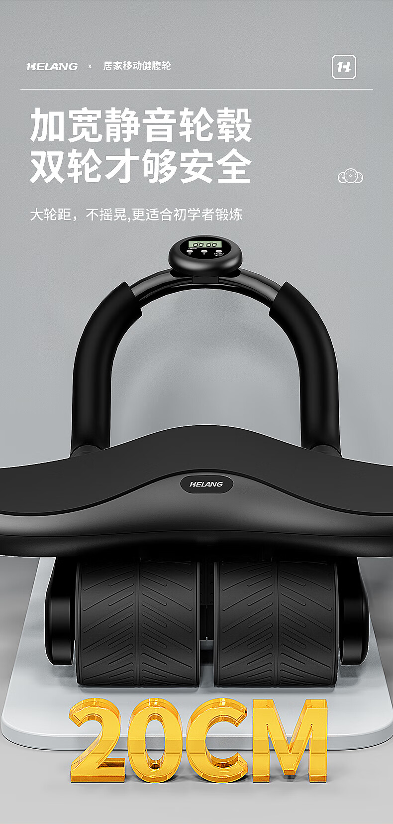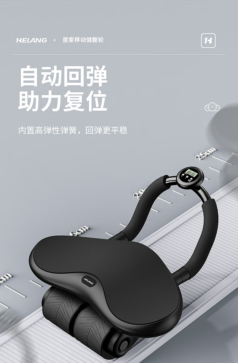 Helang New Product New Four-Wheel Abdominal Wheel Automatic Rebound Abdominal Muscle Training Equipment Abdominal Rolling Belly Slimming Magic Tool Three-Wheel Integrated-Blue Intelligent Timing_Integrated Design_Automatic Rebound