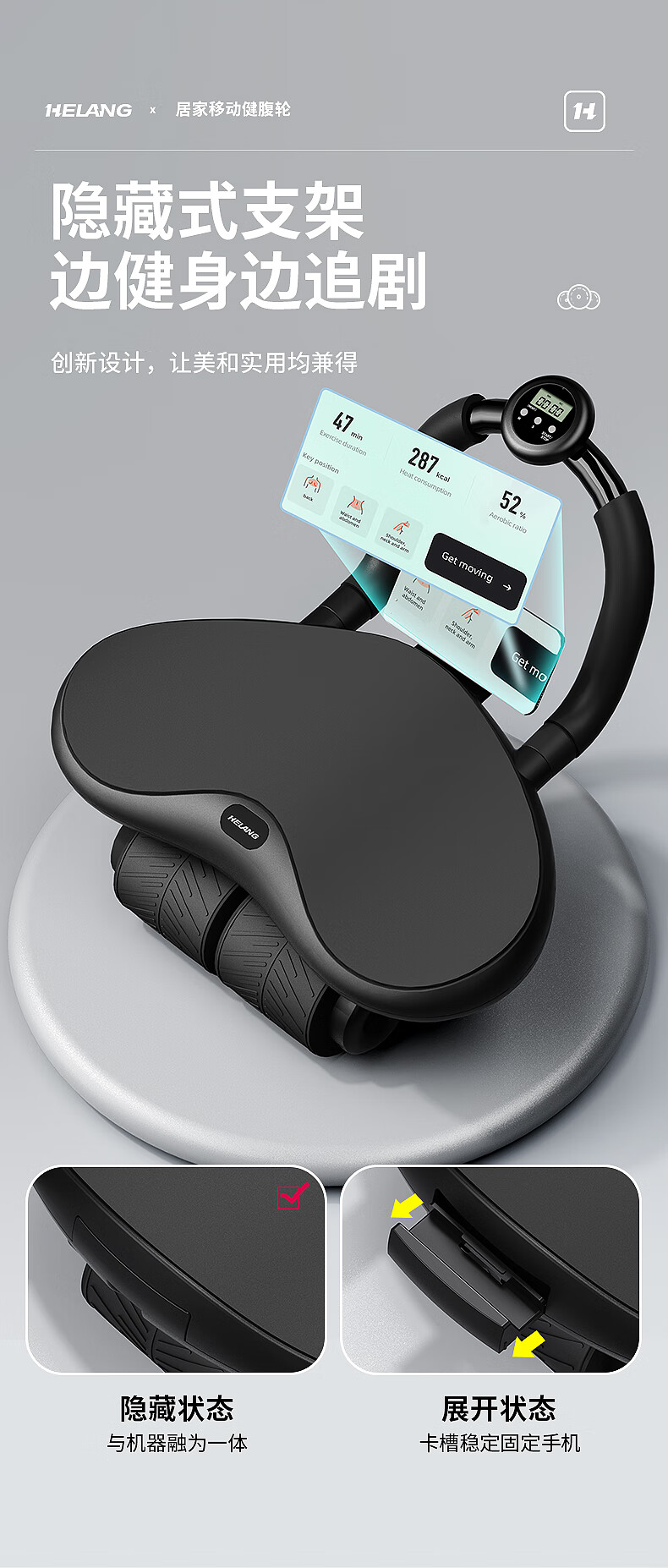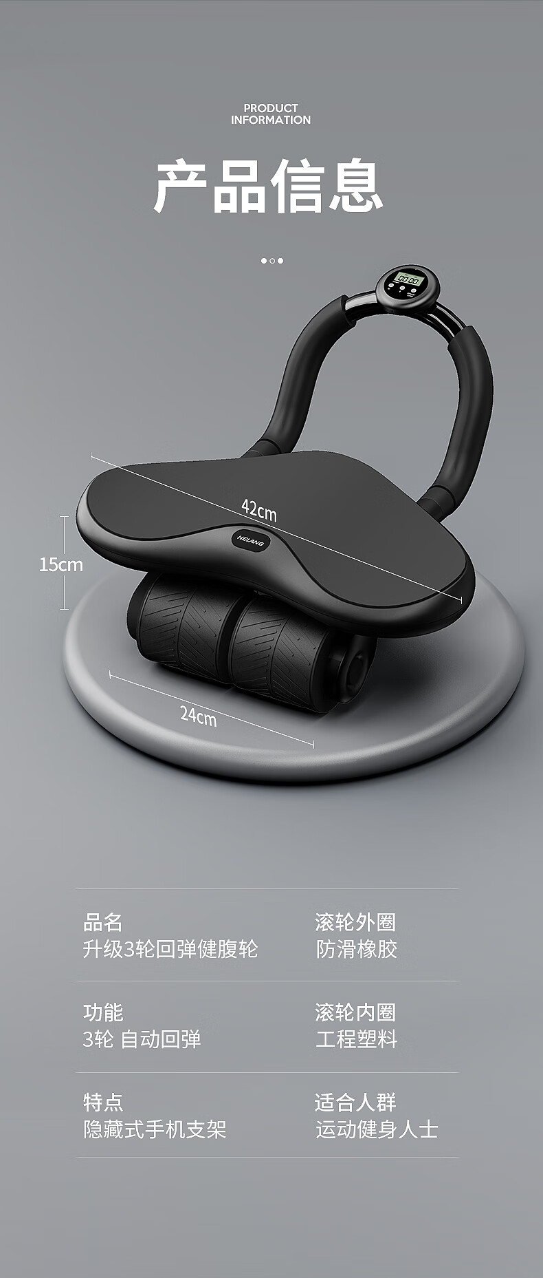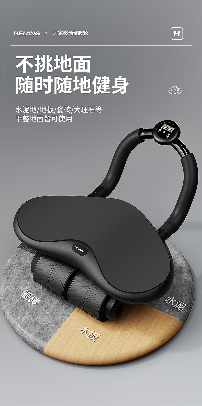 Helang New Product New Four-Wheel Abdominal Wheel Automatic Rebound Abdominal Muscle Training Equipment Abdominal Rolling Belly Slimming Magic Tool Three-Wheel Integrated-Blue Intelligent Timing_Integrated Design_Automatic Rebound