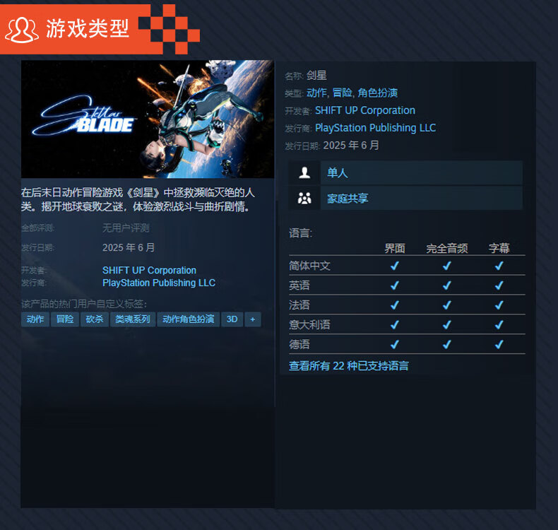 STEAM现货Steam剑星 PC正版游戏 Stellar Blade 国区 动作冒险单人角色扮演 激活码CDK 完整版 简体中文