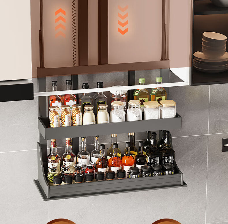 Funwudou Customized Pull Basket Kitchen Cabinet Electric Vertical Lift Wall Cabinet Pull Basket Intelligent Voice Touch Switch Pull-Down Seasoning 500 Cabinet Intelligent Electric Lift Pull Basket (Voice + Touch Double Layer Electric Lift