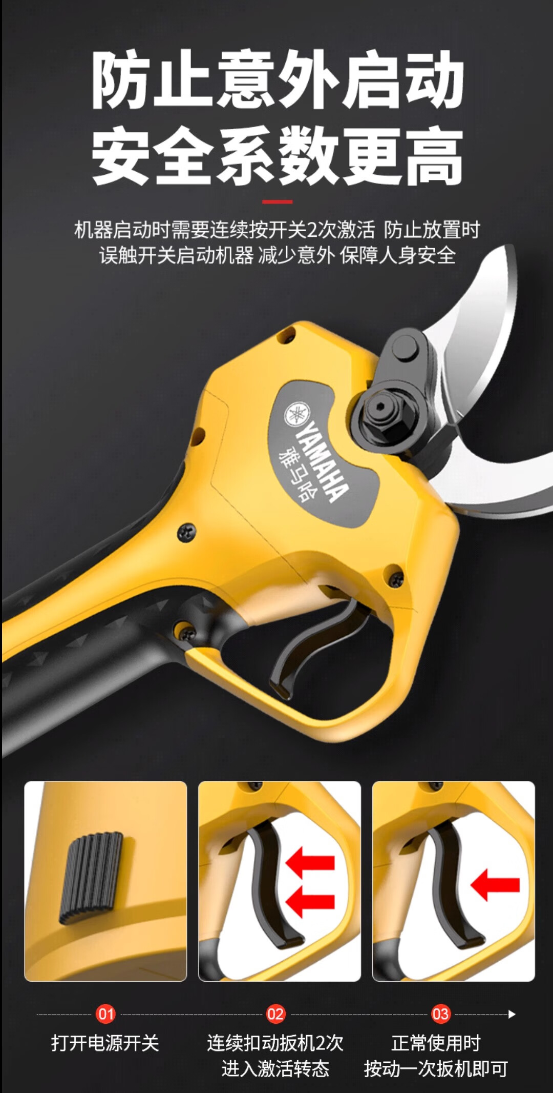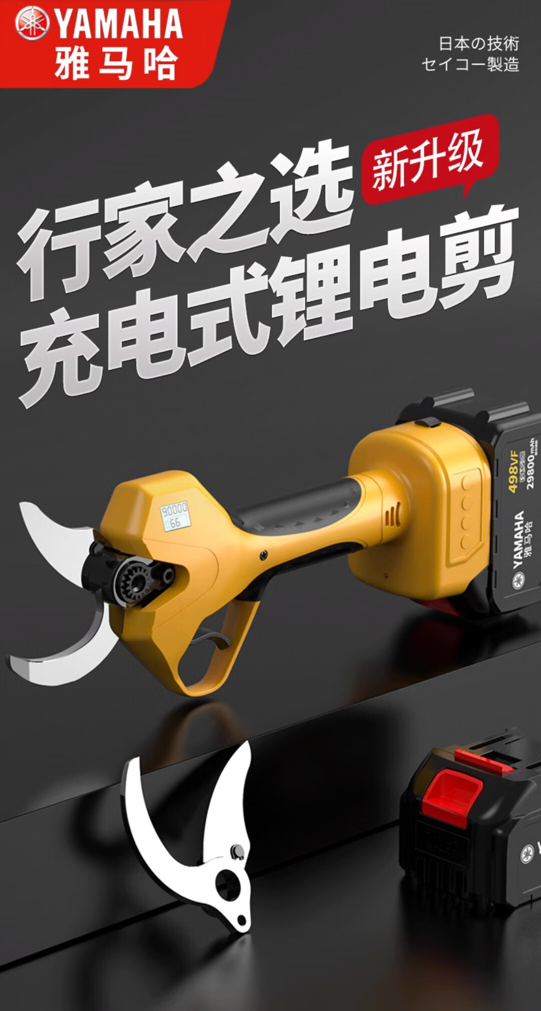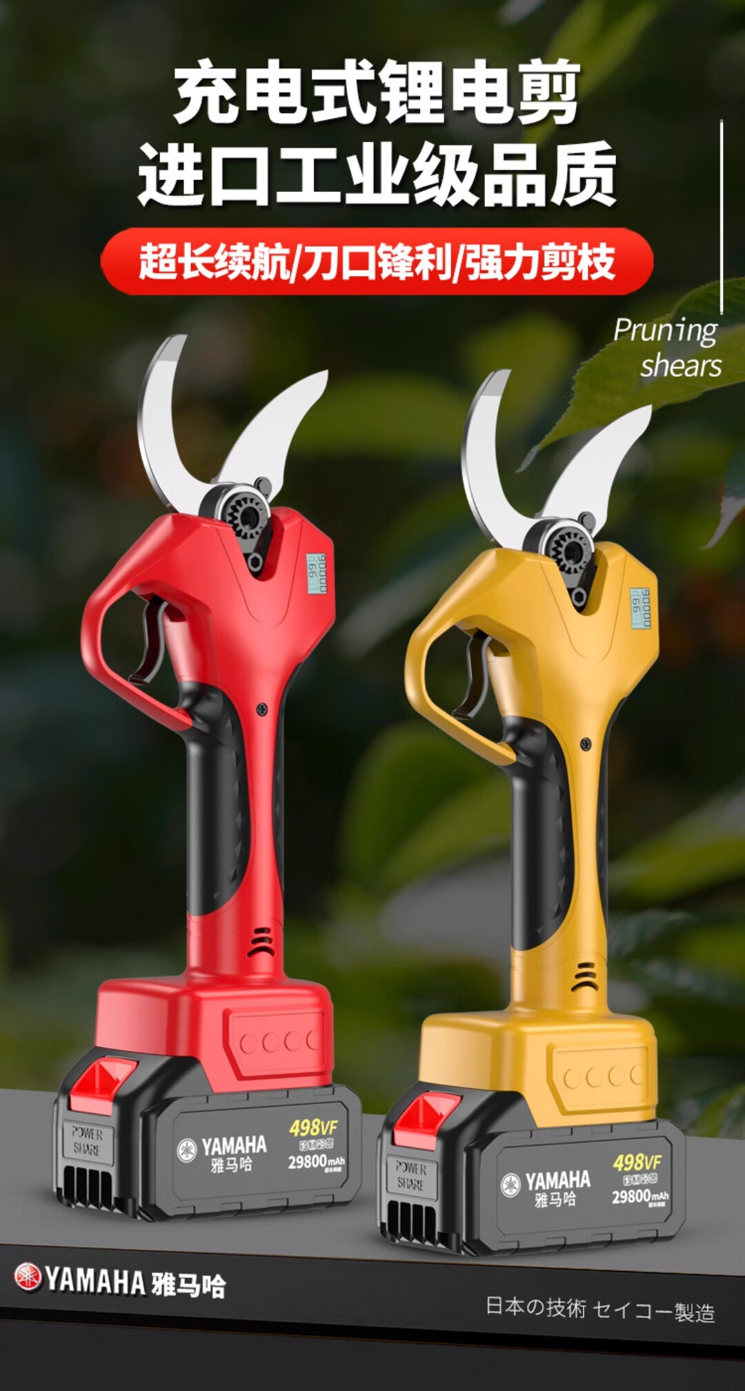 Yamaha Yamaha electric scissors, fruit tree pruning shears, rechargeable garden lithium-ion scissors, powerful thick branch pruning branch scissors, new lightweight 6.8, three batteries and one charge