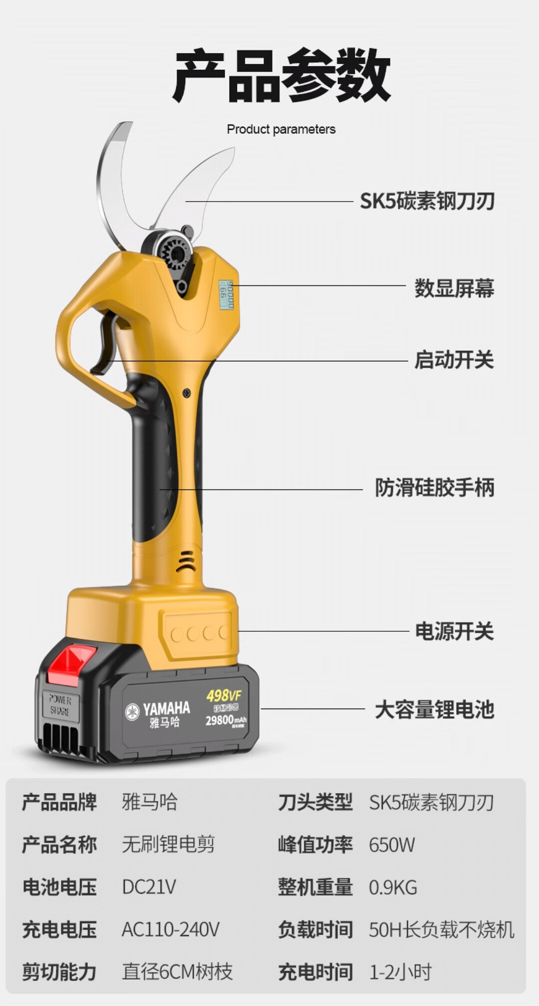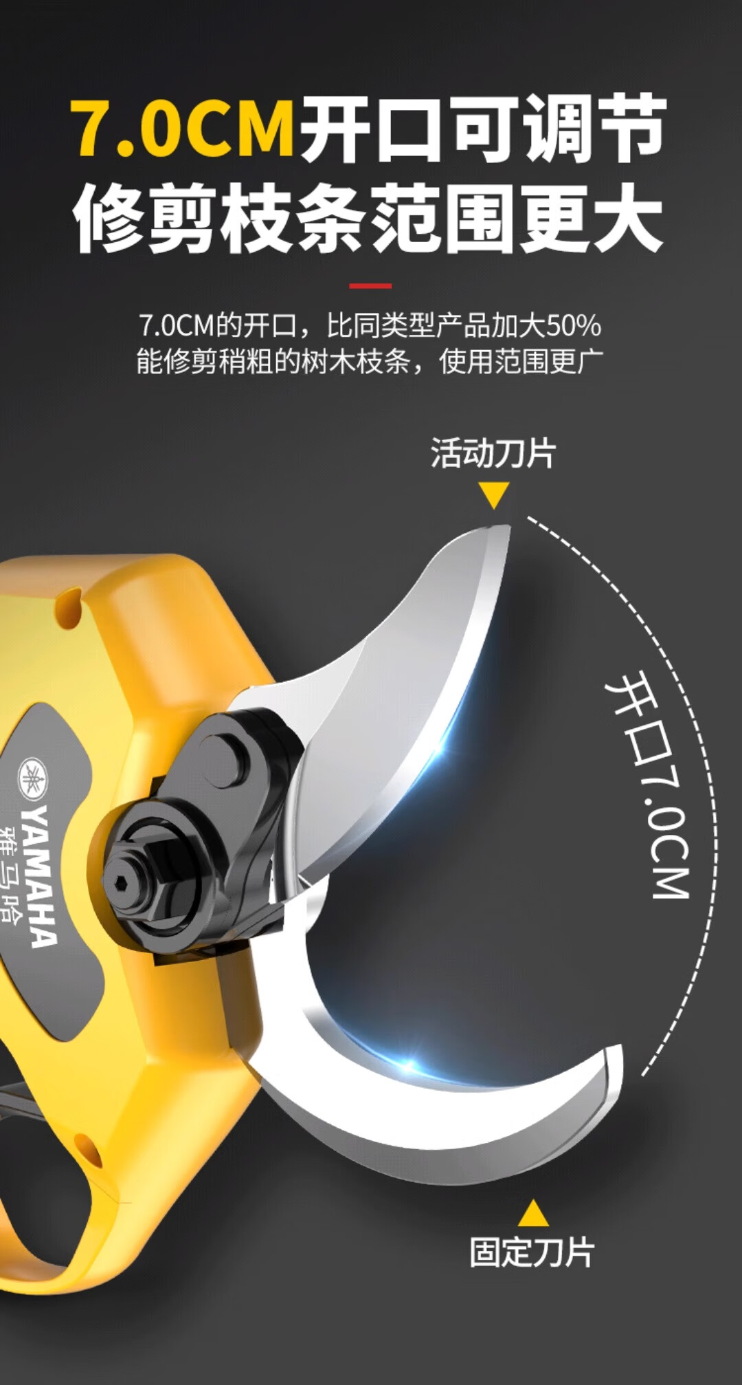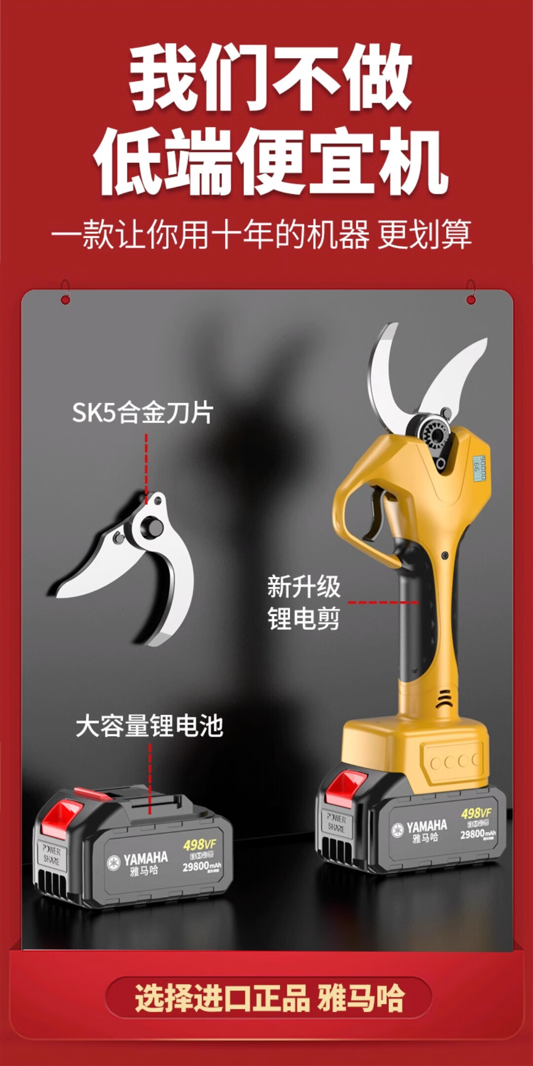 Yamaha Yamaha electric scissors, fruit tree pruning shears, rechargeable garden lithium-ion scissors, powerful thick branch pruning branch scissors, new lightweight 6.8, three batteries and one charge