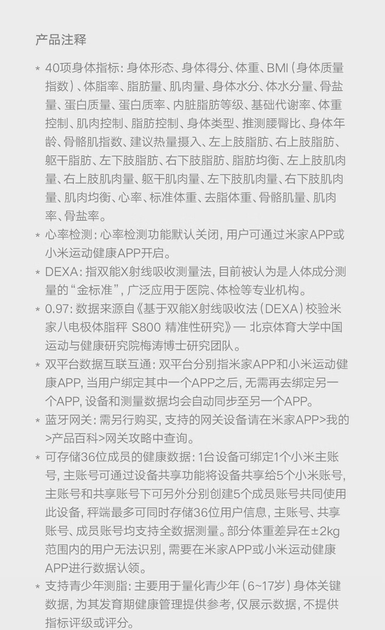 Xiaomi Mijia (MIJIA) Smart Eight-Electrode Body Fat Scale S800 Weight Management Home Weight Scale Electronic Scale Dual-frequency Accurate Detection Weight Loss Scale Eight-Electrode Body Fat Scale Official Standard