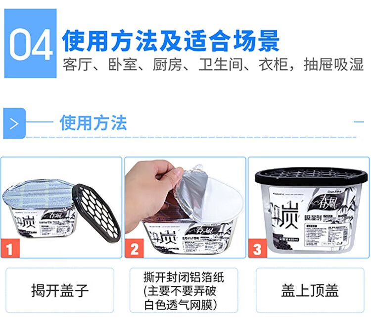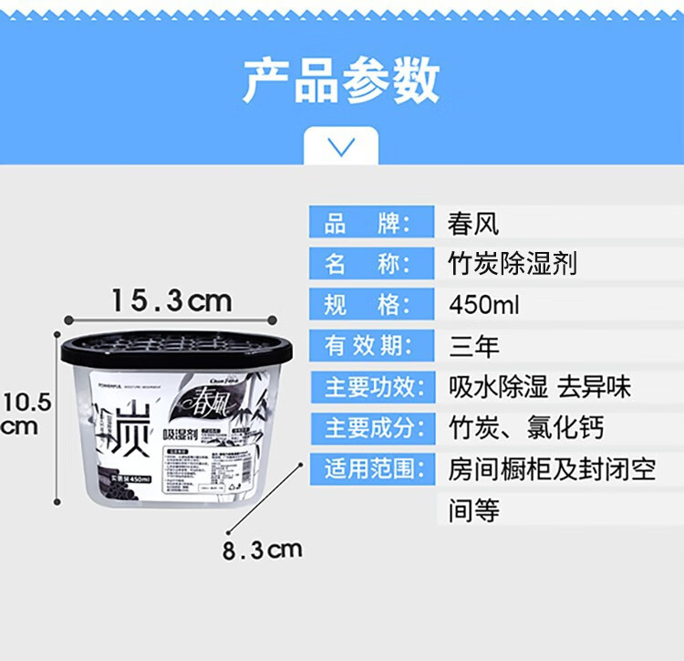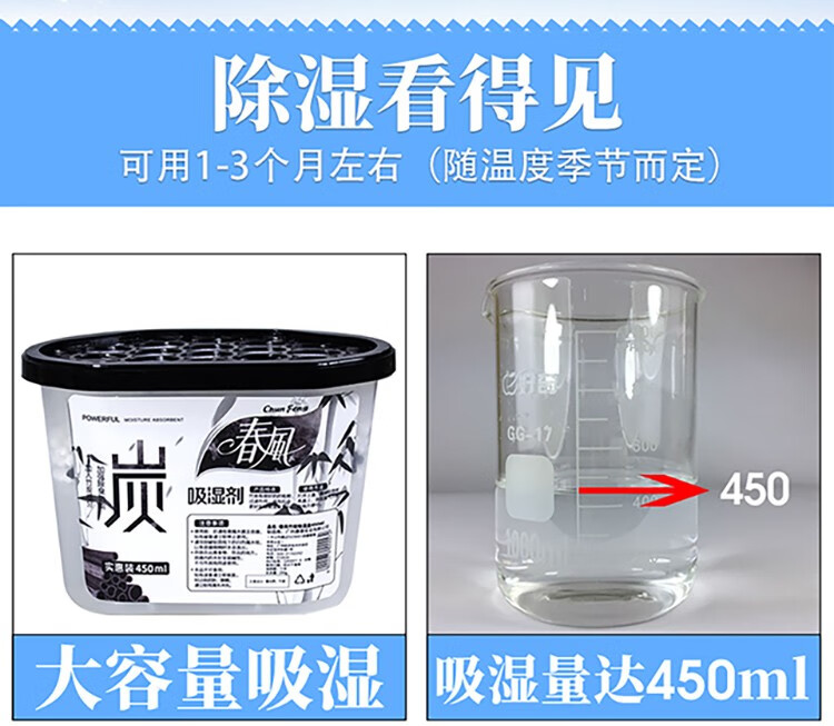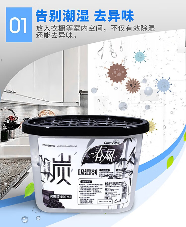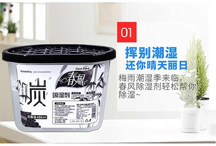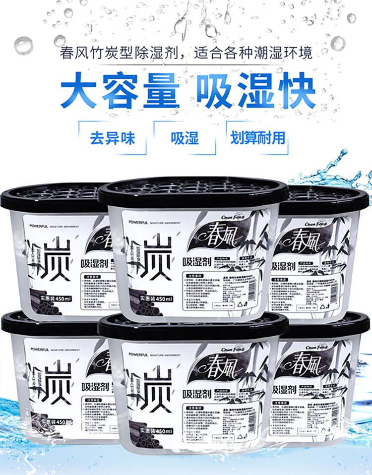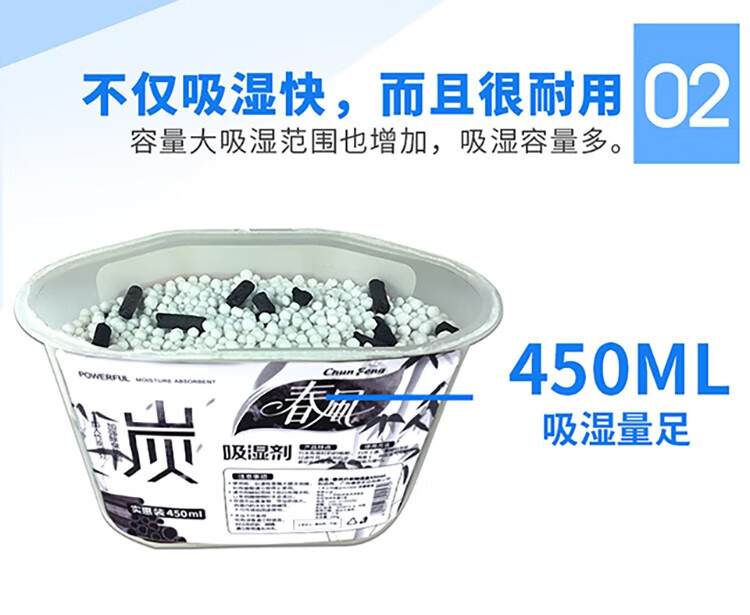 Spring Breeze Activated Carbon Desiccant Dehumidification Bag Wardrobe Moisture-proof Agent Household Indoor Moisture Absorbent Mildew-proof Artifact Bamboo Charcoal Dehumidification Box (450ml*9 boxes)