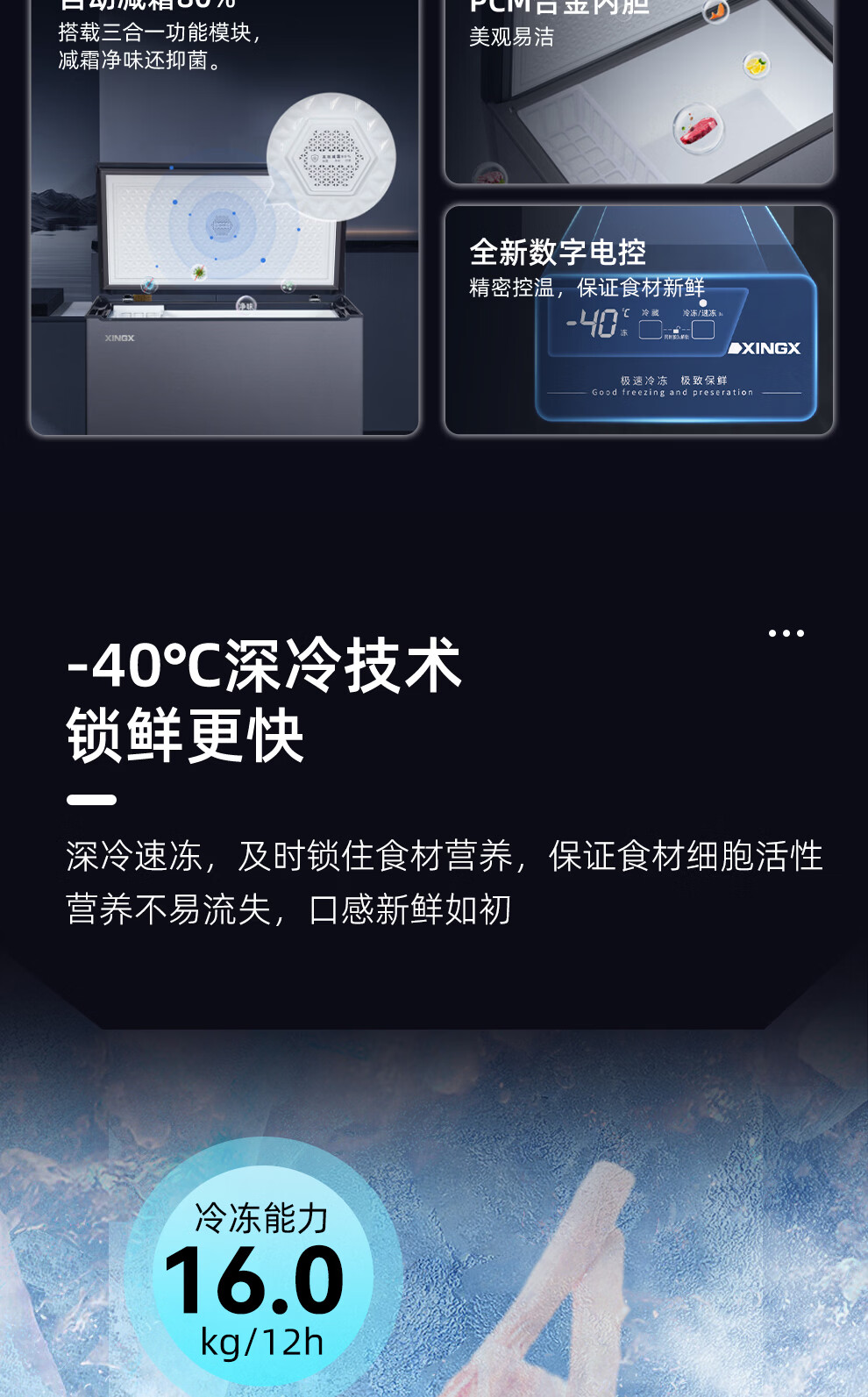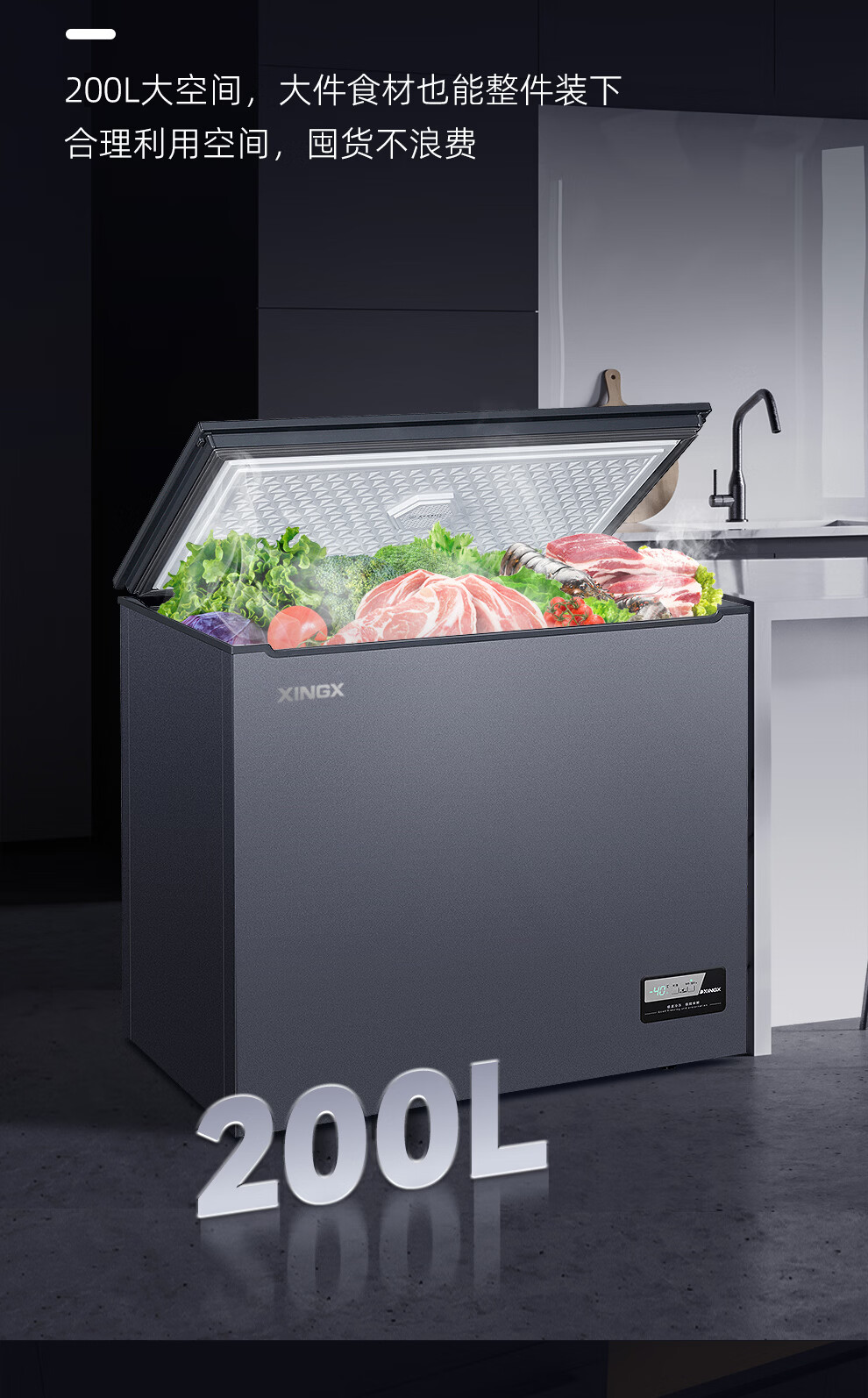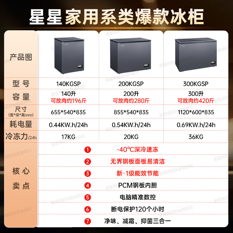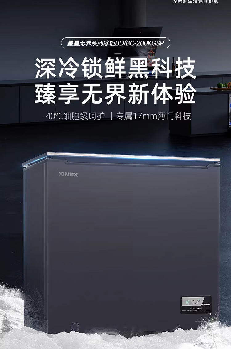 Star (XINGX) Star Freezer household minus 40 C degree commercial refrigeration freezer low temperature small freezer frost reduction 80% cryogenic quick freezing first-level energy efficiency single door freezer official flagship store high-end model PCM liner | slim door body | glass panel 300 liters