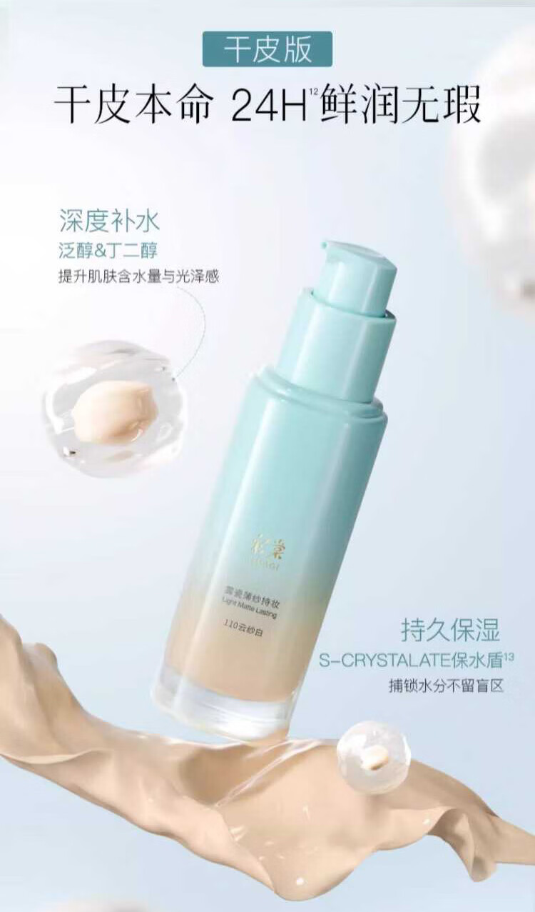 Caitang Liquid Foundation Mist Porcelain Sheer Flawless Lasting Liquid Foundation Small Round Tube Medium Sample Travel Trial Size Combination Skin Flawless Lasting 100 Goose Velvet White-15ml