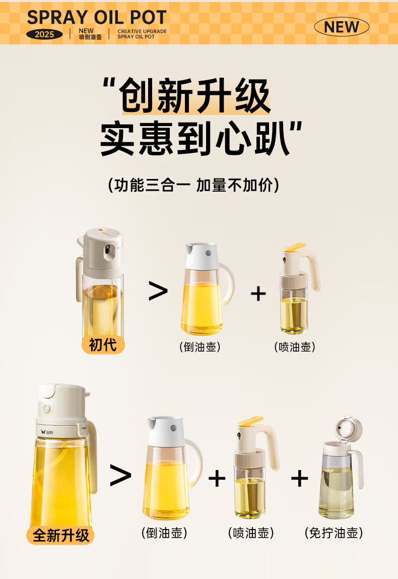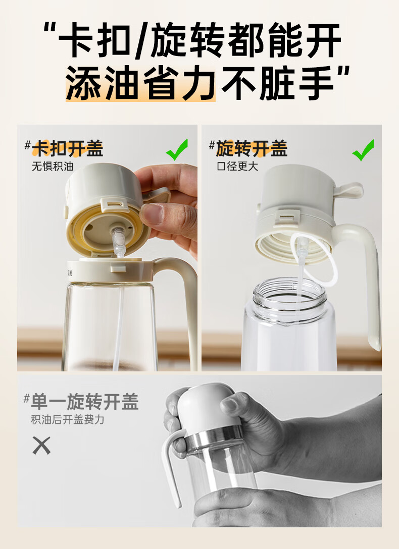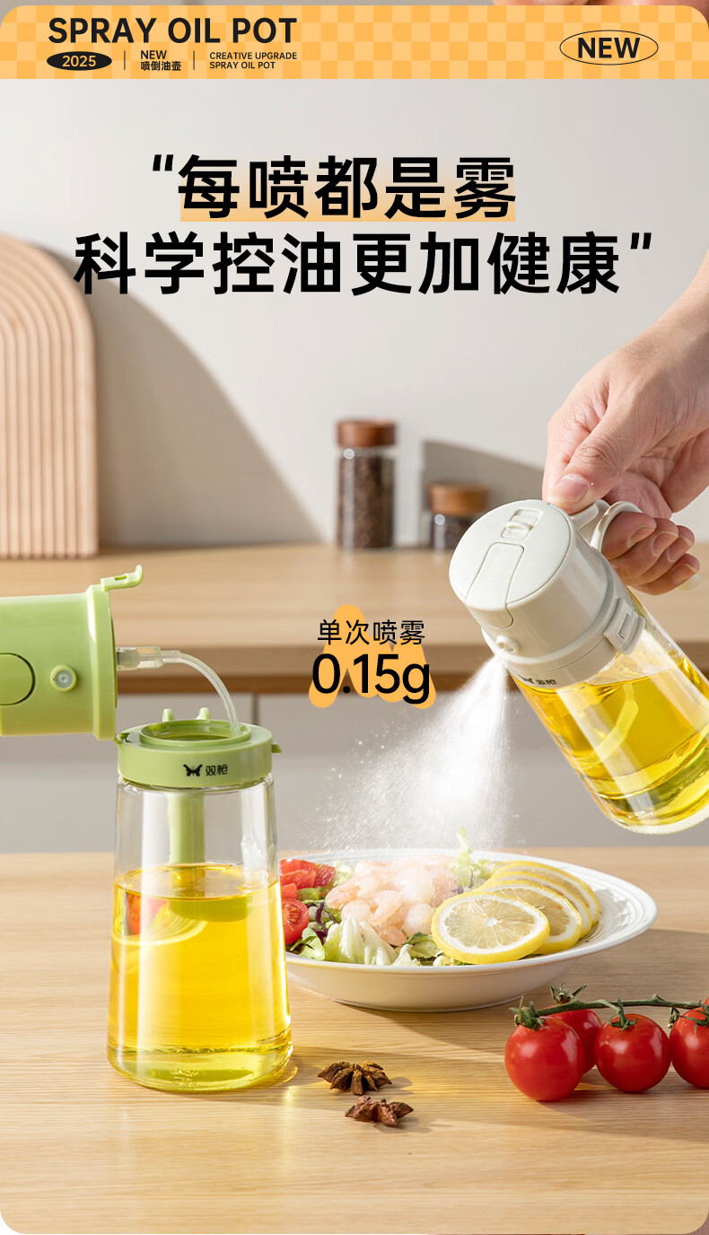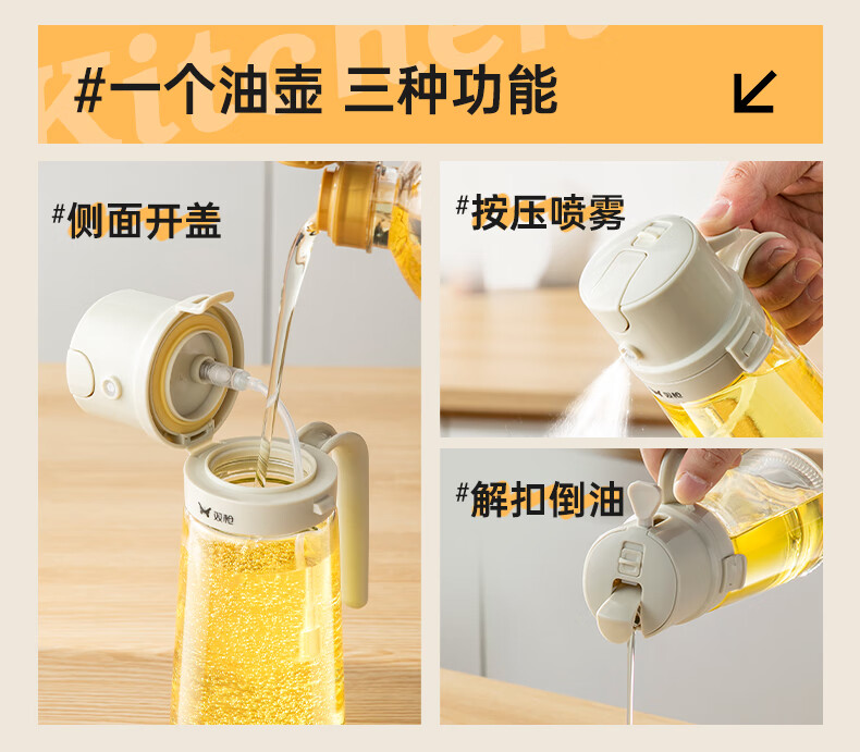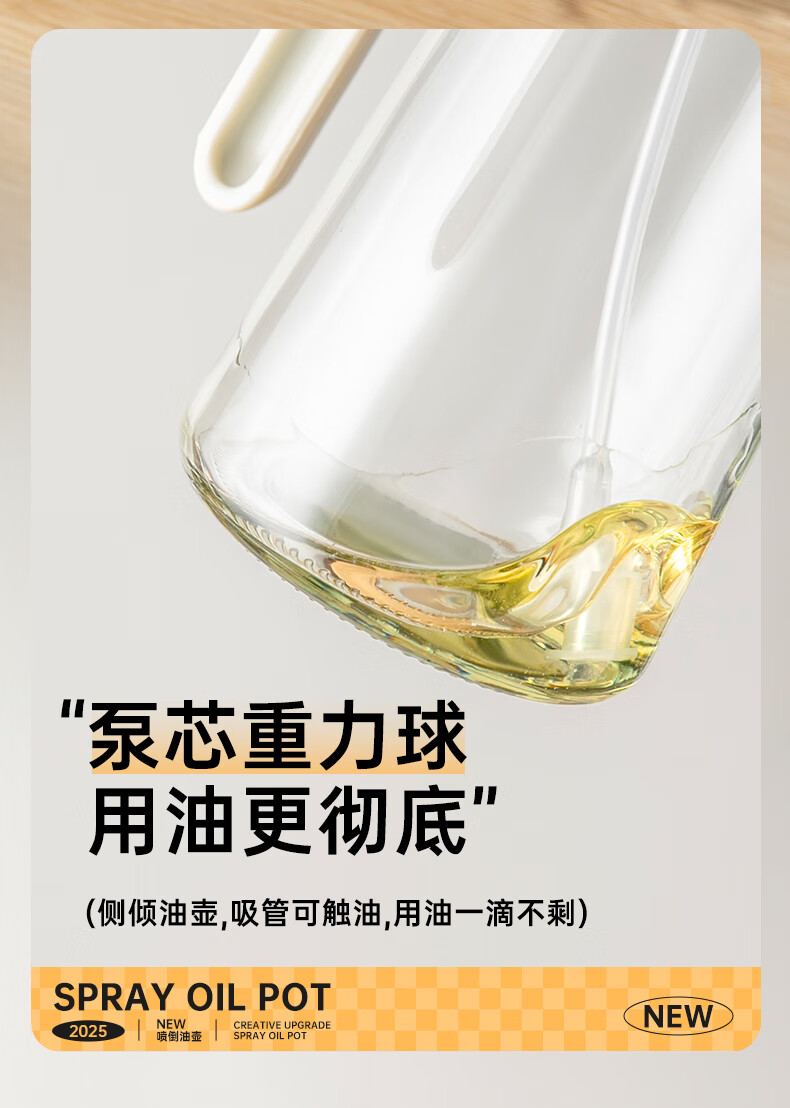 Double gun spray and pour dual-purpose oil bottle household kitchen glass food grade soy sauce vinegar seasoning bottle atomized oil spray bottle oil bottle multifunctional three-in-one ivory white 470ml