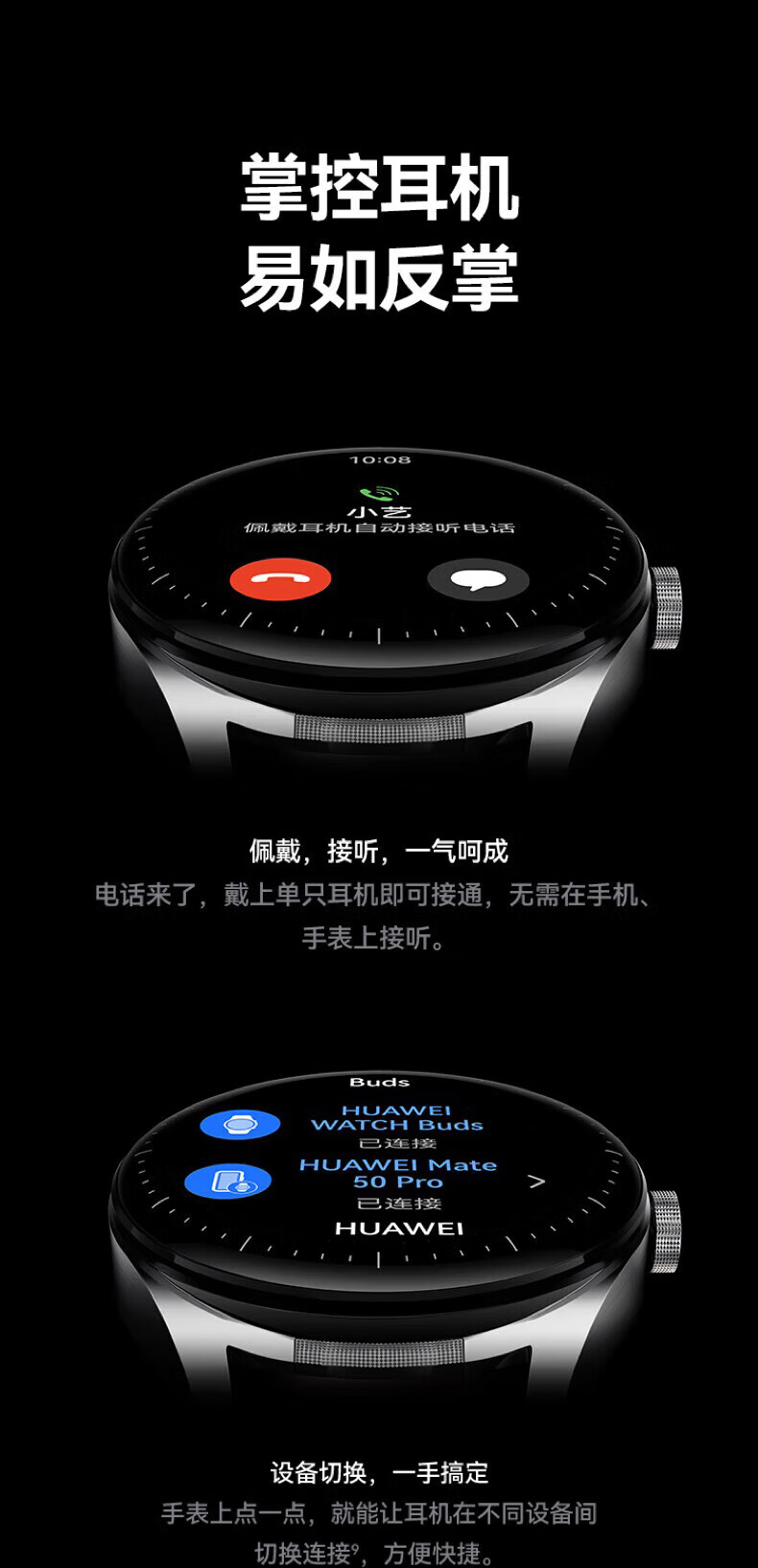 Huawei (HUAWEI) Earphone Watch Huawei Watch WATCH Buds Bluetooth Headset 2-in-1 Smart Watch Noise Reduction Call Exercise Blood Oxygen Monitoring Birthday Valentine's Day Gift High-end Customized WATCH Buds Black + Black Gold Steel Band Business Flagship New Product