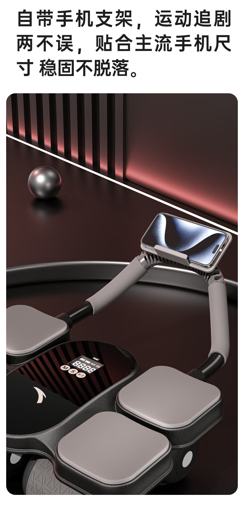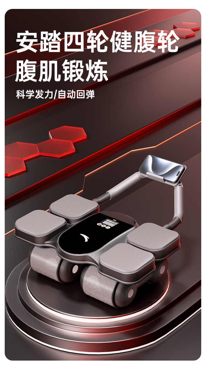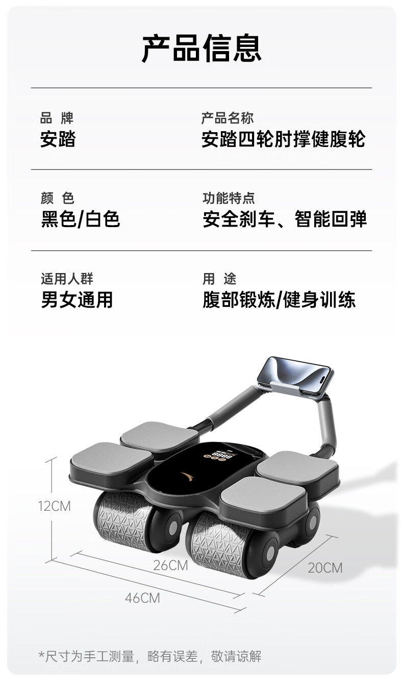 ANTA Abdominal Wheel Automatic Rebound 2025 New Padded Intelligent Four-Wheel Elbow Support Abdominal Wheel Auxiliary Silent Fitness Equipment Combination Black 185*61*8mm Abdominal Wheel Special Pad + Abdominal Wheel