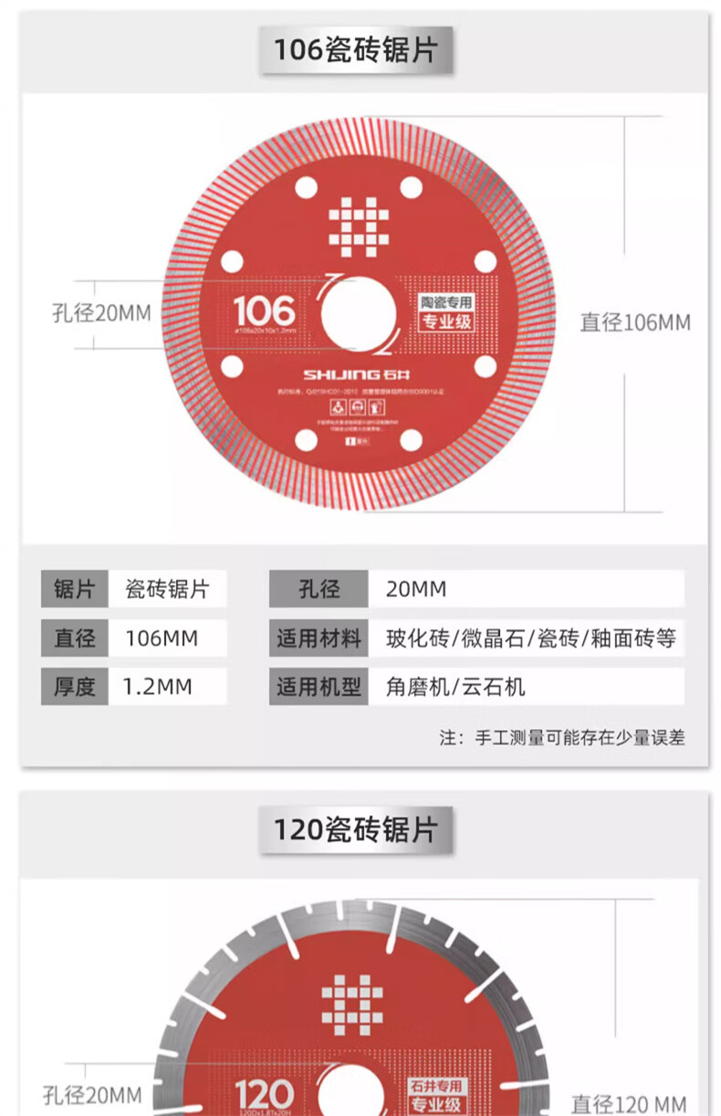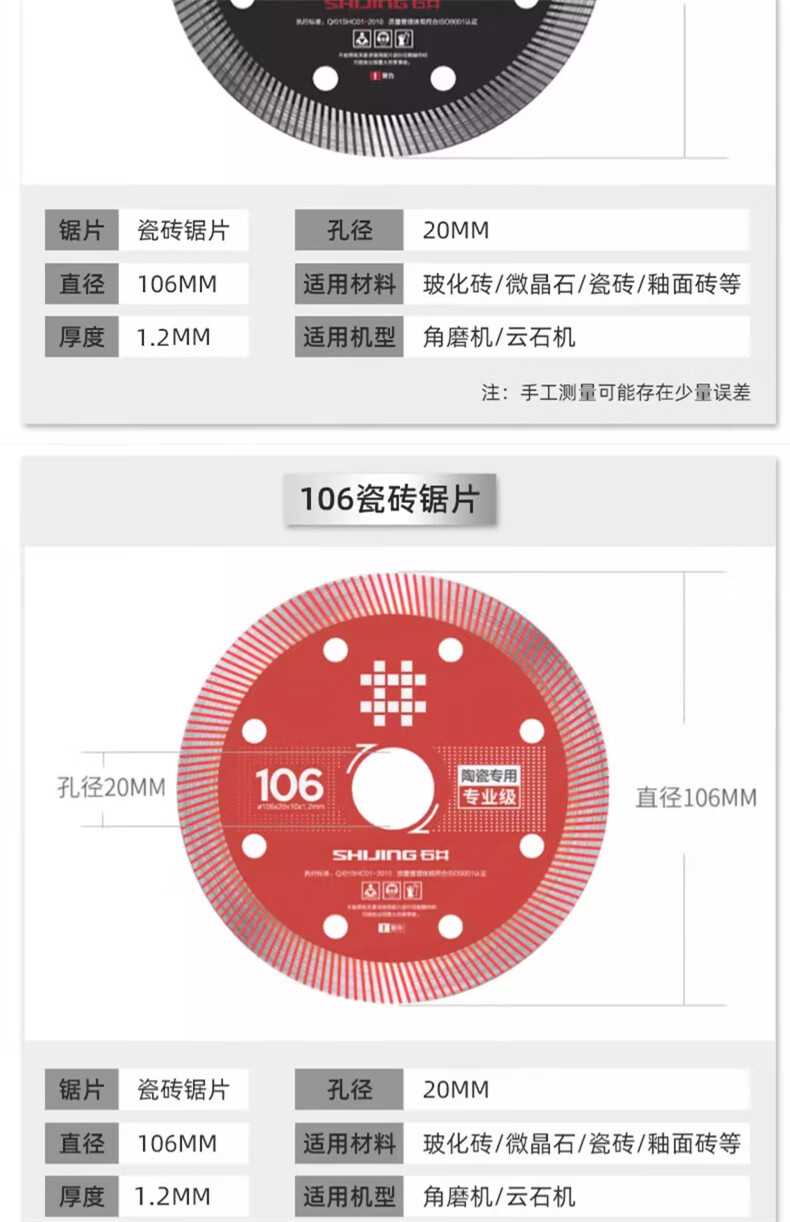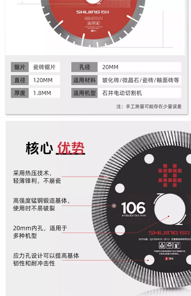 Ishii cutting blade, ceramic tile ultra-thin saw blade, angle grinder wood circular saw blade, chamfering machine cutting machine blade, 106 ceramic special professional grade